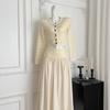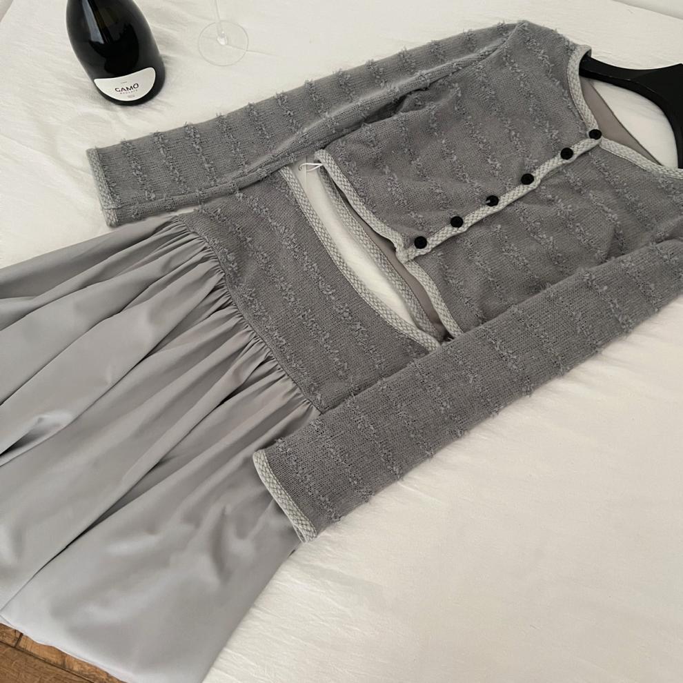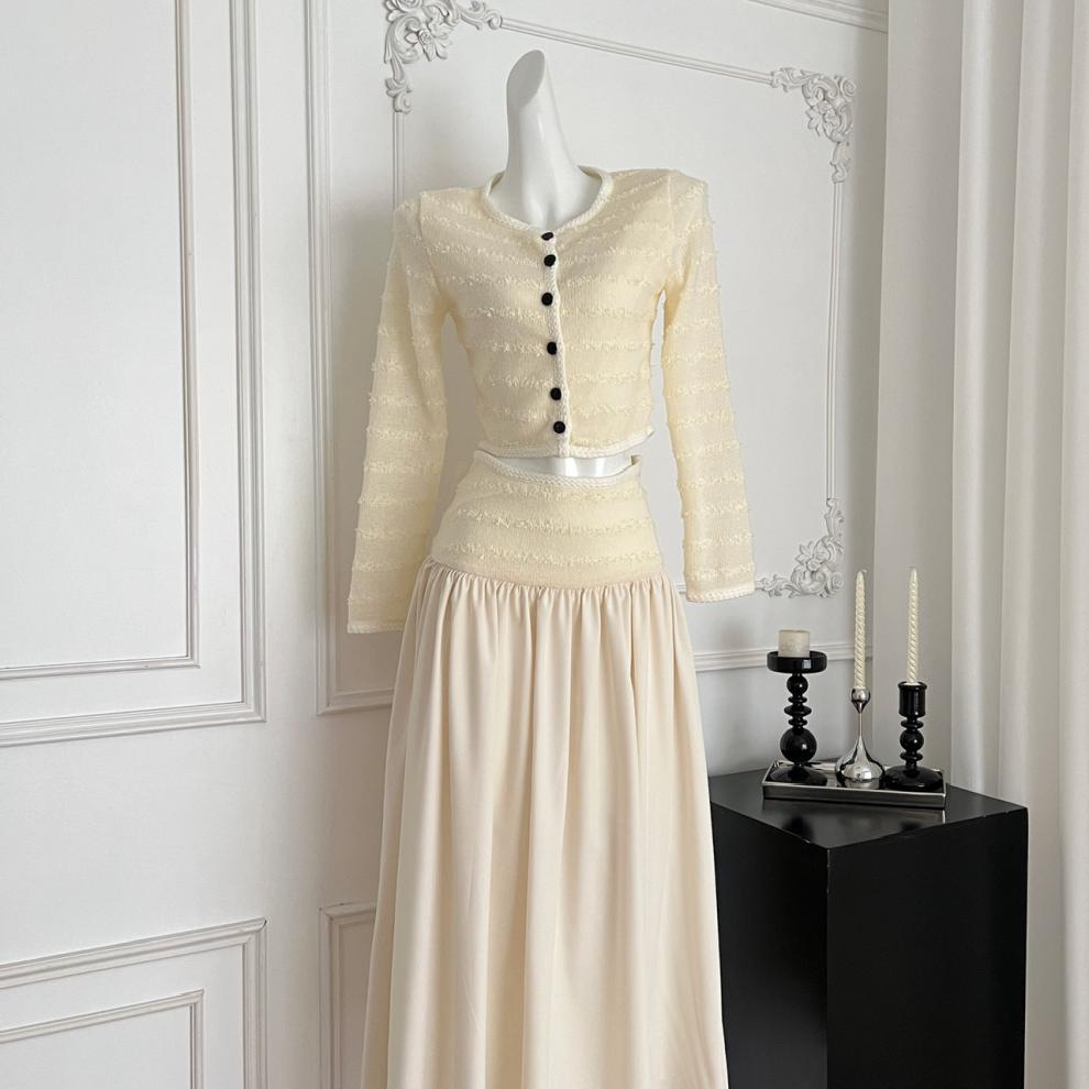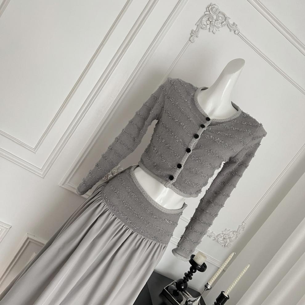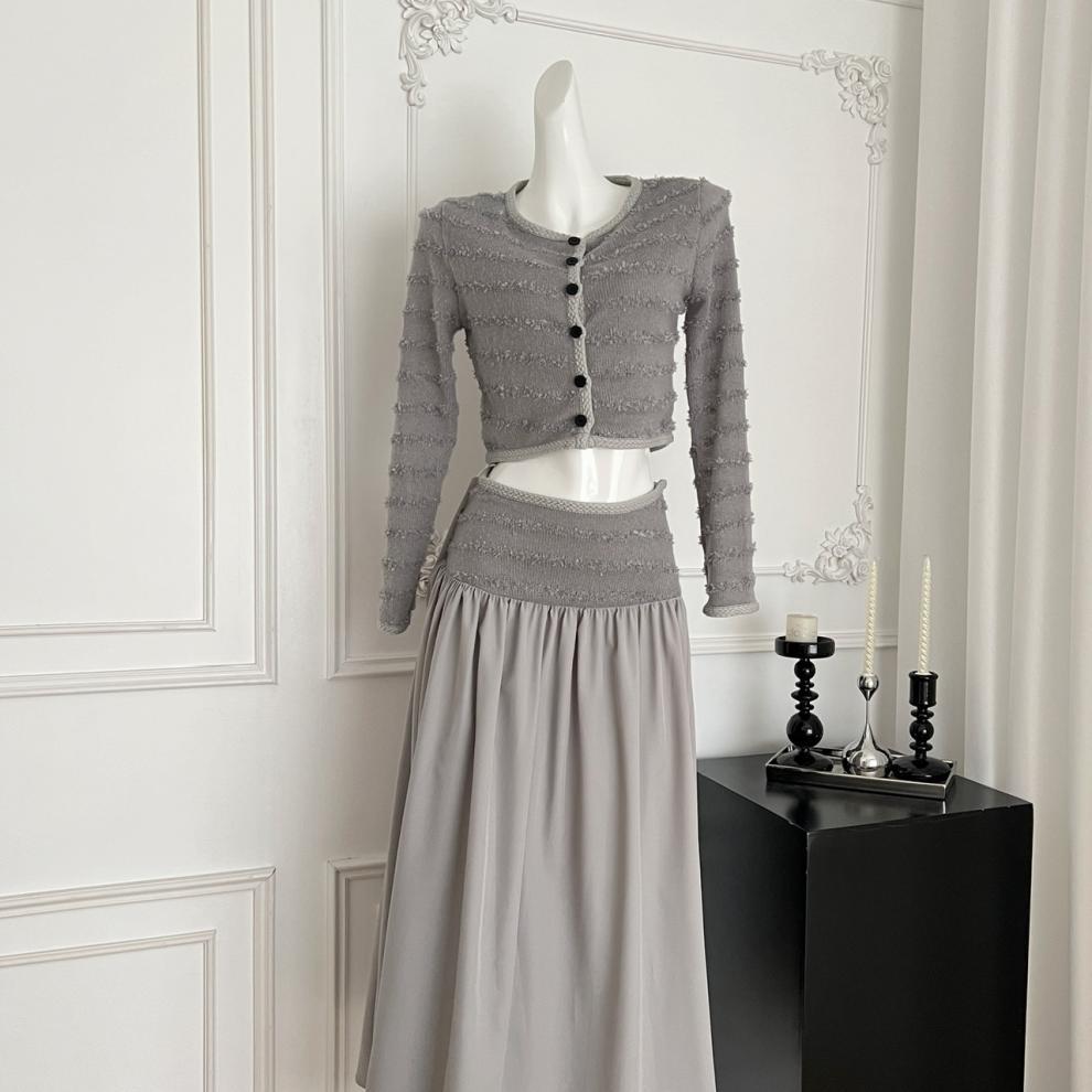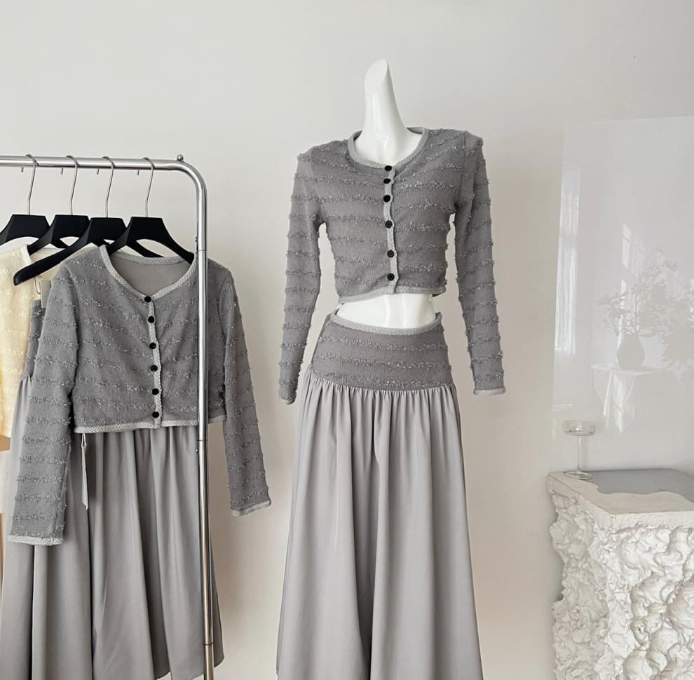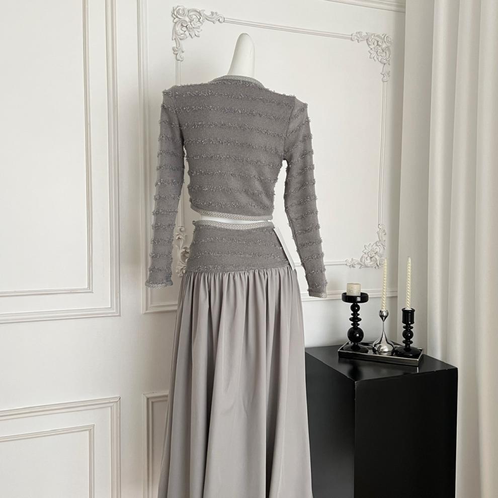 ¡Nuevo para Otoño! Top de Punto a Rayas de Momento Privado y Falda Midi Larga Conjunto Casual de Dos Piezas