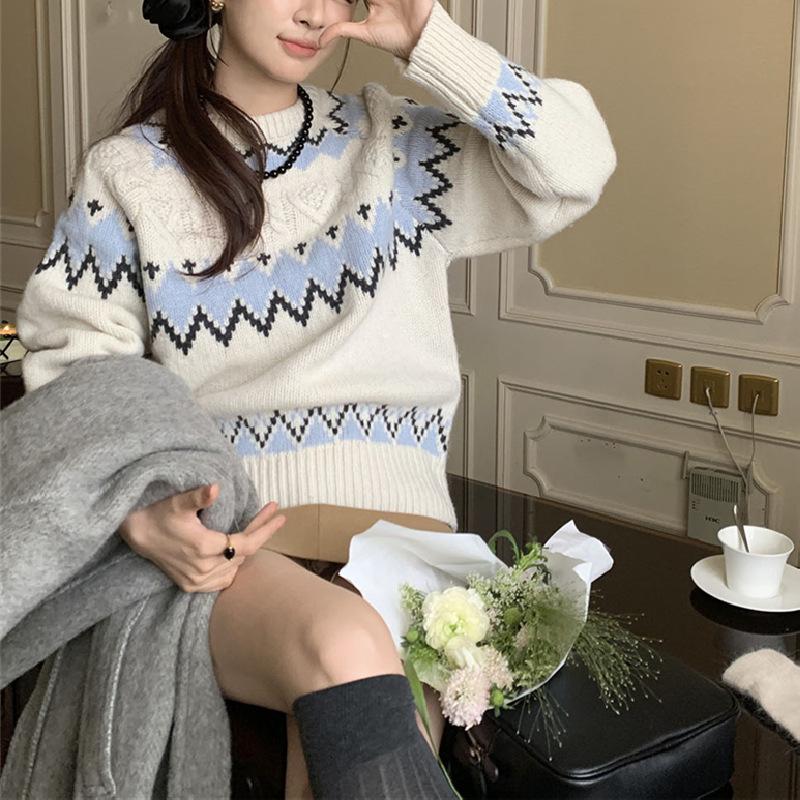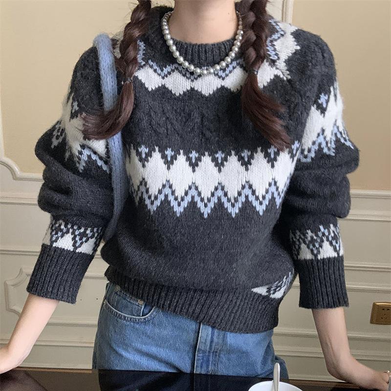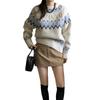 Suéter de punto estilo jacquard suave 2025 otoño/invierno retro elegante temperamento moderno adelgazante Fair Isle jersey para mujer