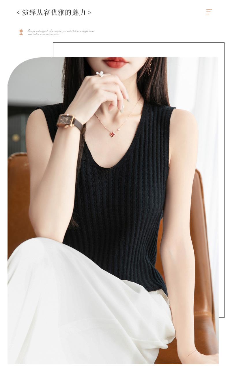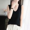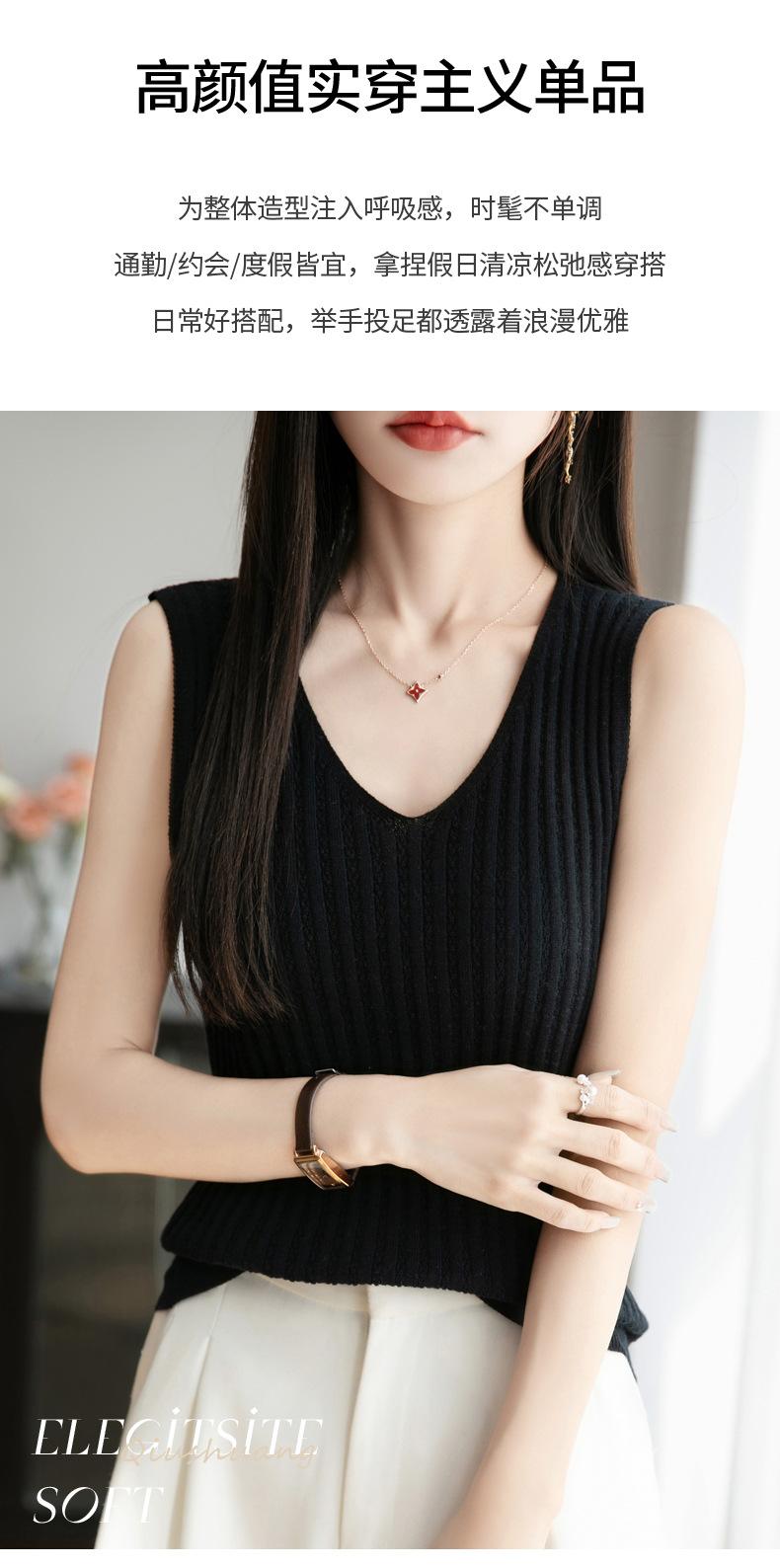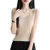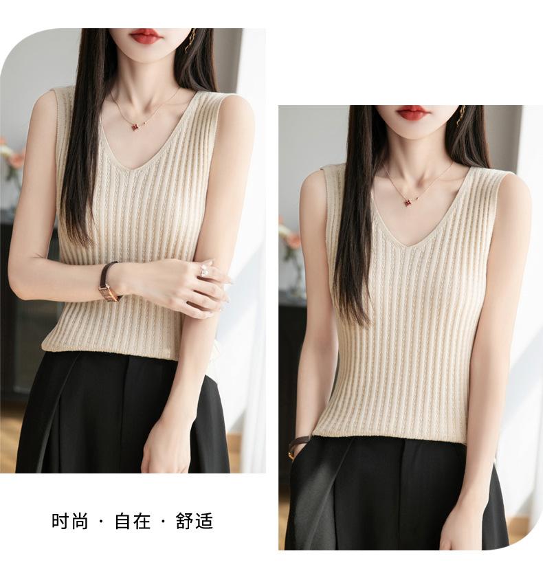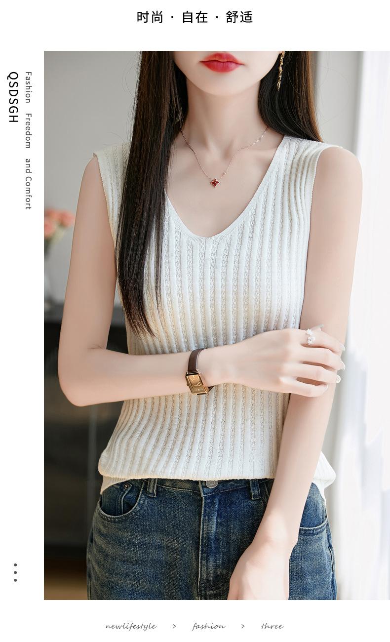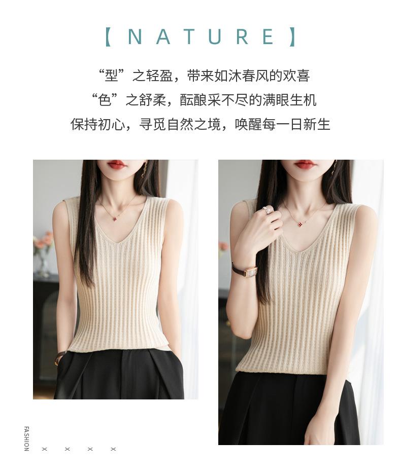 2025 Verano Nuevo Camisola de Punto de Algodón Puro con Cuello en V Color Sólido Canalé Interior Jersey Básico para Mujer