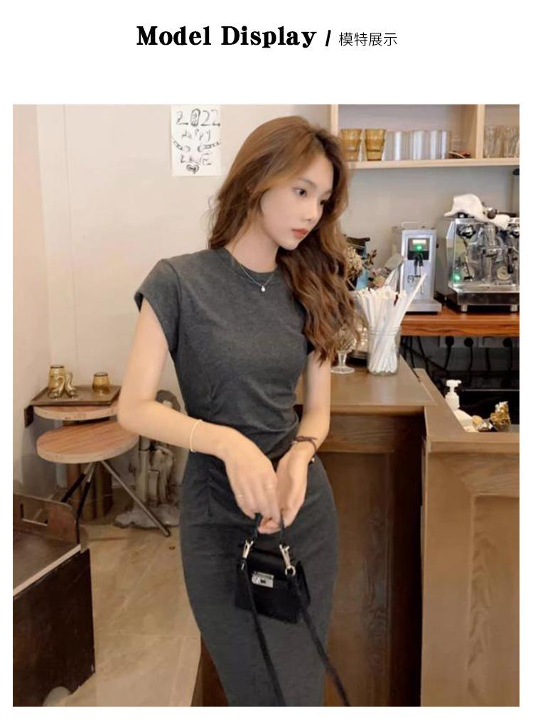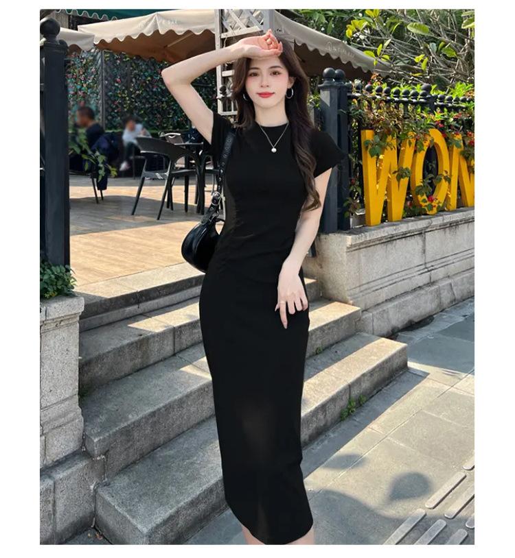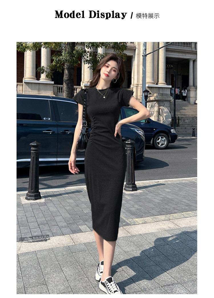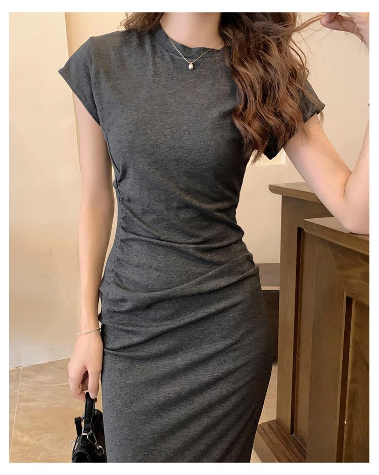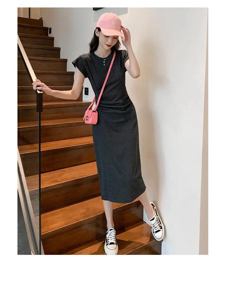 Vestido Nuevo de Verano 2025 para Mujer de Talla Grande, Ceñido a la Cintura, Adelgazante, Elegante, Fruncido, Estilo Francés, Sexy, Bodycon, Largo