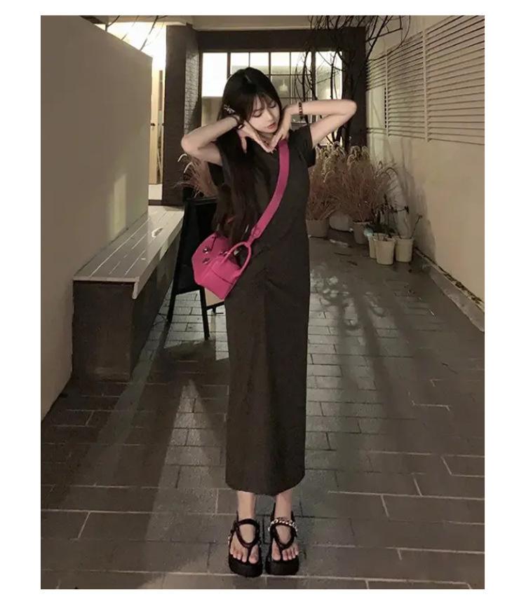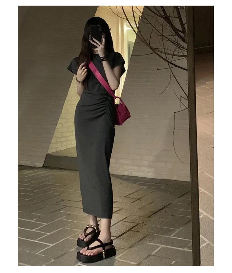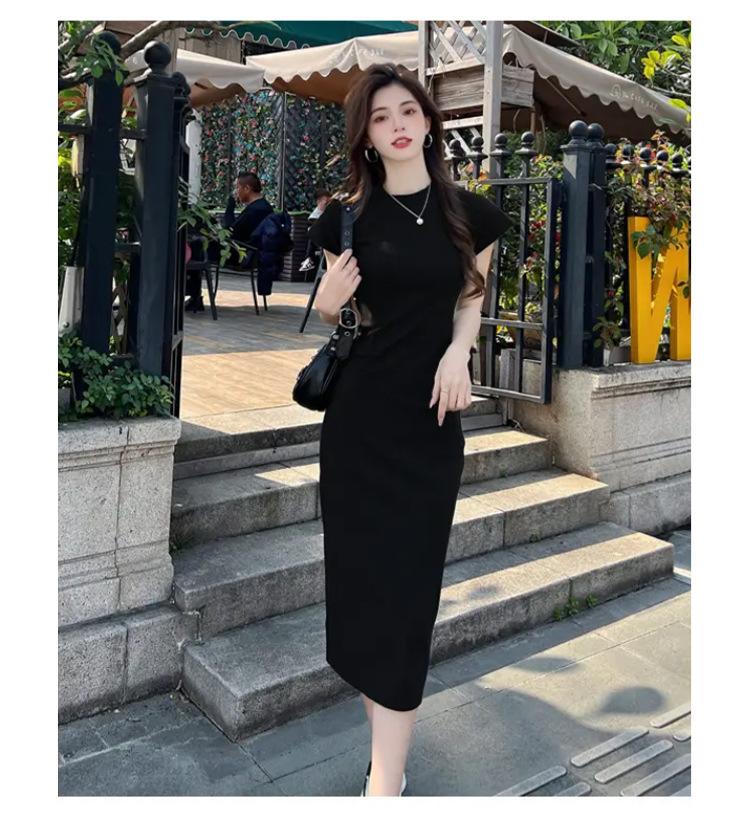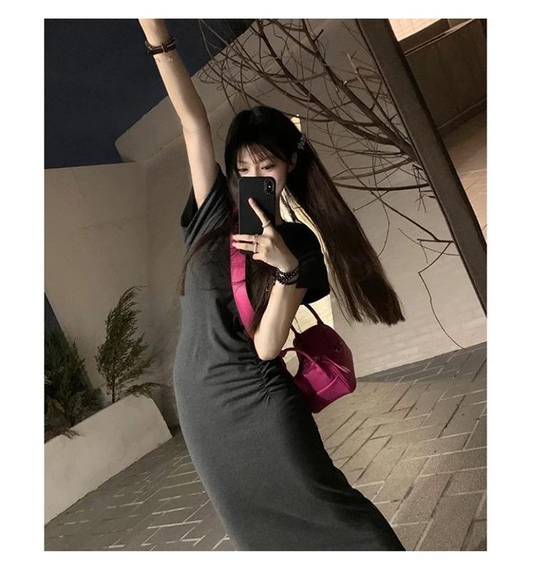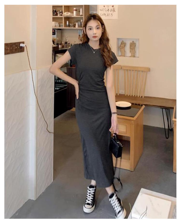 Vestido Nuevo de Verano 2025 para Mujer de Talla Grande, Ceñido a la Cintura, Adelgazante, Elegante, Fruncido, Estilo Francés, Sexy, Bodycon, Largo