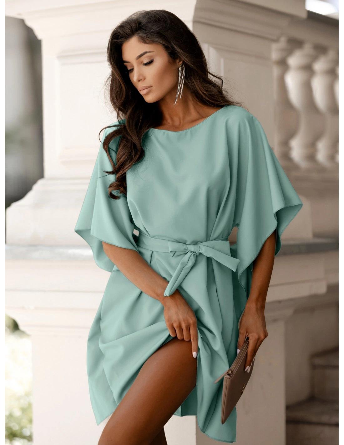 2025 Amazon Transfronterizo Europeo y Americano Nuevo Primavera y Verano Vestido de Manga Campana de Color Puro con Lazo en la Cintura para Mujer