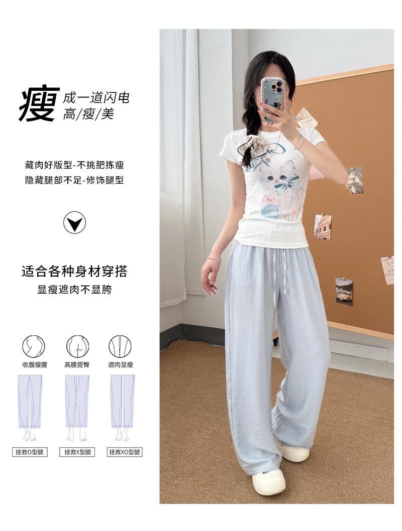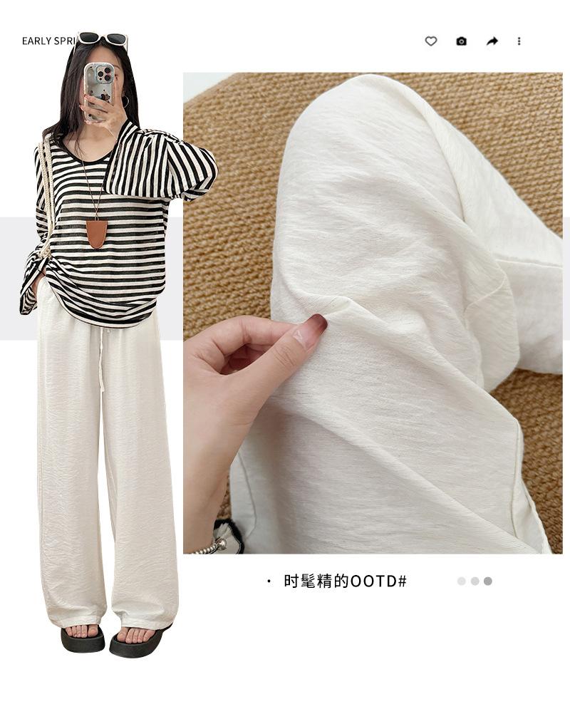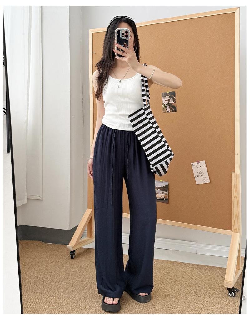 Pantalones de Pierna Ancha de Lino Tencel para Mujer, Estilo Delgado de Verano, Holgados y Relajados, Cintura Alta, Rectos con Caída, Adelgazantes hasta el Piso, Pantalones Casuales