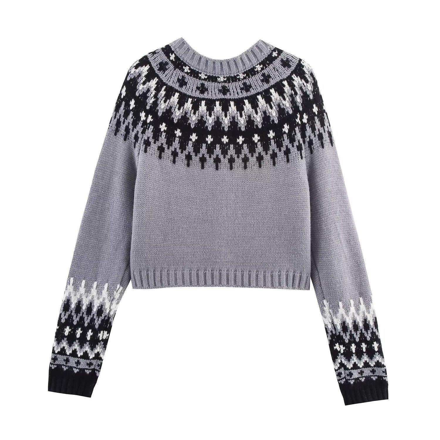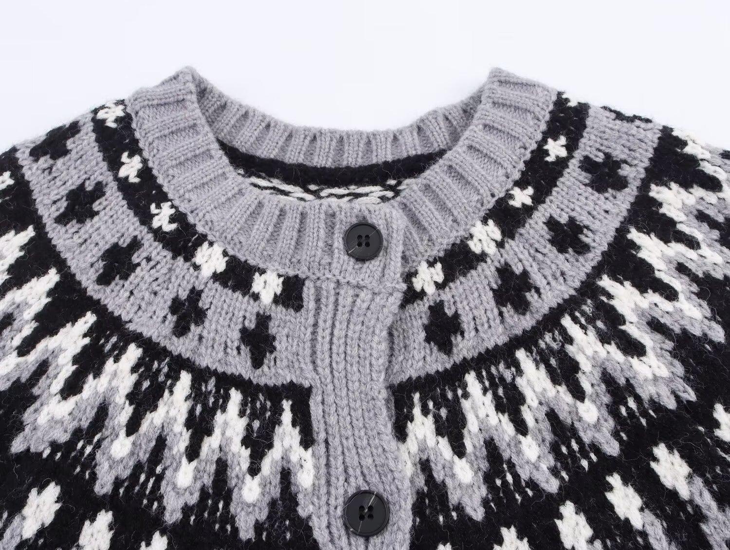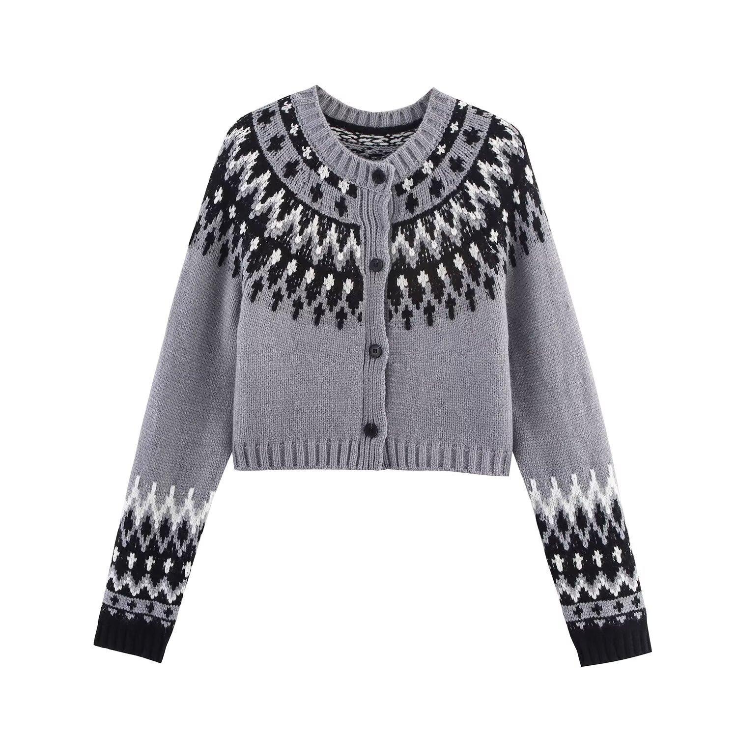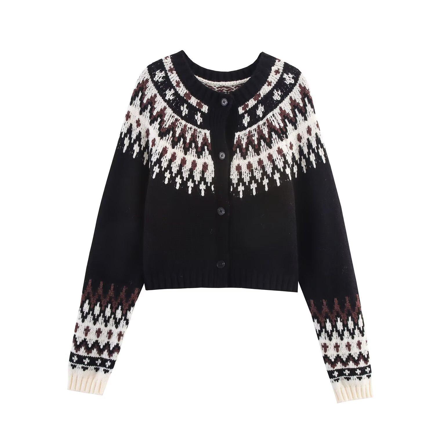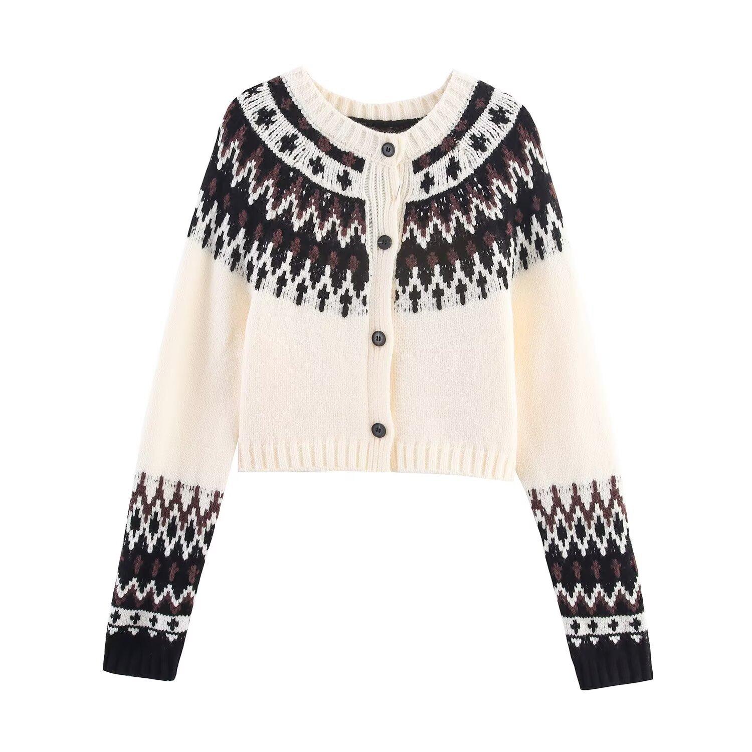 Moda femenina europea y americana transfronteriza AliExpress más vendido ropa de mujer al por mayor cárdigan de punto jacquard con bloques de color