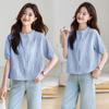 2025 Nuevo Estilo de Verano Hermosas Blusas de Algodón de Manga Corta Camisas Holgadas para Reducir la Edad y Versátiles para Mejorar la Calidad y la Tendencia