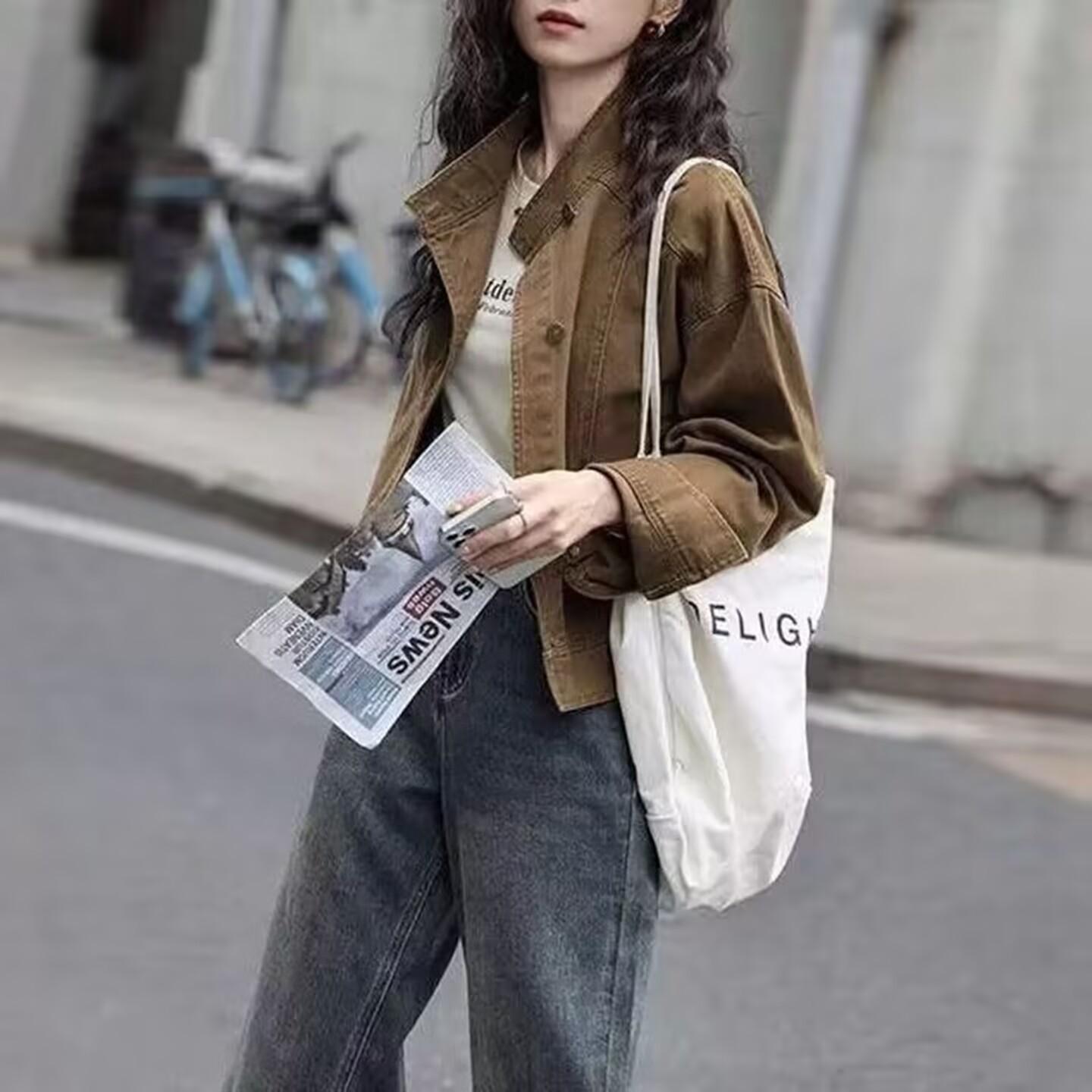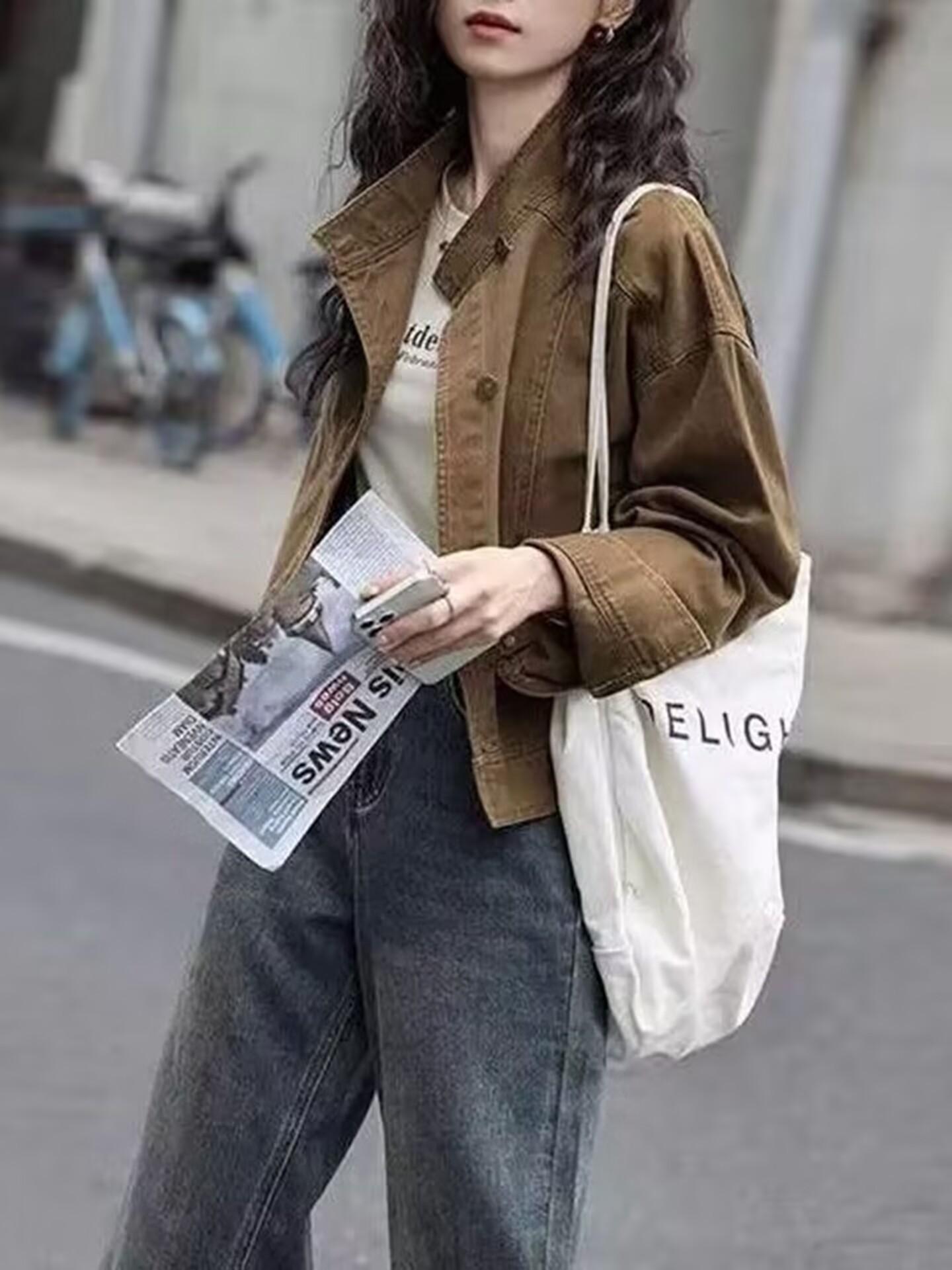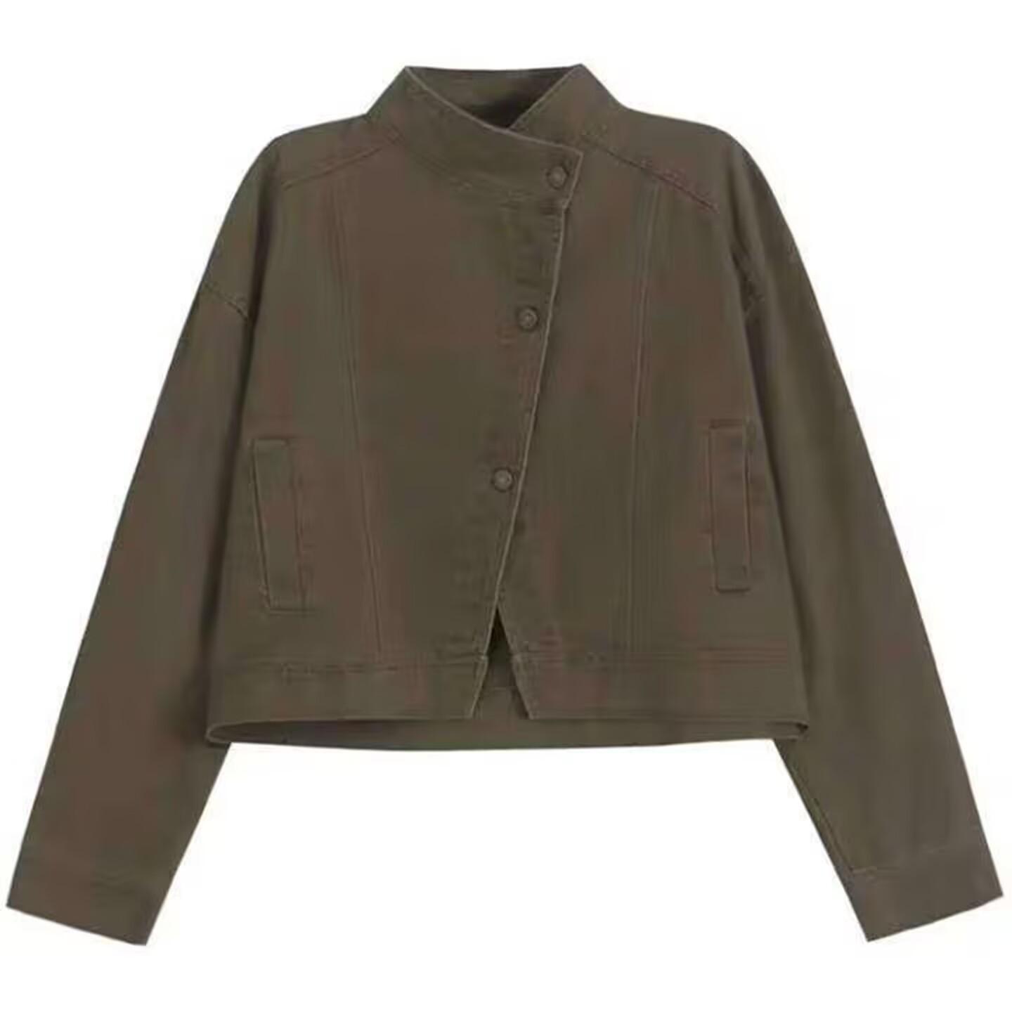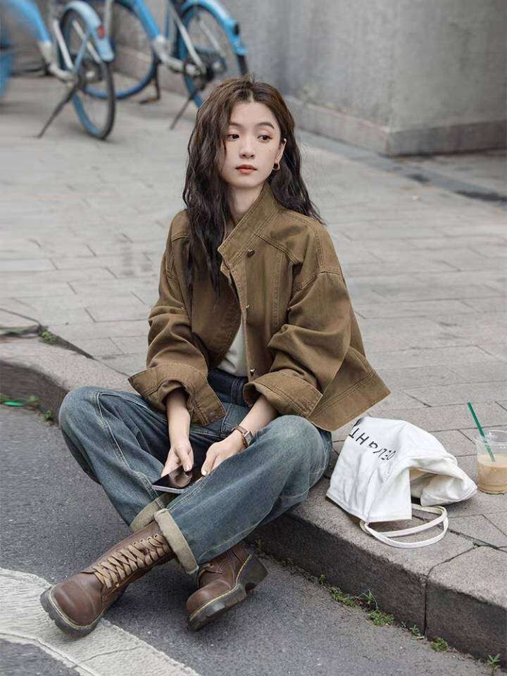 Chaqueta de mezclilla retro casual de alta gama 2025 de principios de primavera para mujer, diseño con sentido, cuello alto, temperamento, top de trabajo, tendencia