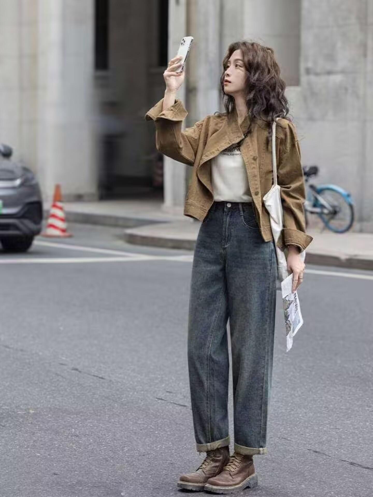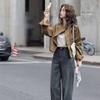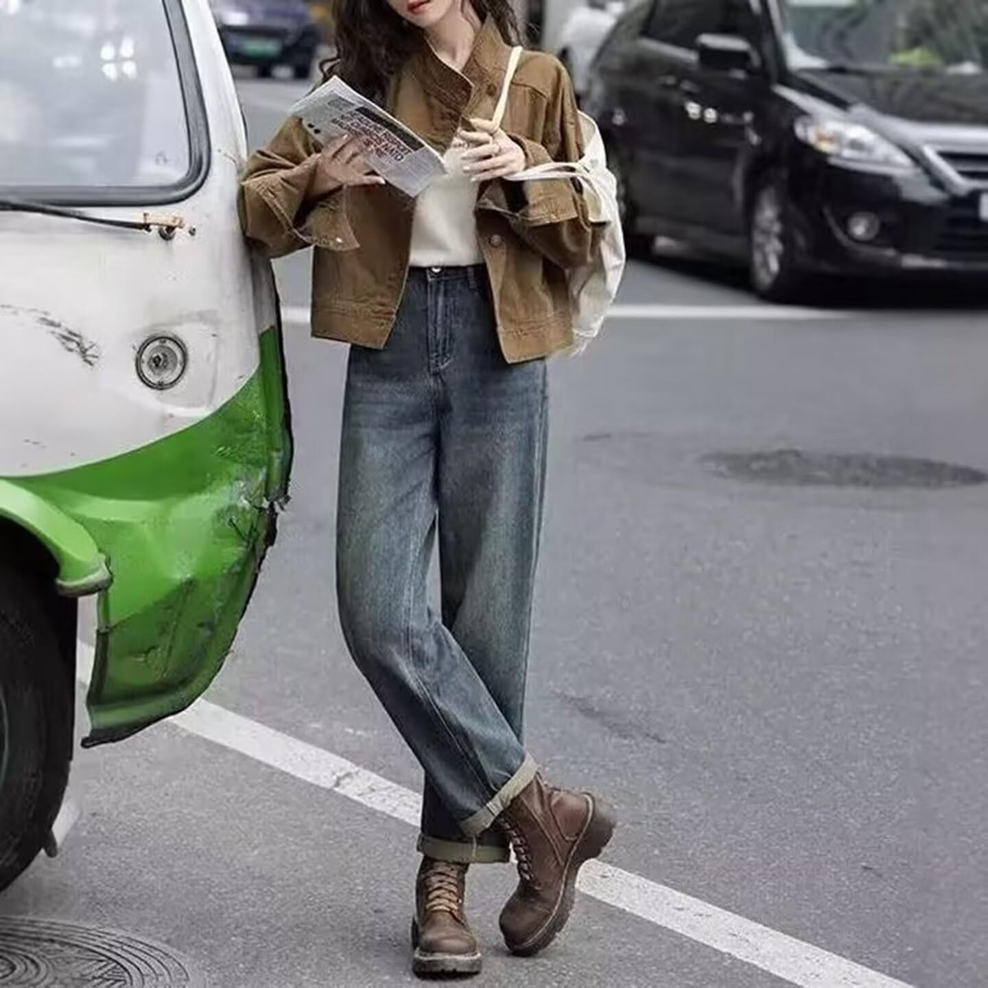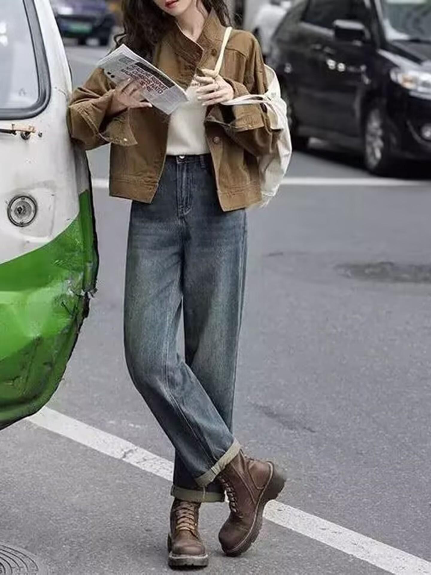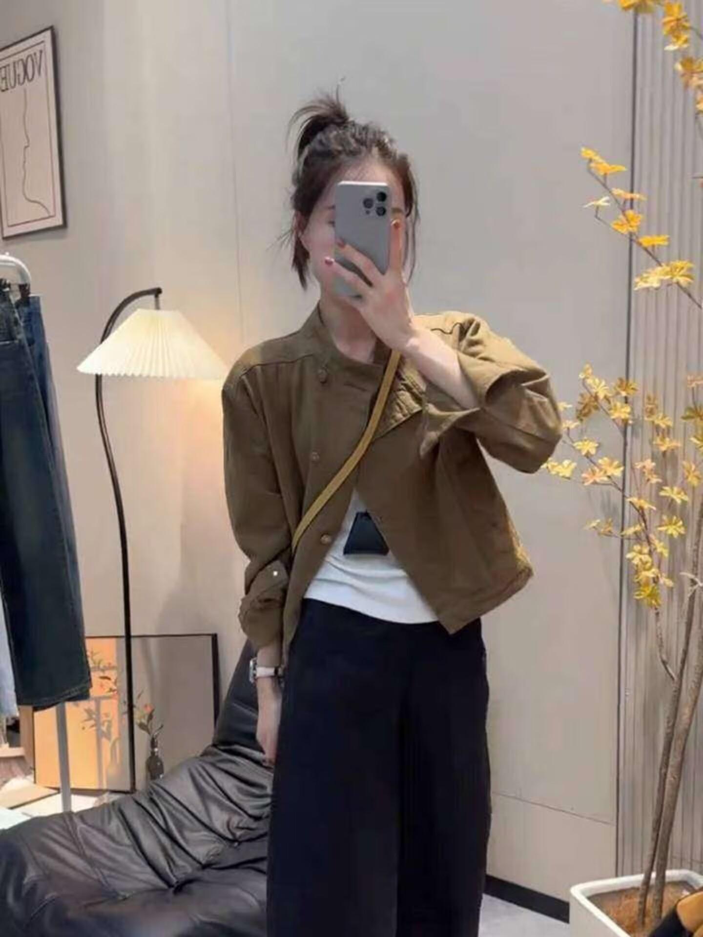 Chaqueta de mezclilla retro casual de alta gama 2025 de principios de primavera para mujer, diseño con sentido, cuello alto, temperamento, top de trabajo, tendencia