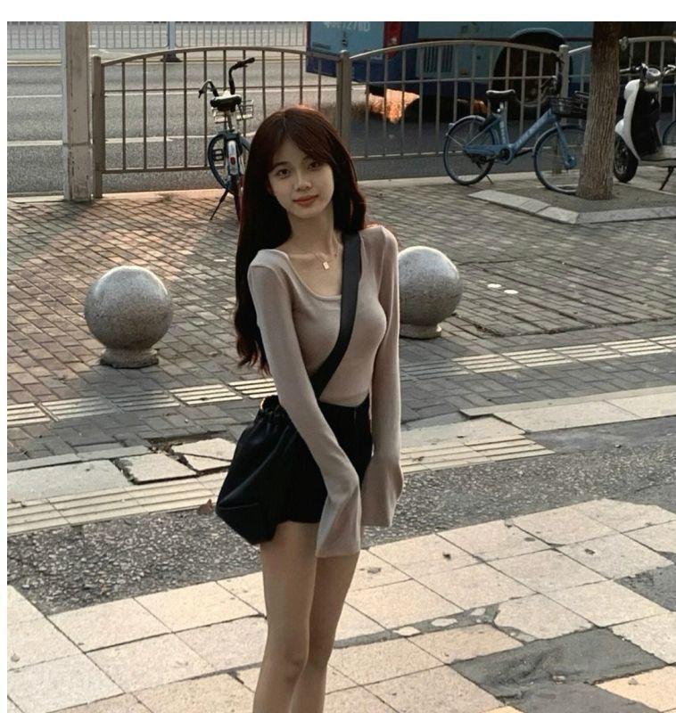 Camiseta Base Tailandesa de Cuello Grande para Mujer, 2025 Nueva Moda, Camiseta Ajustada y Sexy