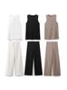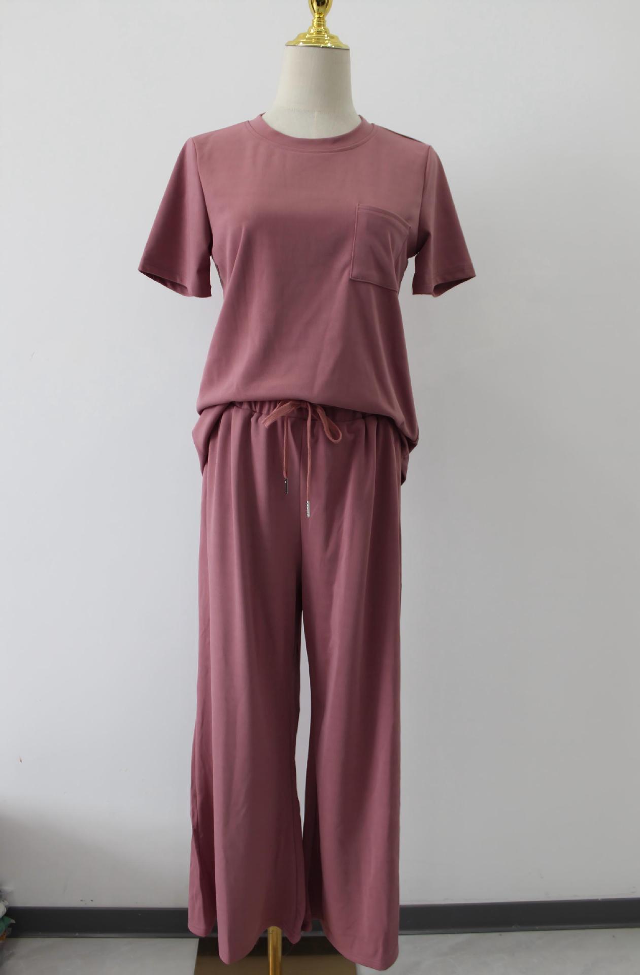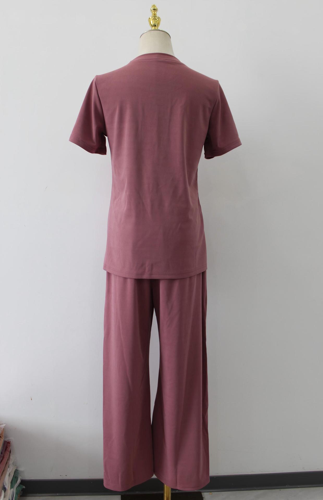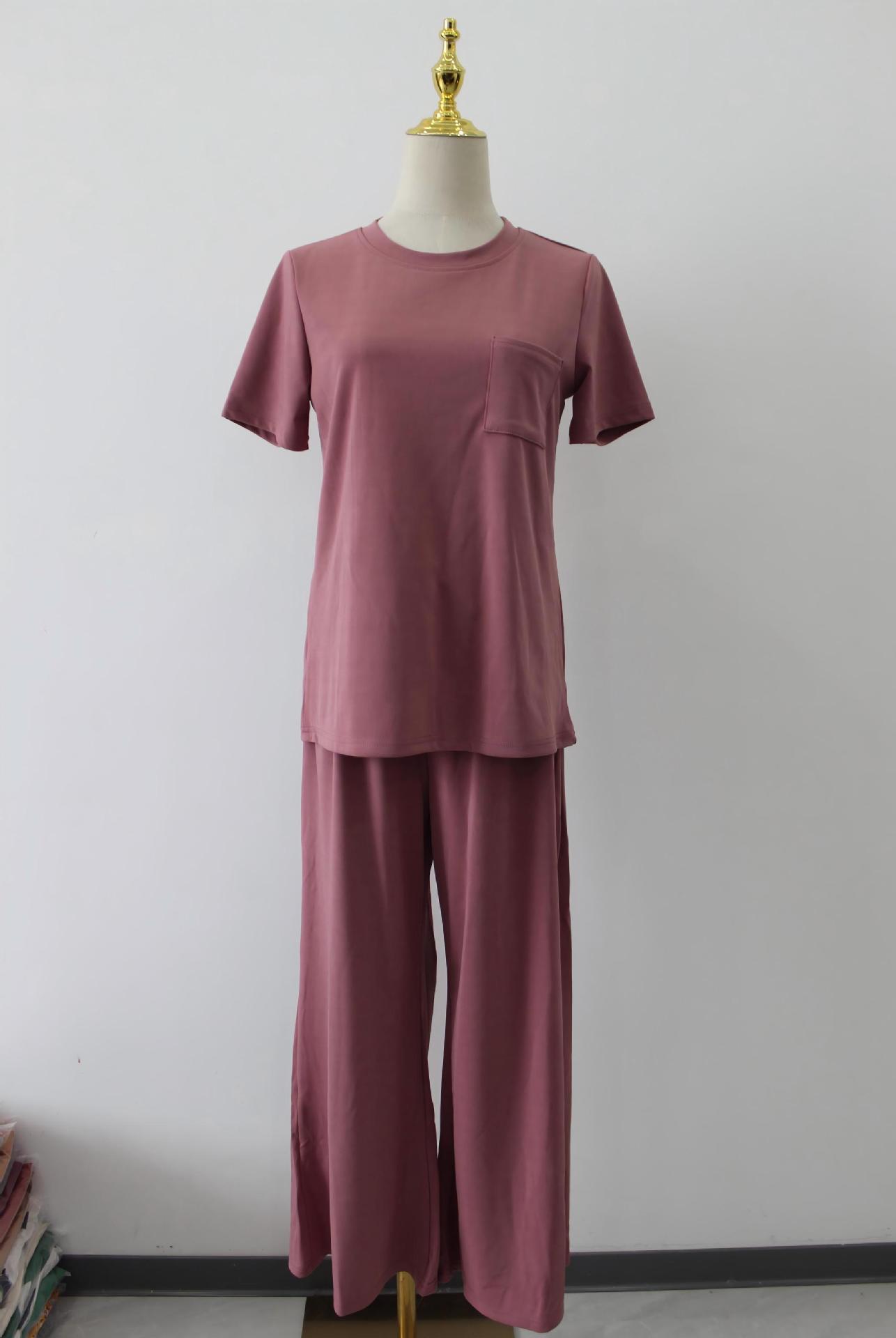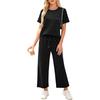 Europeo y Americano Transfronterizo 2 piezas Ropa Casual de Verano para Viajes y Vacaciones para Mujer Pantalones de Pierna Ancha de Manga Corta Traje Casual Color Sólido
