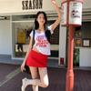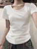Playera básica blanca americana de manga corta para mujer, verano, delgada, chica hot, corta, ajustada, hombro recto, diseño nicho