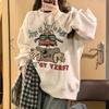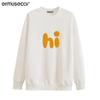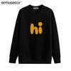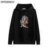 Sudadera negra de manga larga y cuello redondo de algodón hi puro para mujer, estilo otoño e invierno, holgada, estilo perezoso, 350 g, con capucha estampada, pesada