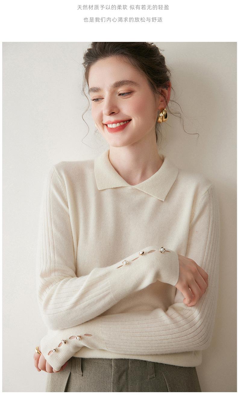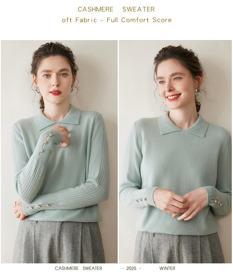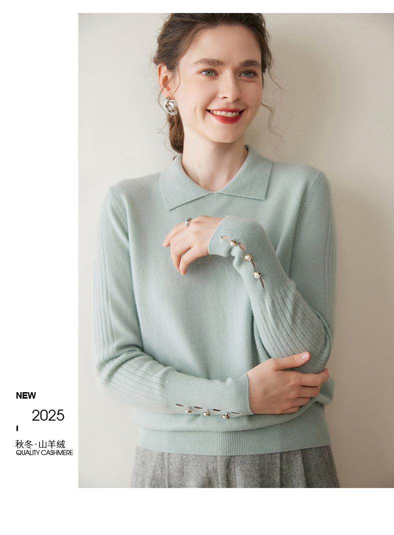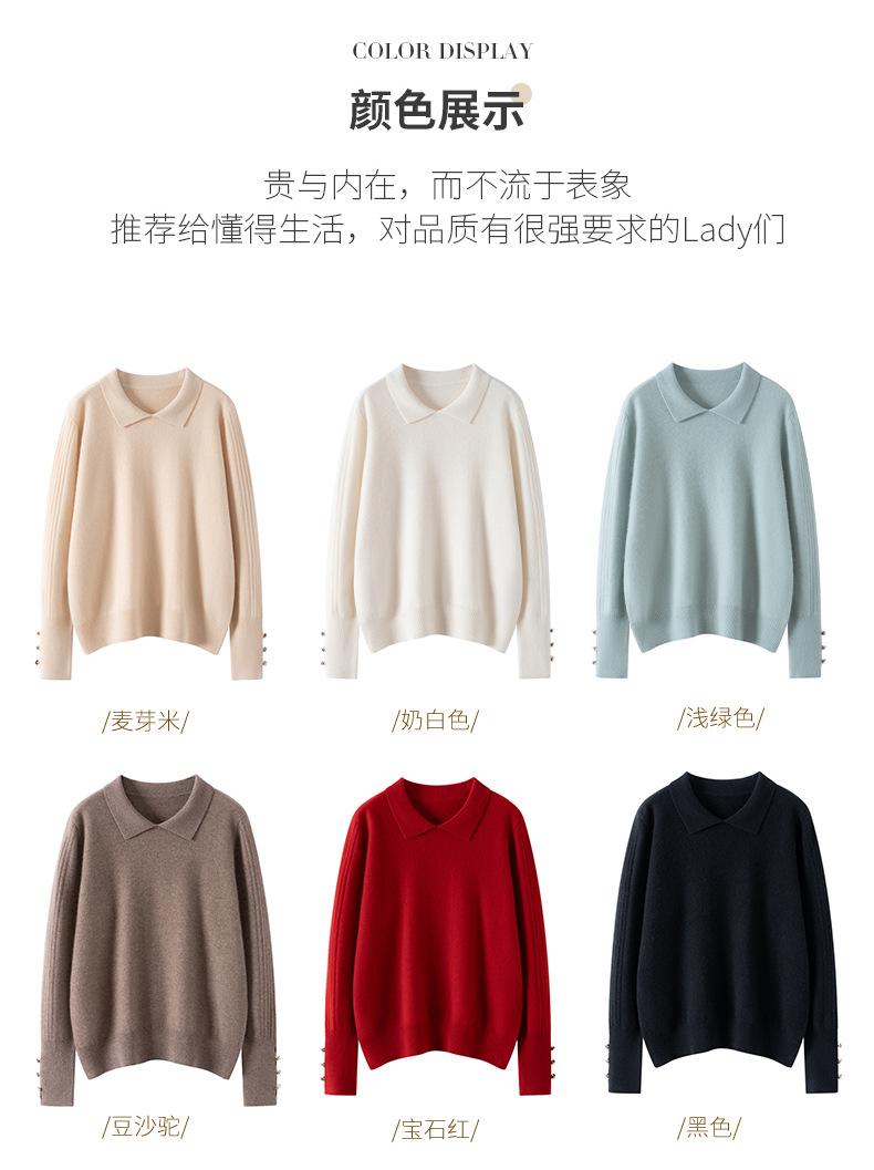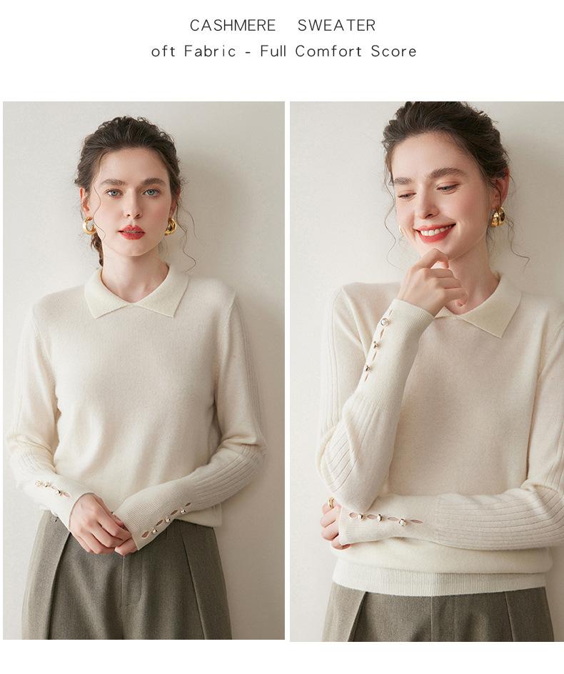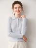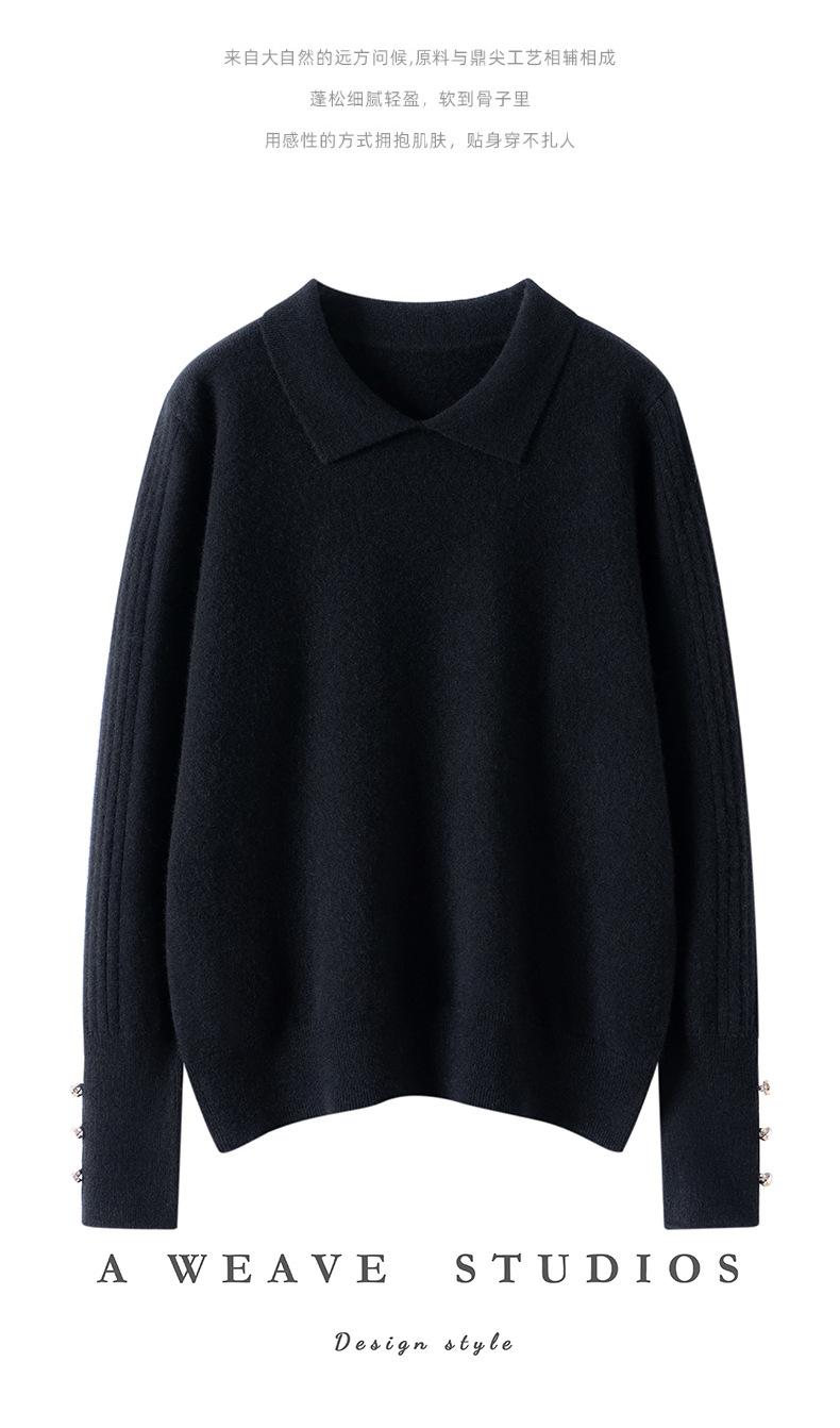Polo de Mujer Manga con Hebilla Tejido Base Otoño e Invierno Nuevo Suéter de Cachemira Color Sólido Capa Interior Suéter Ligeramente Holgado
