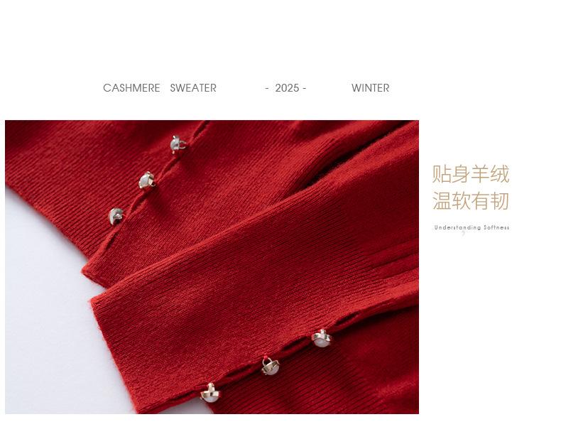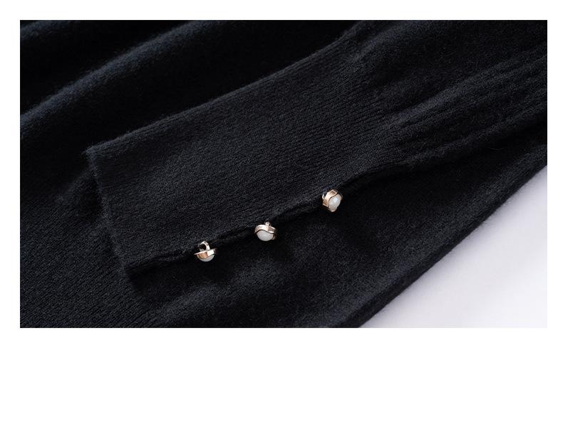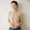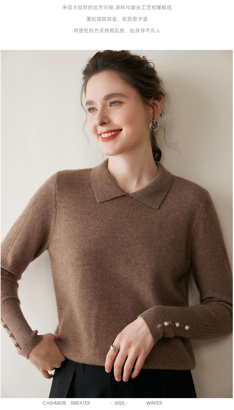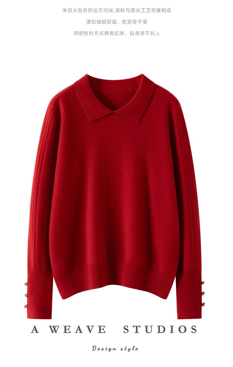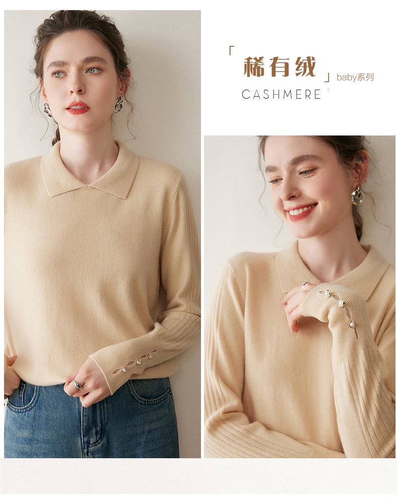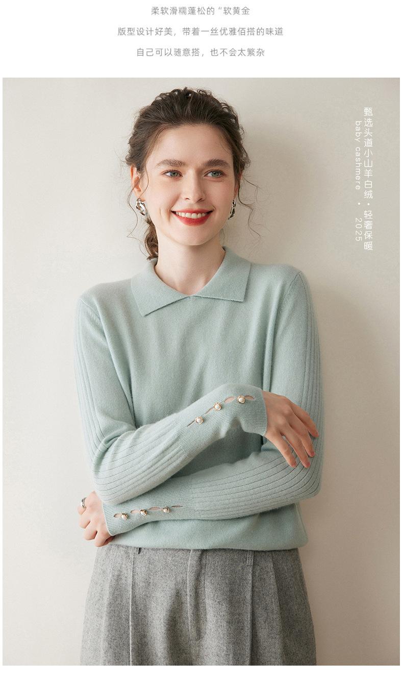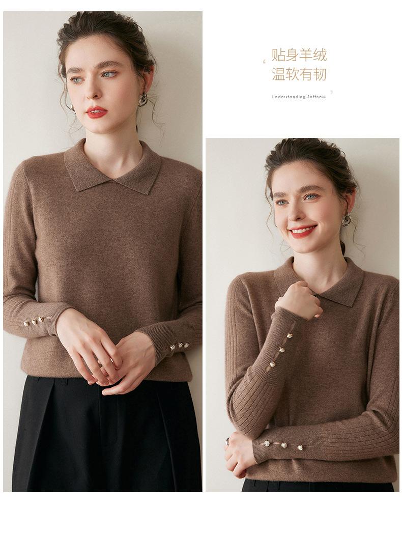 Polo de Mujer Manga con Hebilla Tejido Base Otoño e Invierno Nuevo Suéter de Cachemira Color Sólido Capa Interior Suéter Ligeramente Holgado