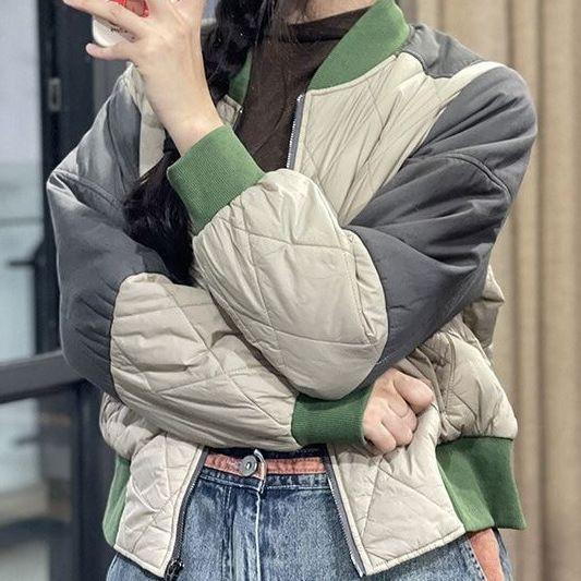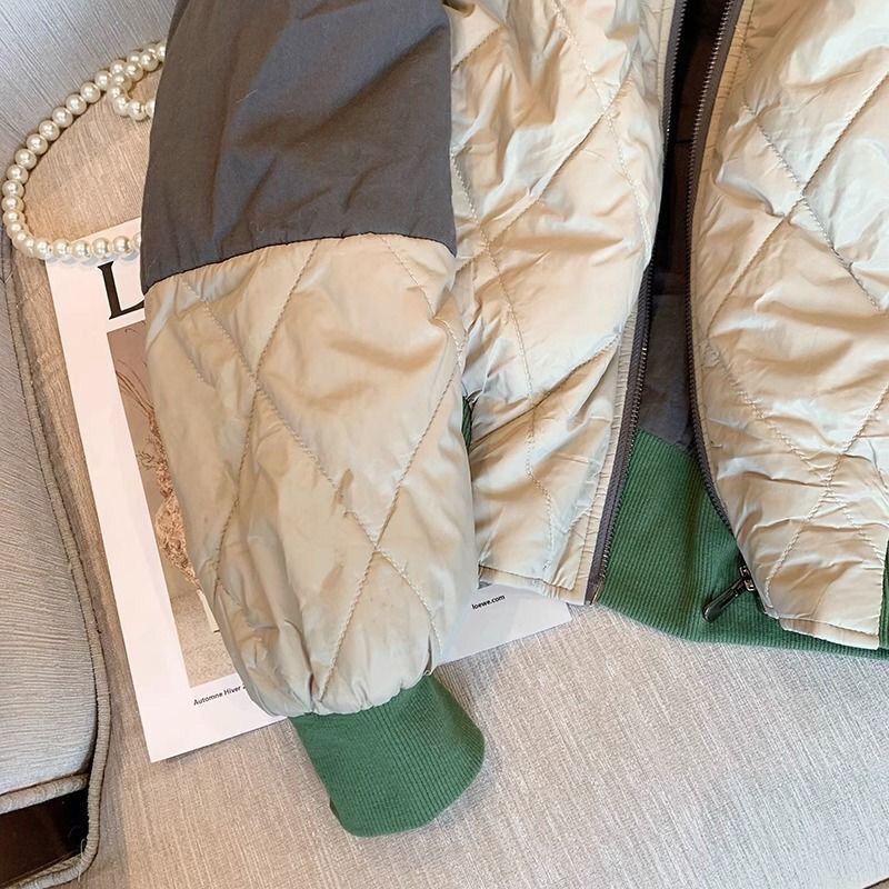 Chaqueta de Algodón Patchwork Estilo Retro Hong Kong para Mujer 2025 Nueva Versión Coreana Chaqueta Holgada Adelgazante Uniforme de Béisbol Abrigo de Algodón Outerwear para Mujer a la Moda