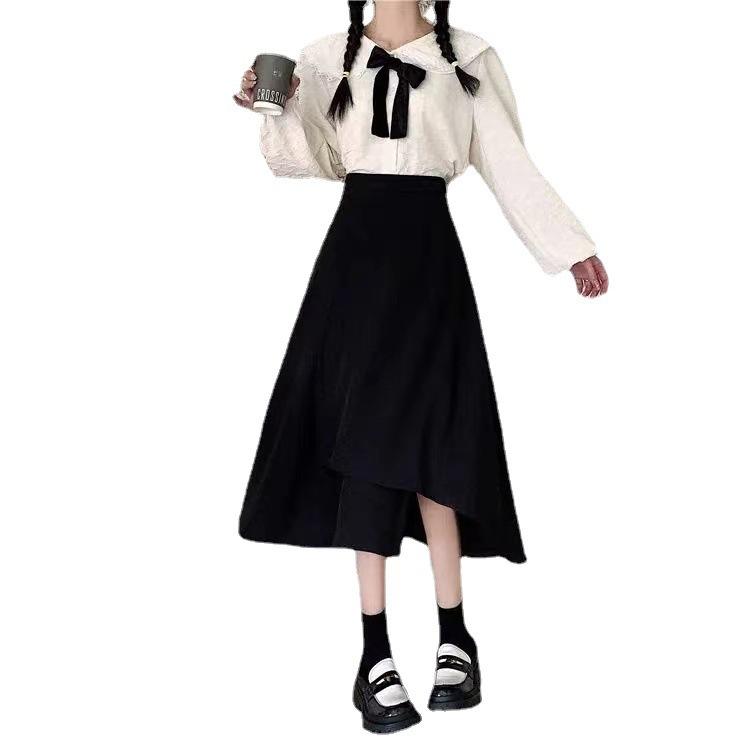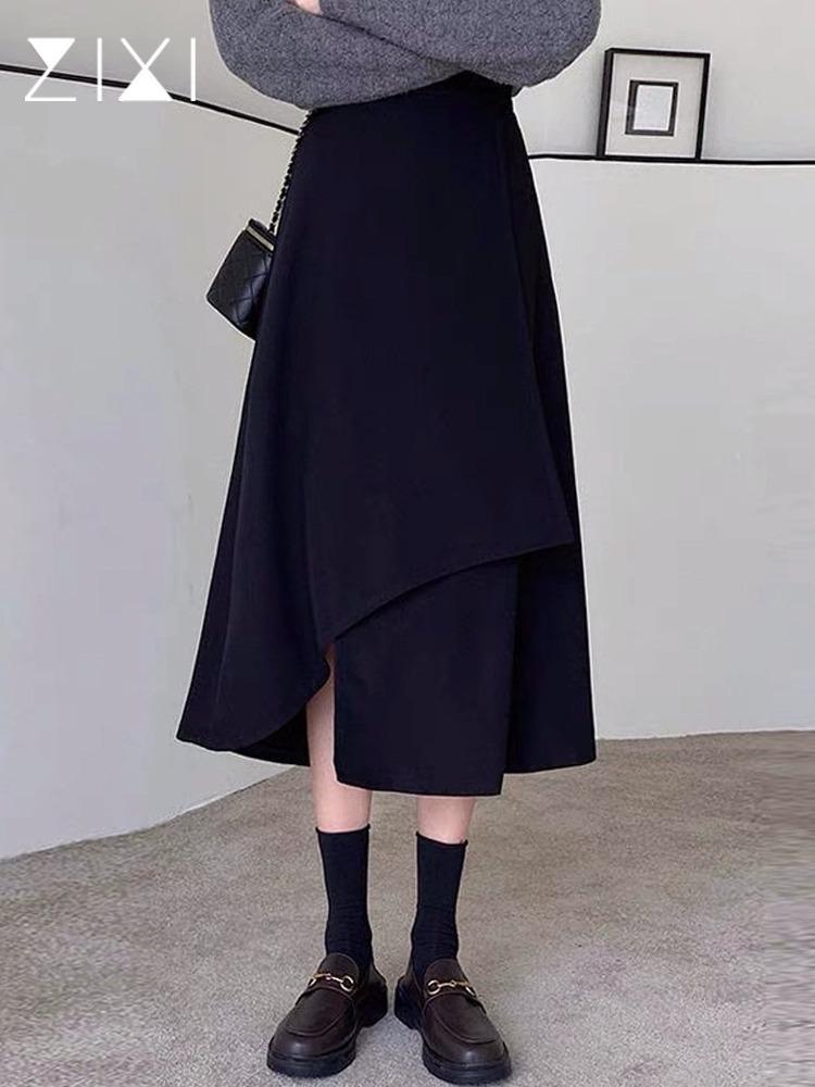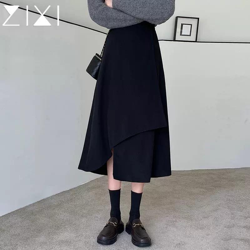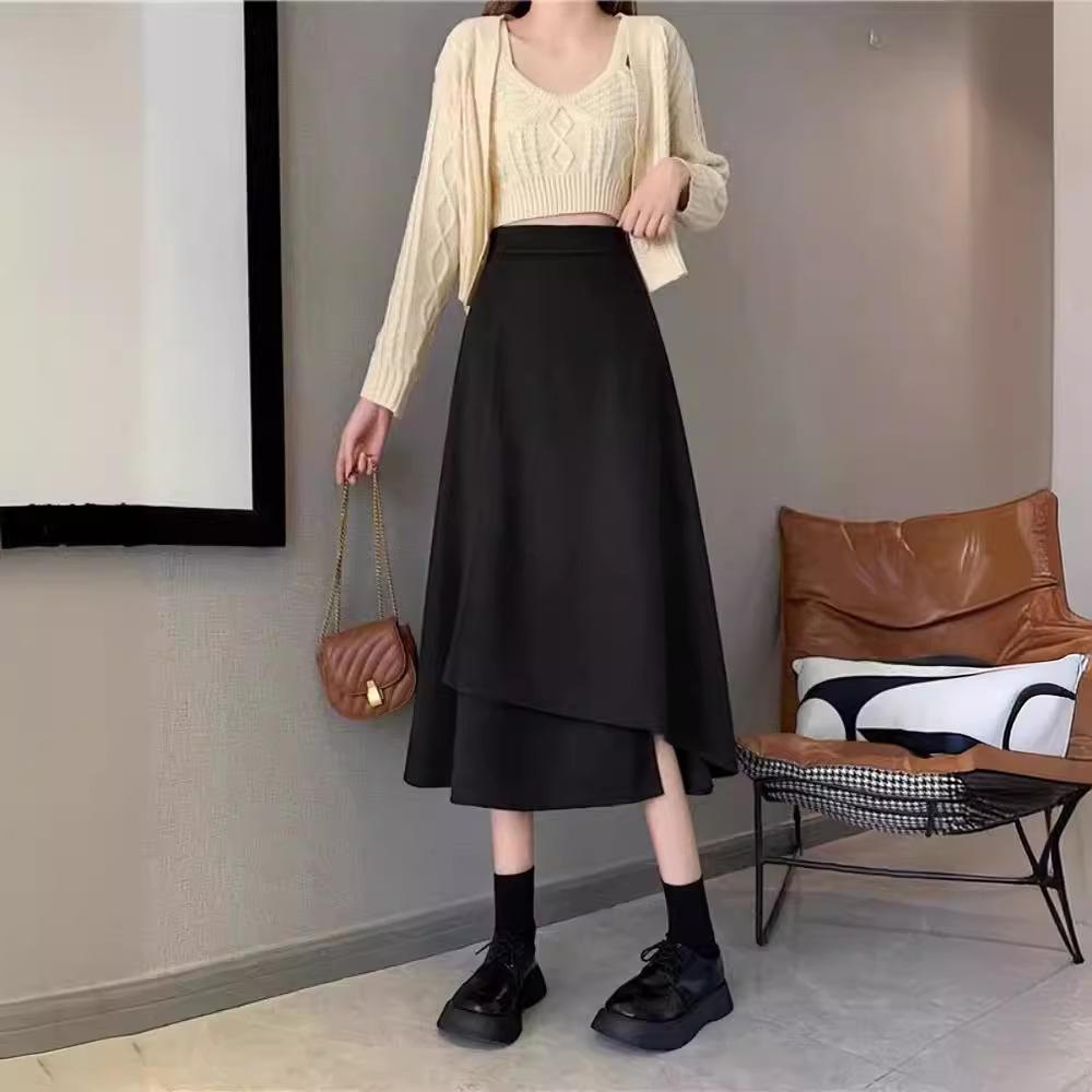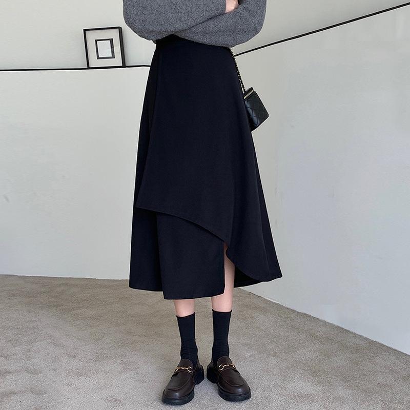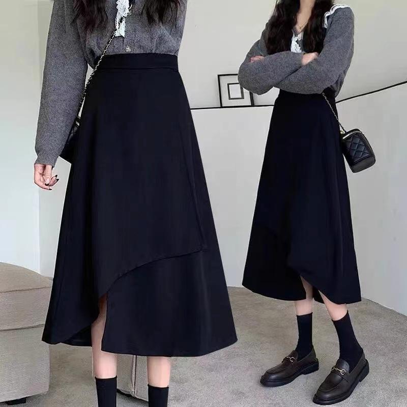 Falda midi para mujer embarazada estilo otoño casual irregular suelta media falda temporada de otoño largo medio soporte abdomen vestido otoño e invierno moderno negro