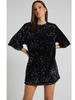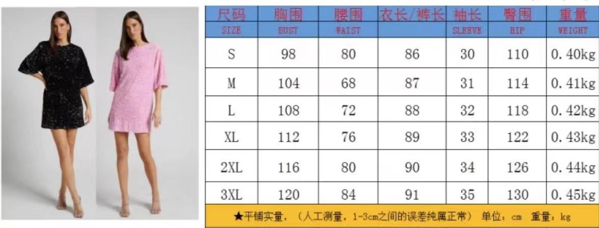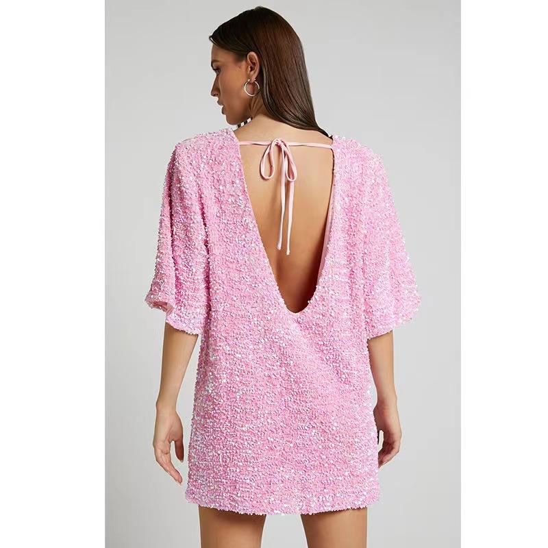 Amazon AliExpress 2023 top de lentejuelas cuello redondo manga corta espalda descubierta vestido de fondo de franela vestido de fiesta ins