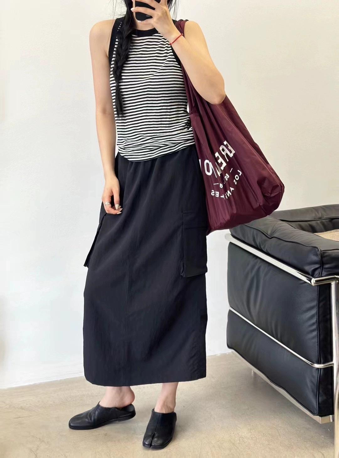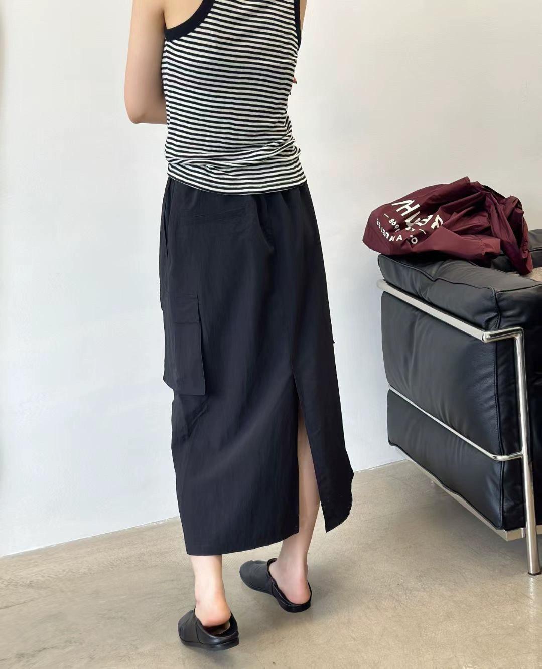Los bolsillos grandes en ambos lados están llenos de sentido del diseño, y la abertura trasera reduce la sensación de restricción.