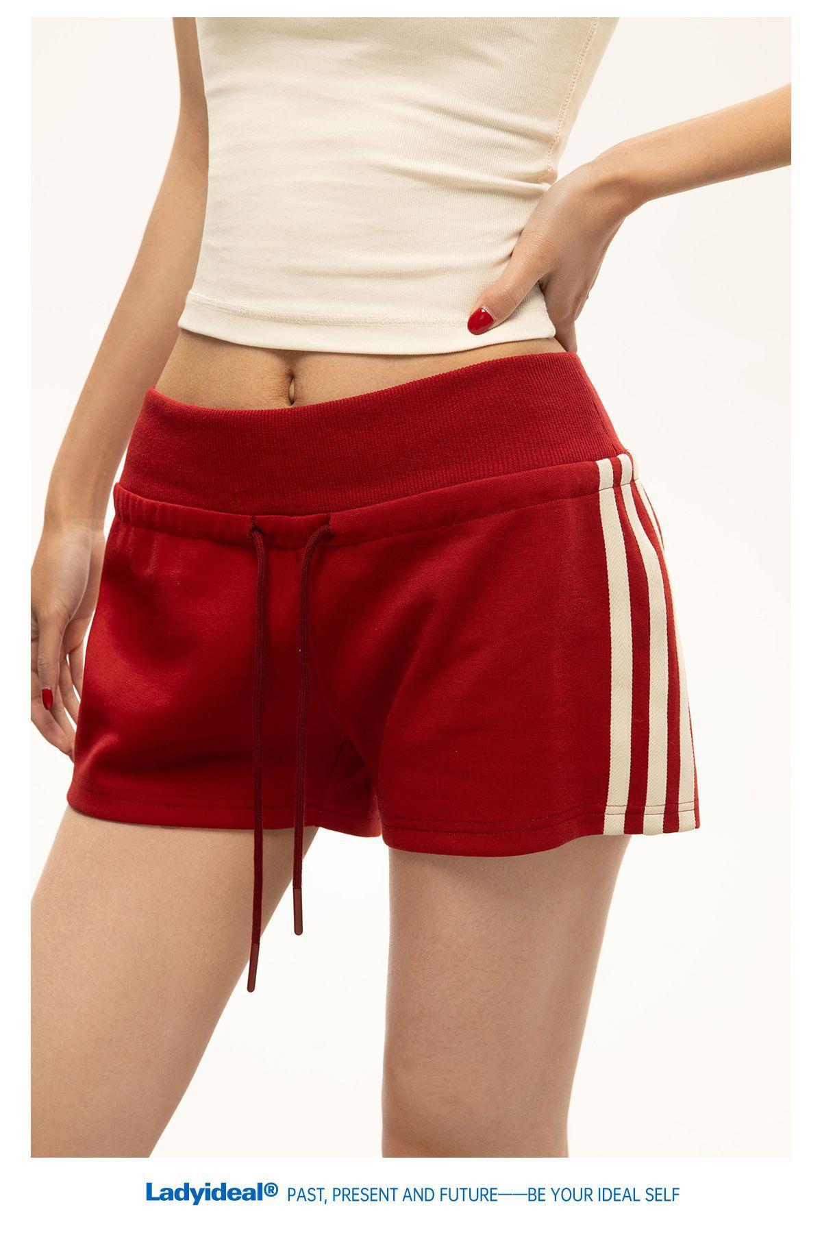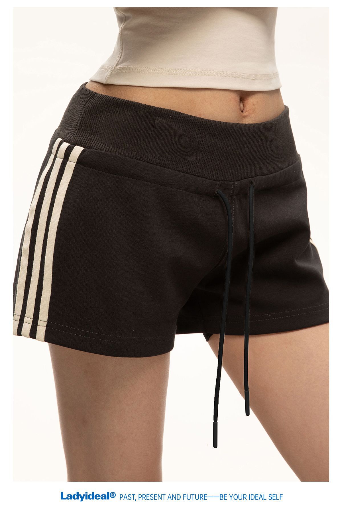 Pantalones Cortos Deportivos Americanos Retro Spicy Girl de Tres Rayas para Mujer 2025 Verano Nuevo Versátil Cordón Yoga Casual Hot Pants