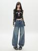 Jeans Rectos Retro Azules Mujer Otoño 2025 Nuevo Cintura Alta Sueltos Americanos Versátiles Pierna Ancha Pantalones Largos Hasta el Piso
