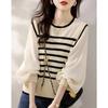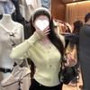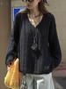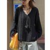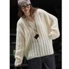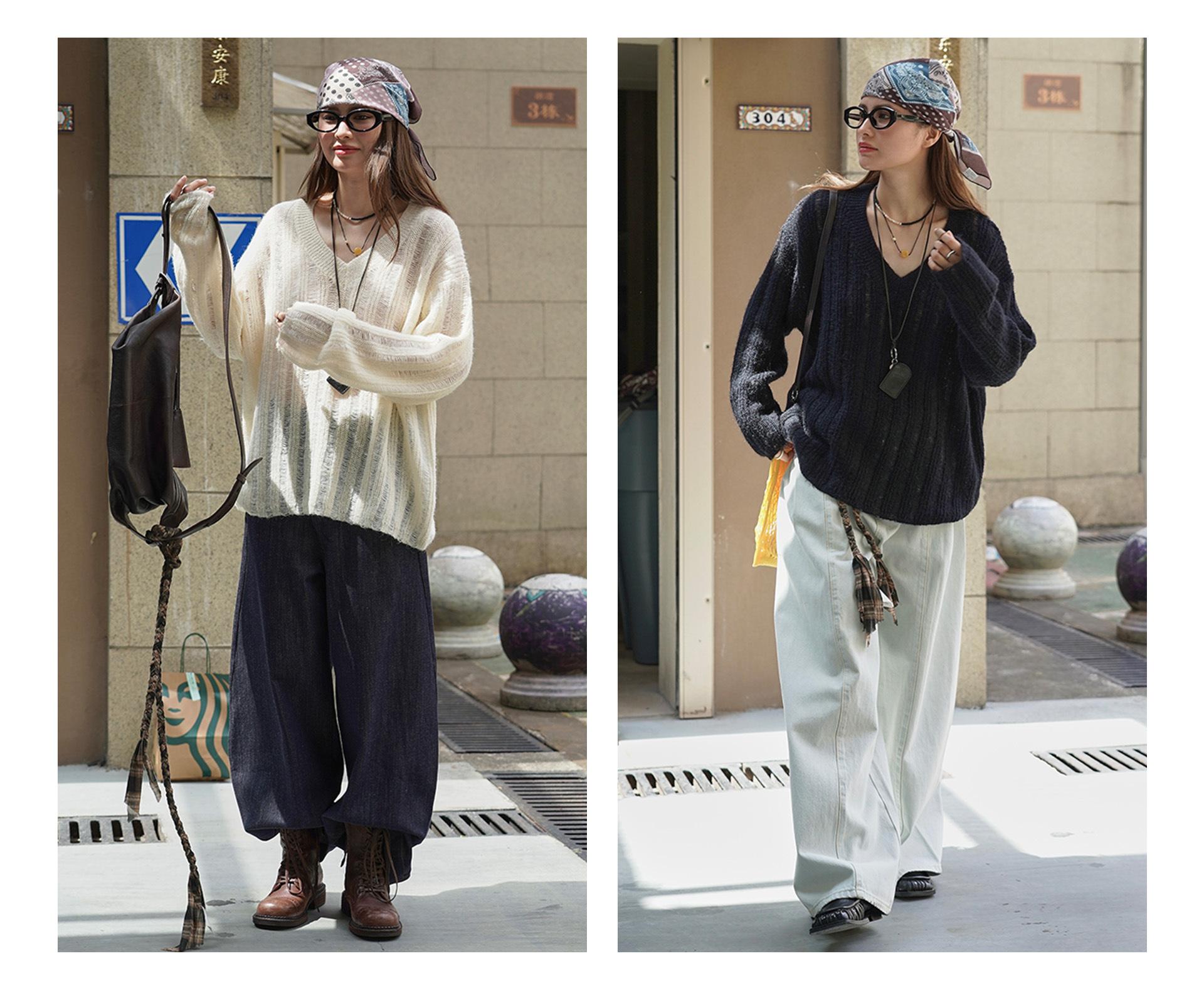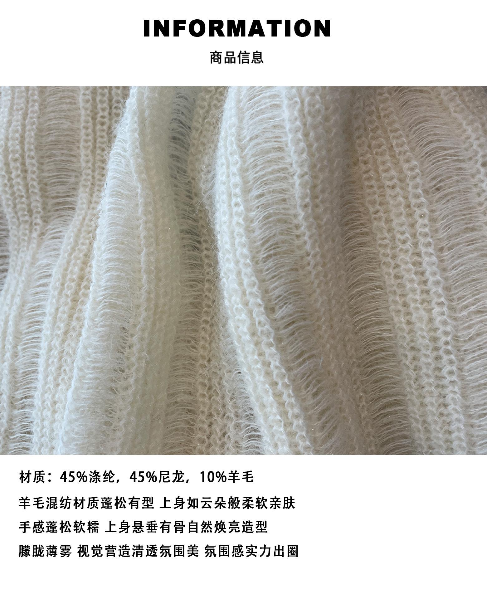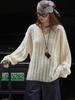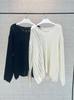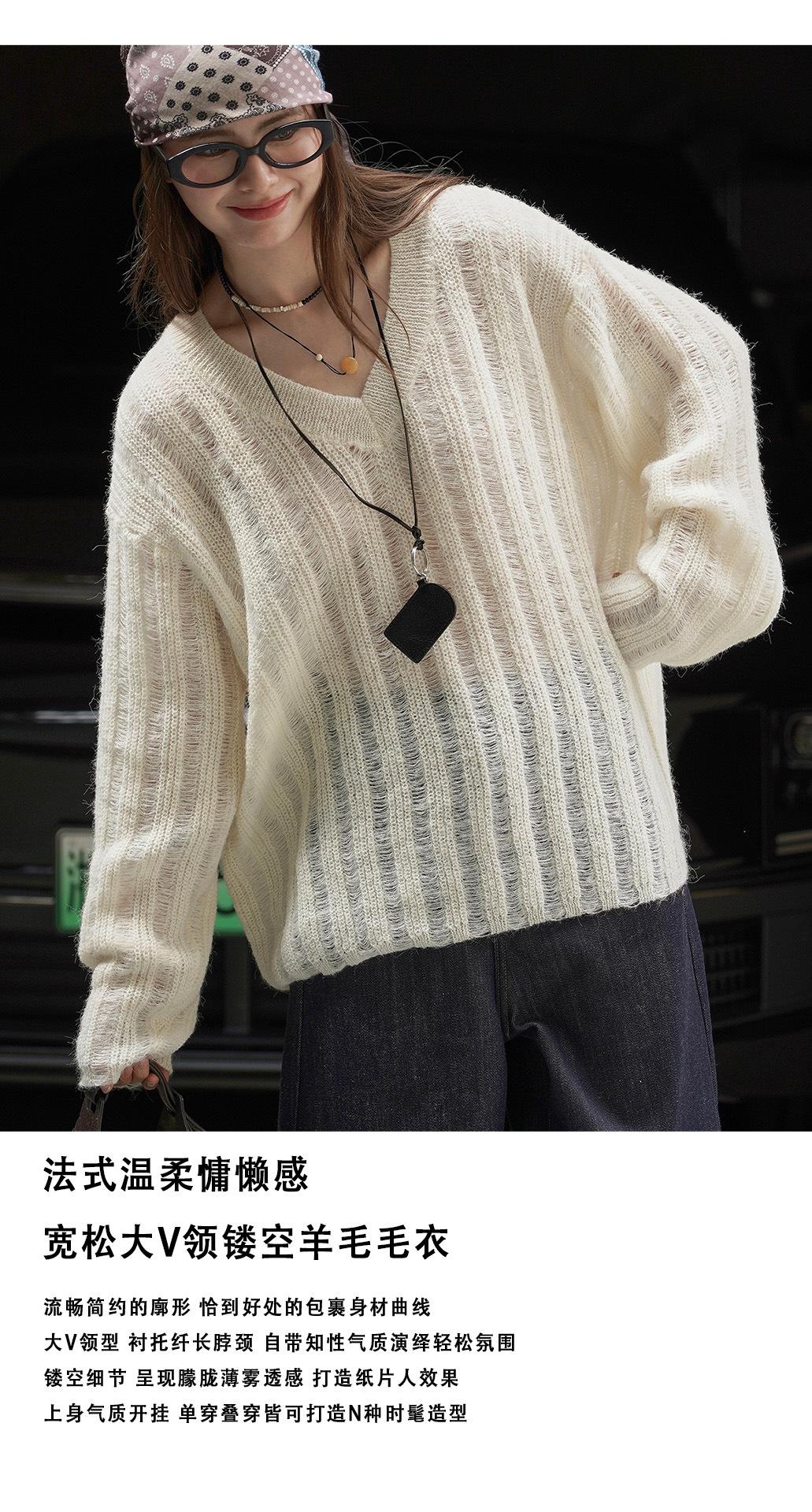 Otoño Temprano Nuevo Suéter Francés Delicado de Lana Calado con Cuello en V Profundo Suelto Perezoso Adelgazante Top Mujer