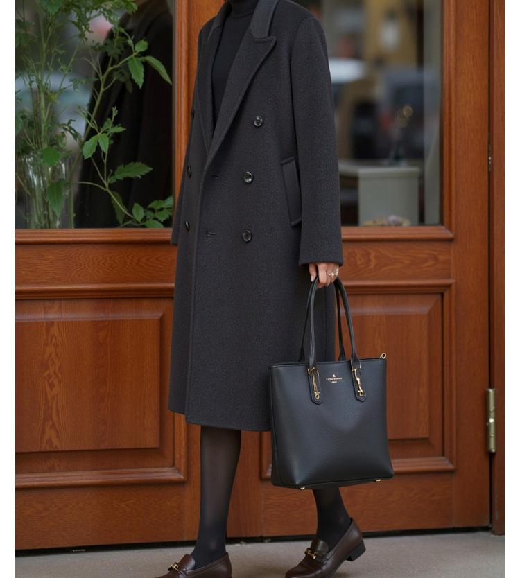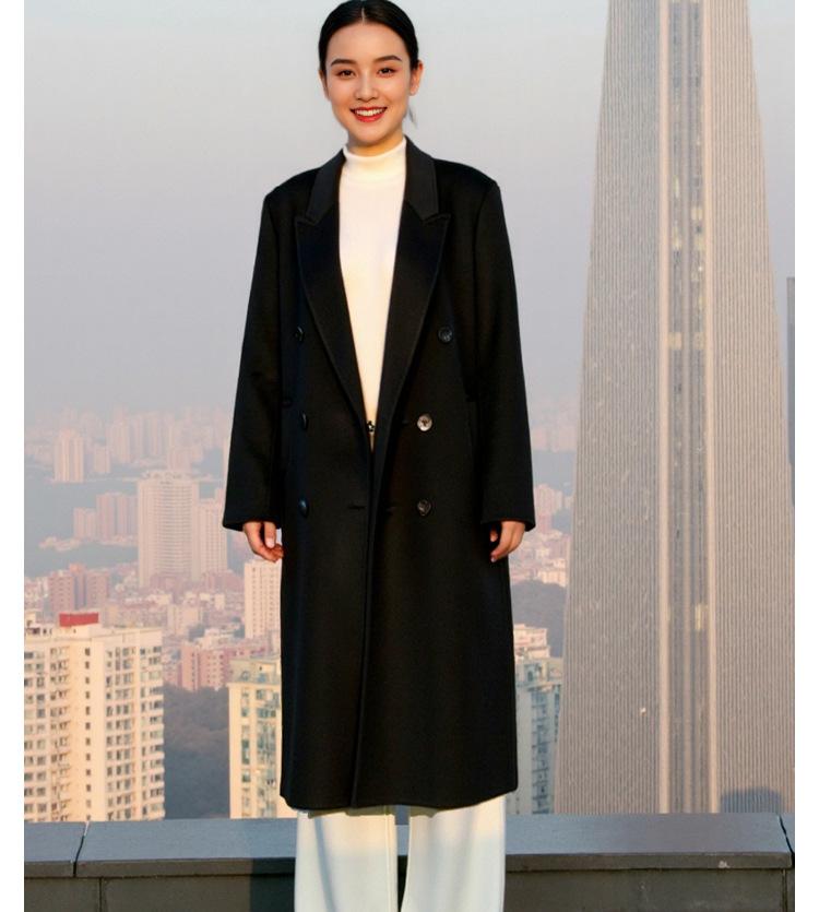 Abrigo de Lana de Doble Faz Nuevo Otoño/Invierno 2025 para Mujer Largo Medio de Alta Gama Doble Botonadura Abrigo de Lana Pura