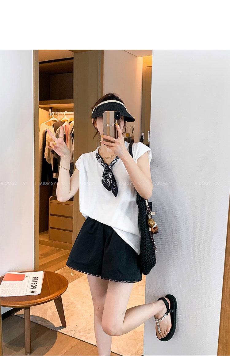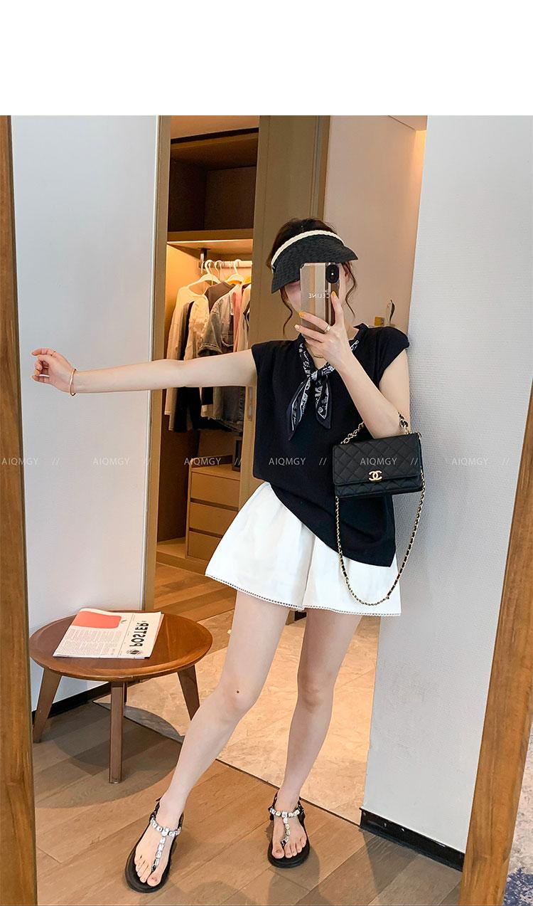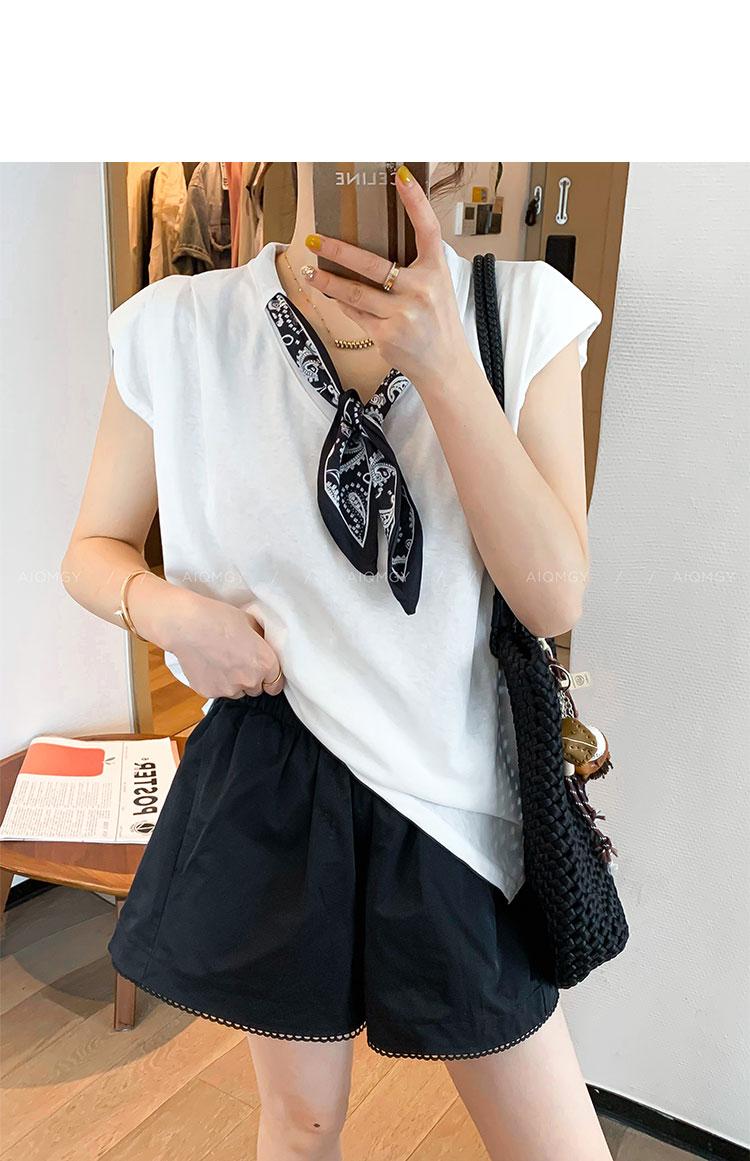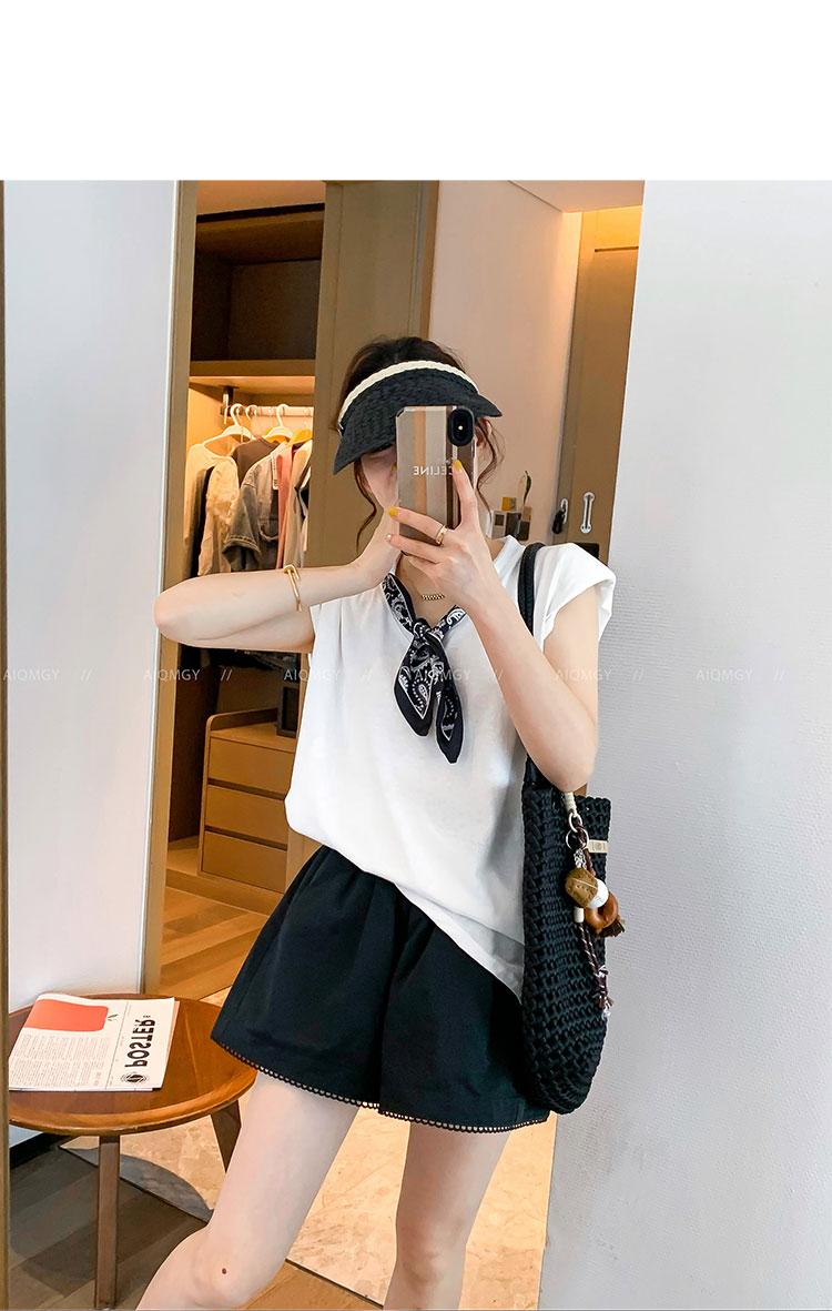 Kk621 Blanco Manga Corta Volante Bufanda de Seda Camiseta para Mujer 2025 Verano Nuevo Look Holgado Adelgazante Color Puro Top