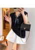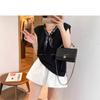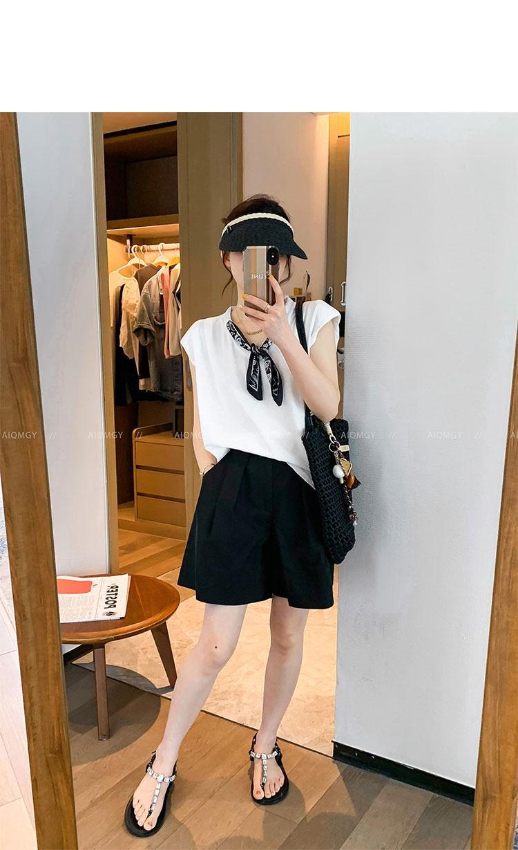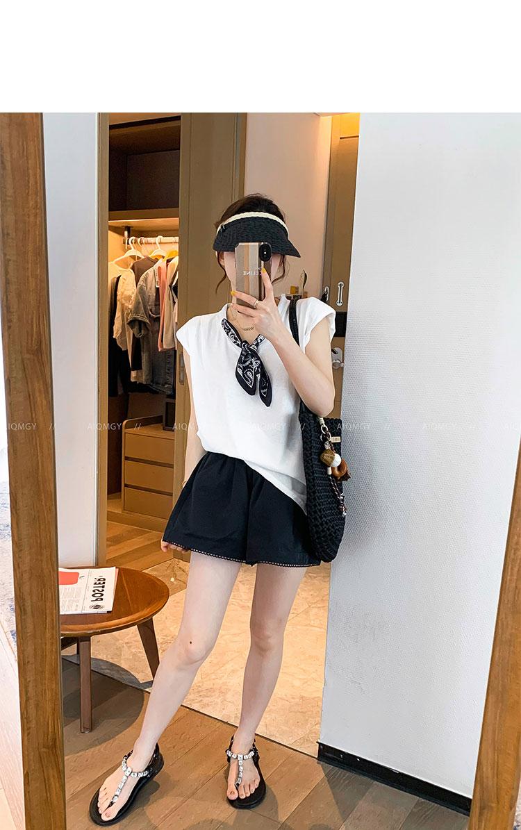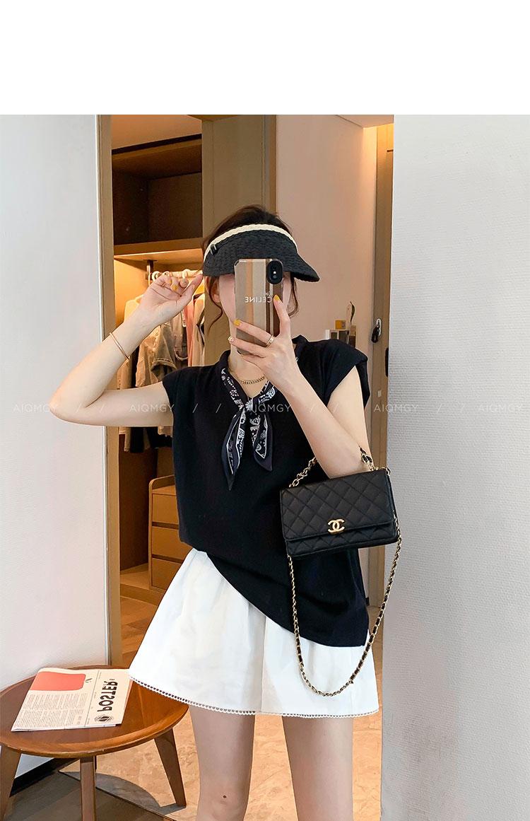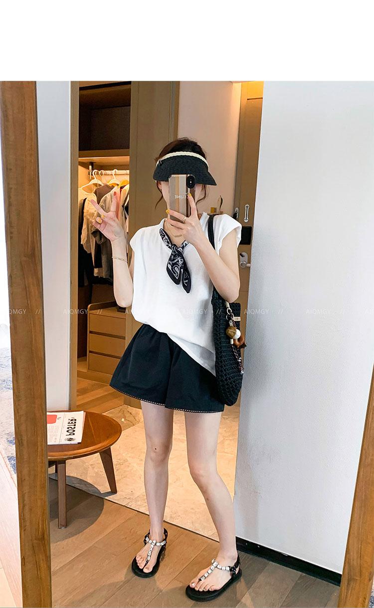 Kk621 Blanco Manga Corta Volante Bufanda de Seda Camiseta para Mujer 2025 Verano Nuevo Look Holgado Adelgazante Color Puro Top