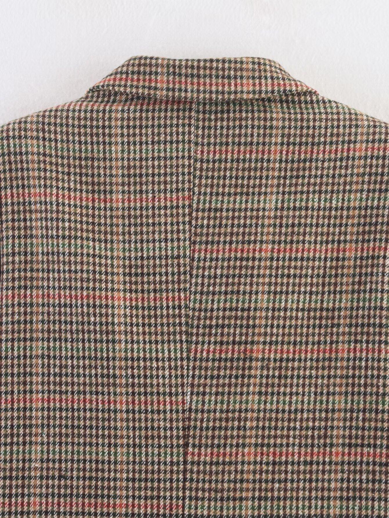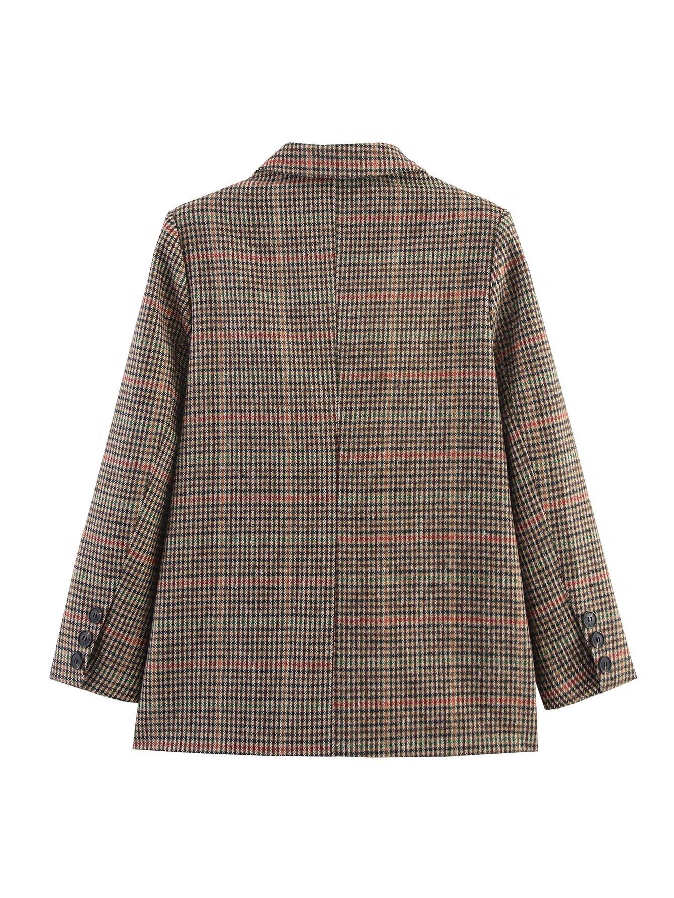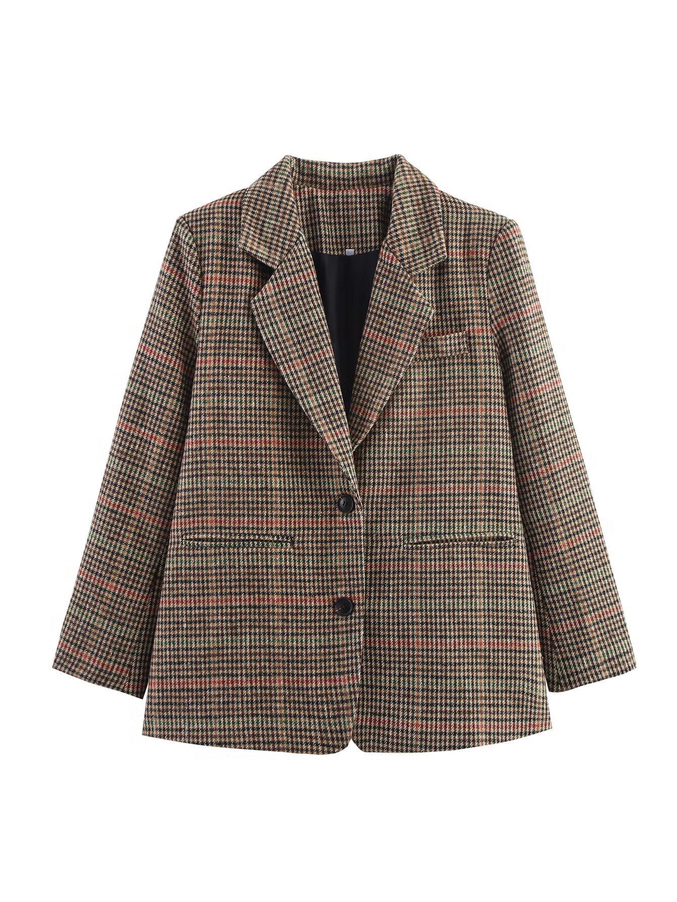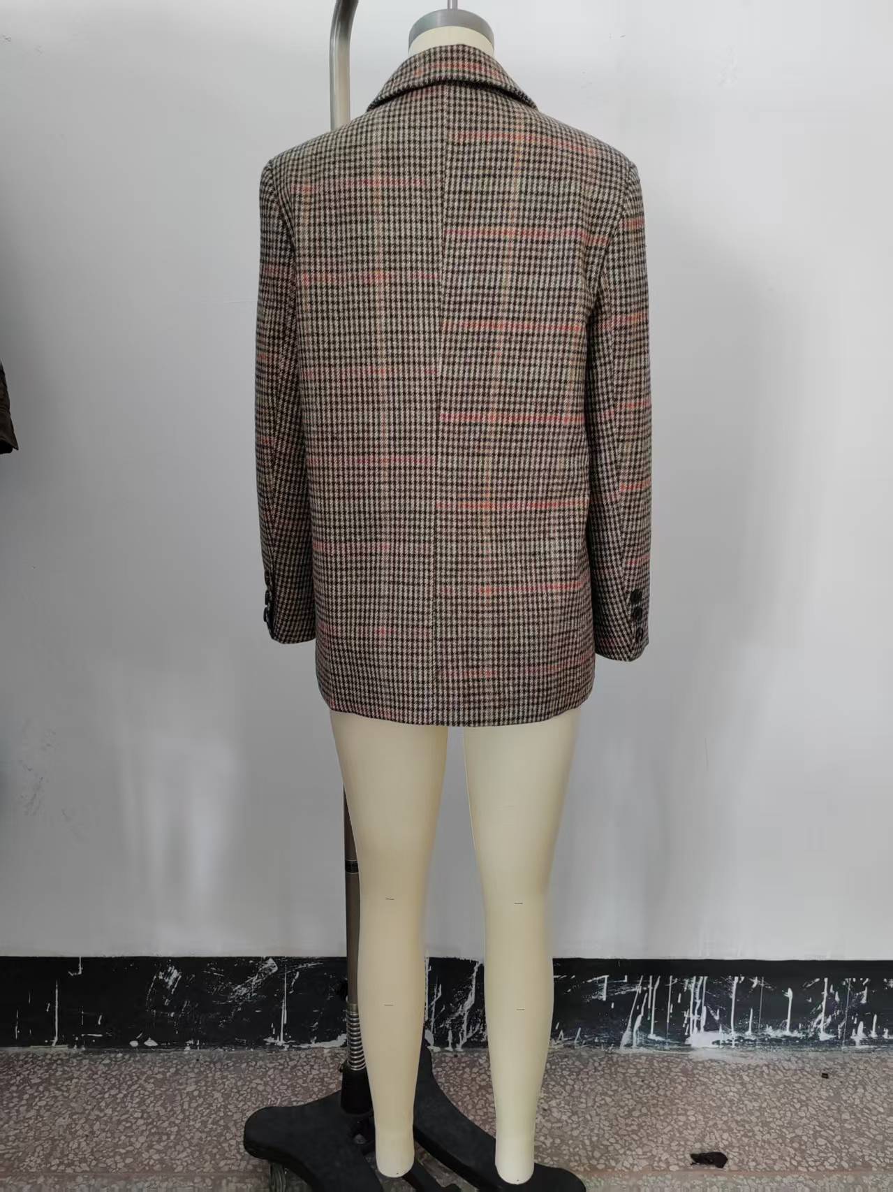 Transfronterizo 2025 Otoño Nueva Moda Temperamento Versátil Casual Suelto Adelgazante Cuadros Lana Casual Chaqueta de Traje