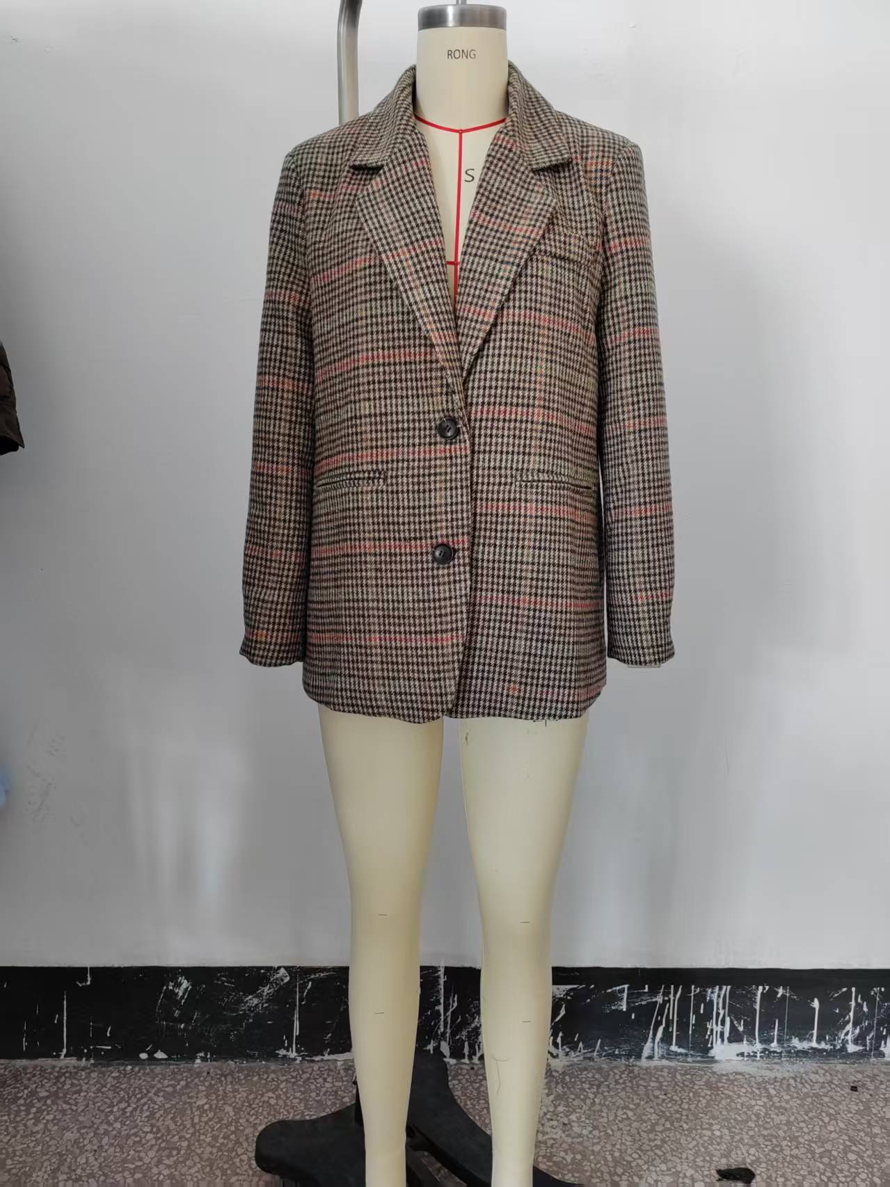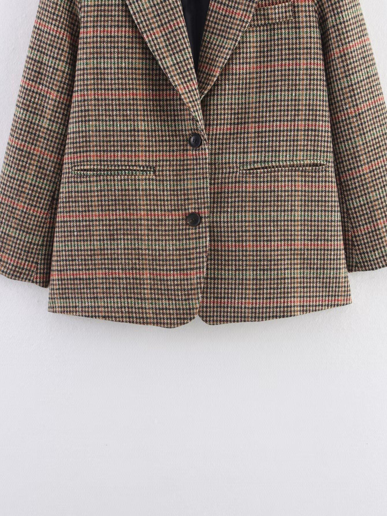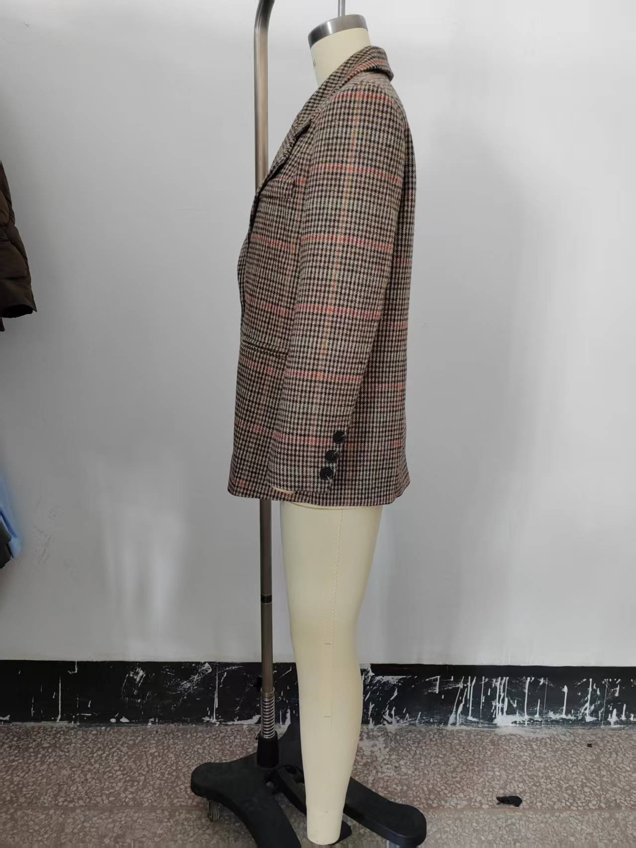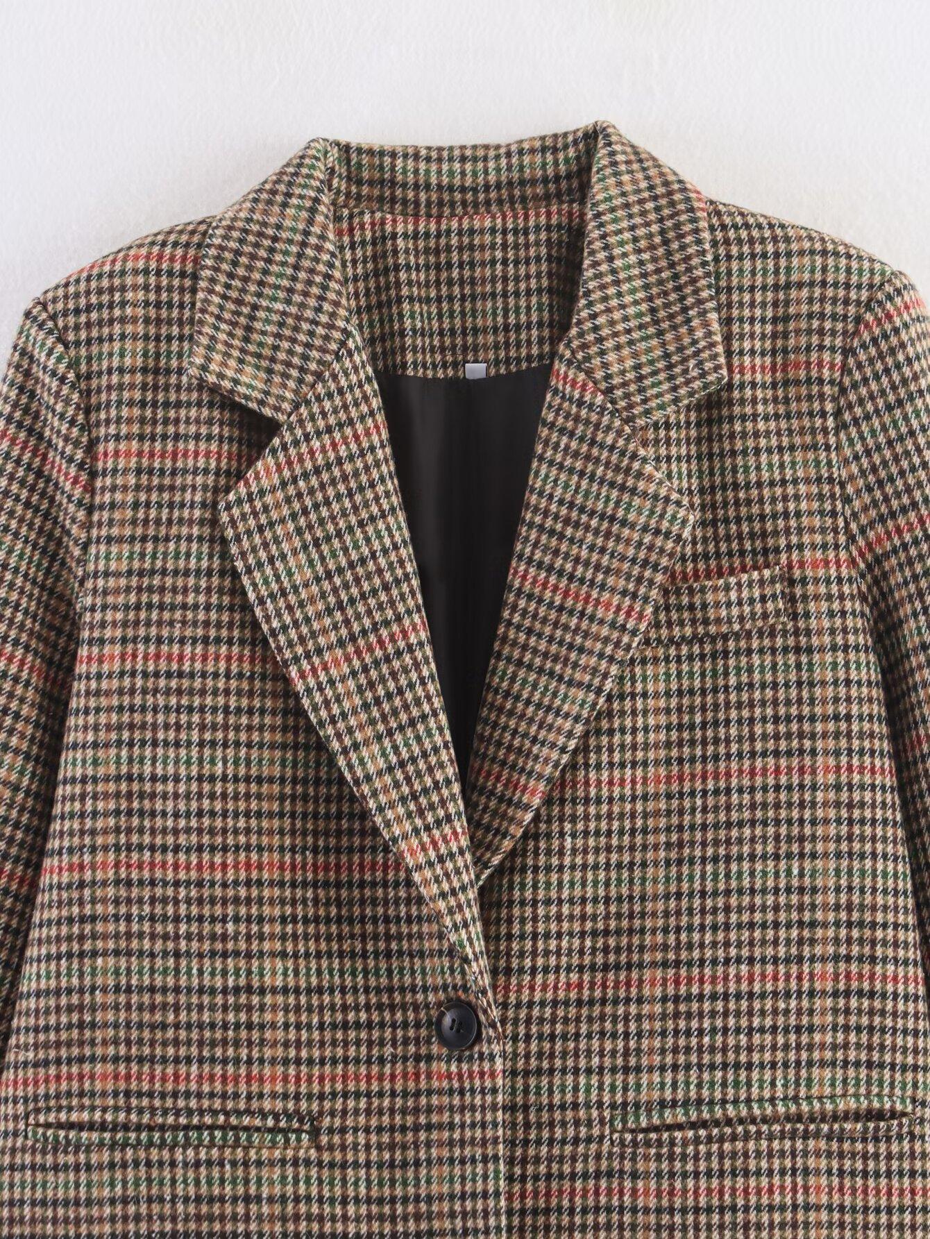 Transfronterizo 2025 Otoño Nueva Moda Temperamento Versátil Casual Suelto Adelgazante Cuadros Lana Casual Chaqueta de Traje