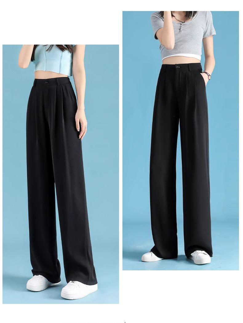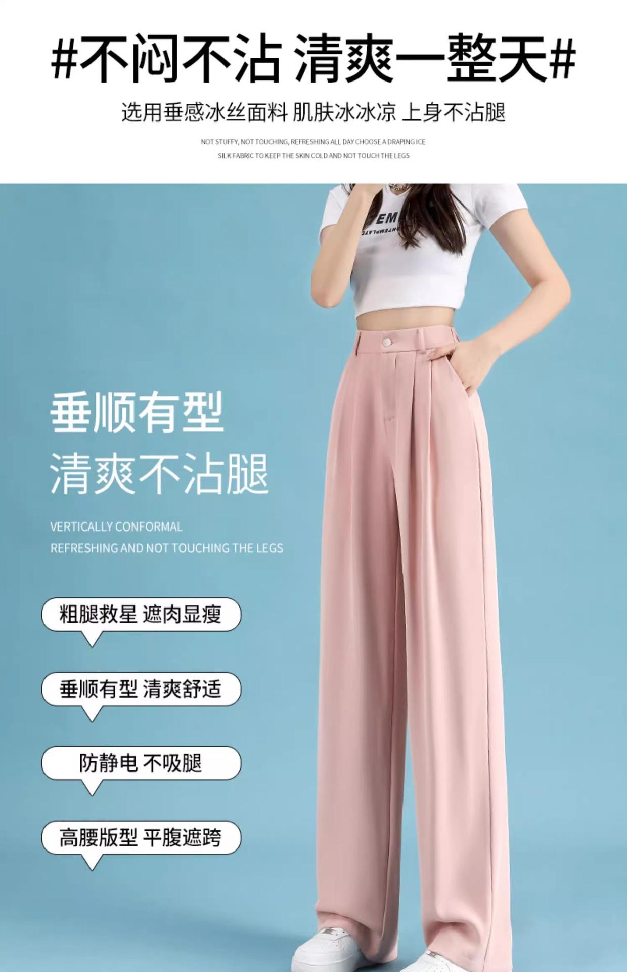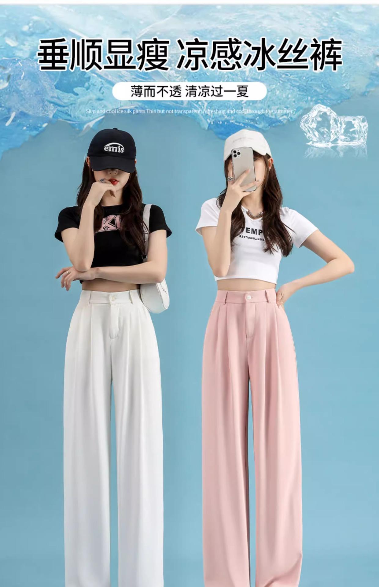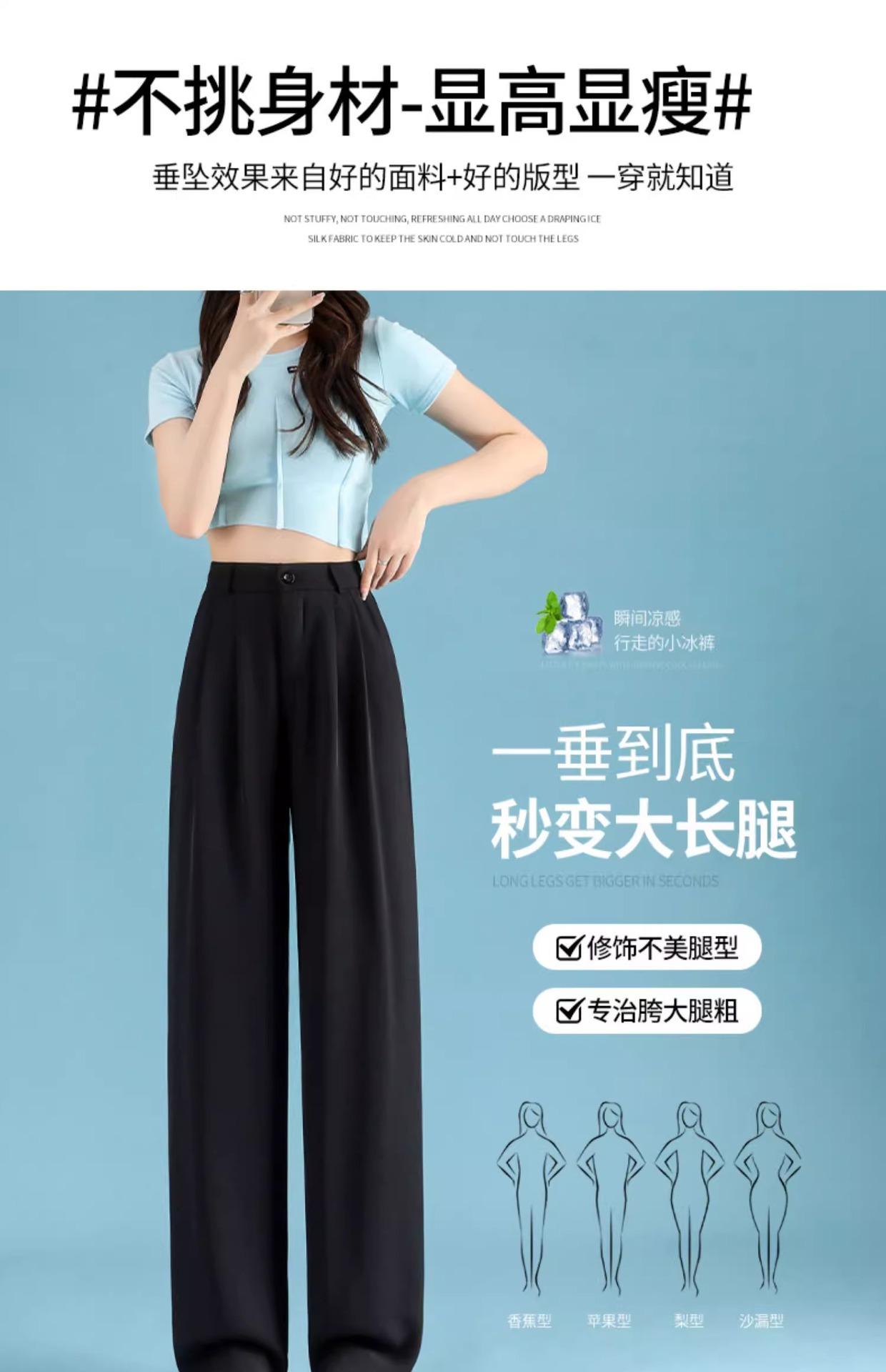 Pantalones de Cintura Alta Pierna Estrecha Ancha para Mujer 2024 Nuevo Verano Protección Solar Dosis Pantalones de Seda Helada Pantalones Rectos Pequeños