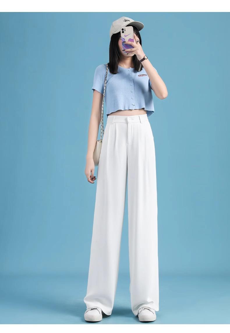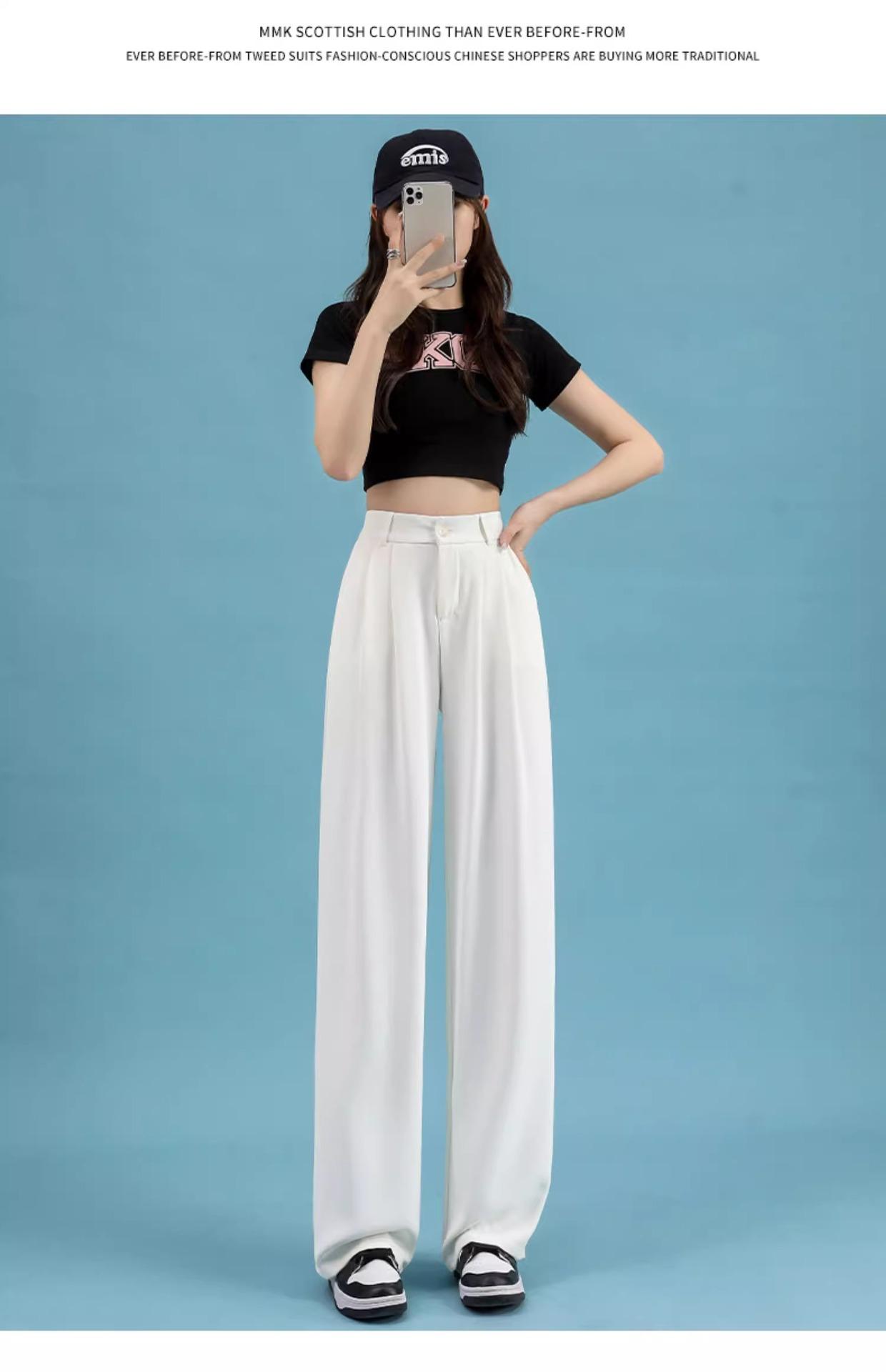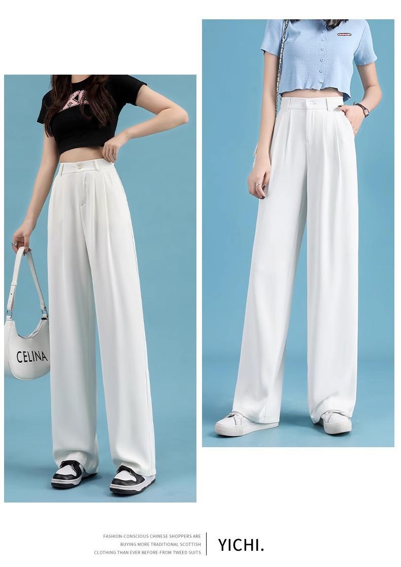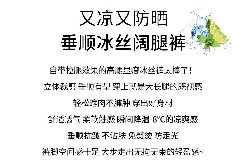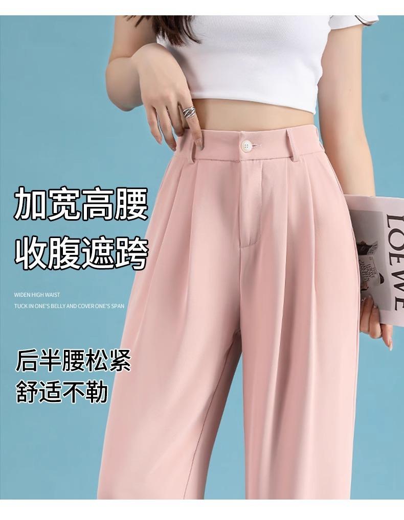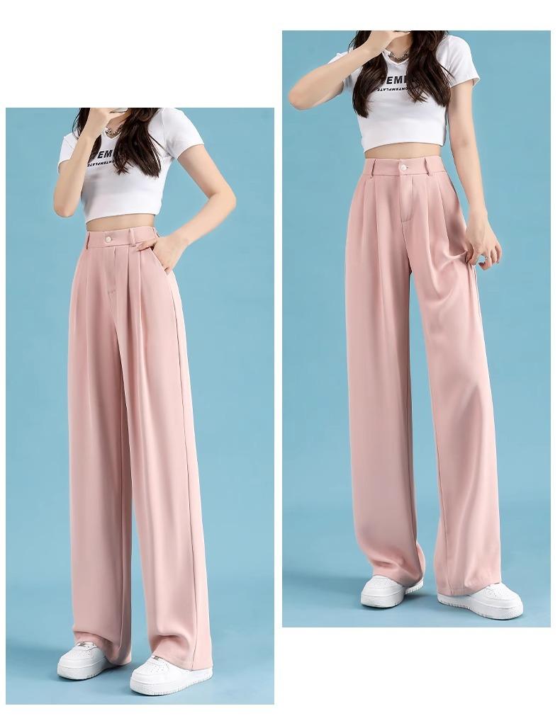 Pantalones de Cintura Alta Pierna Estrecha Ancha para Mujer 2024 Nuevo Verano Protección Solar Dosis Pantalones de Seda Helada Pantalones Rectos Pequeños
