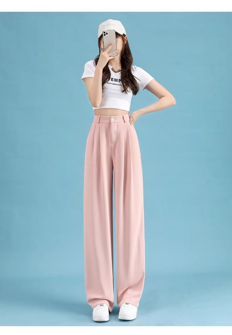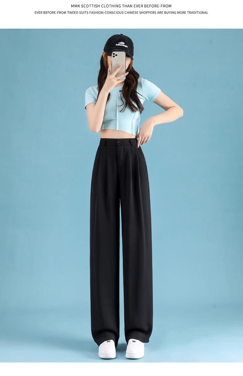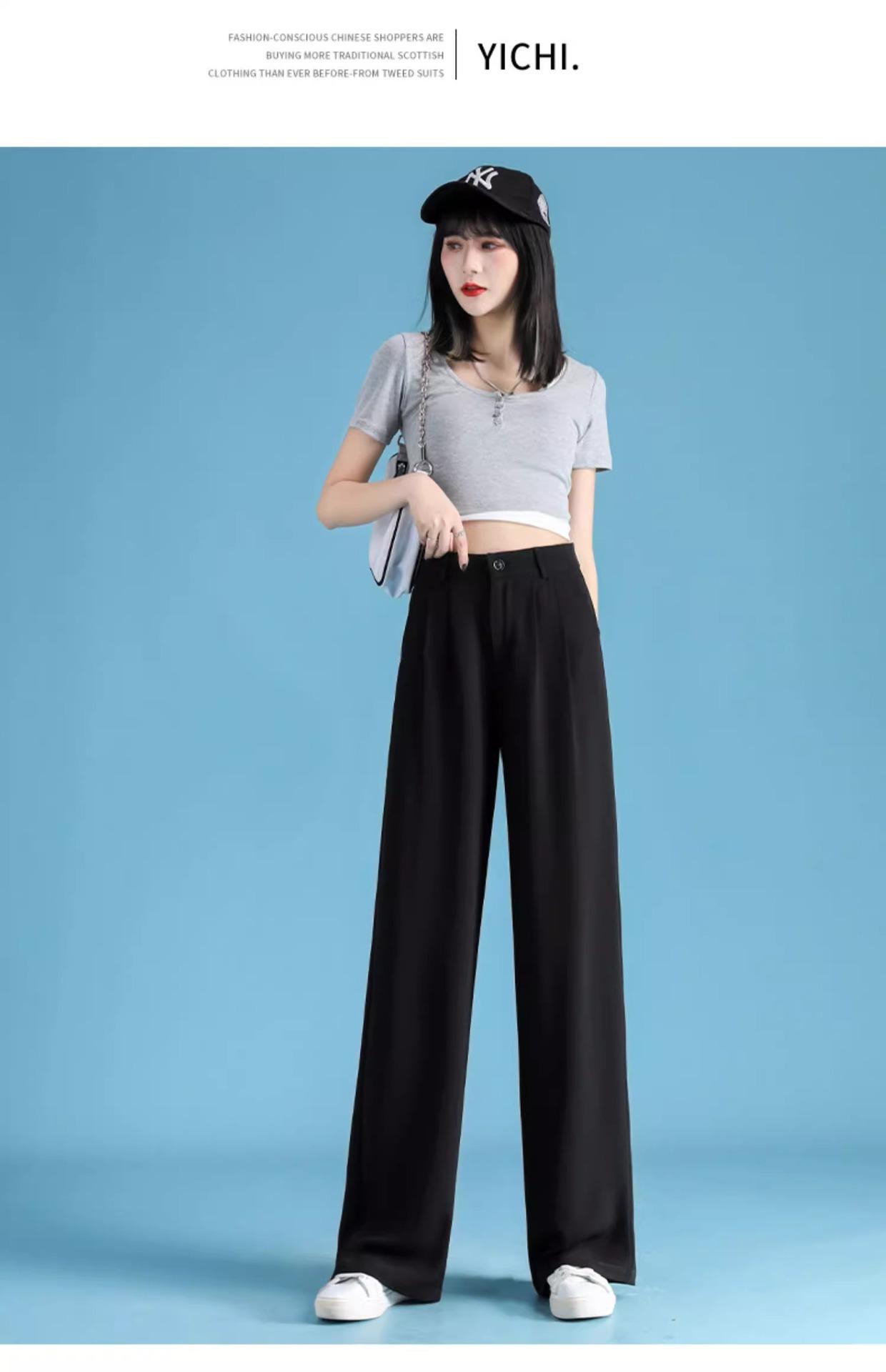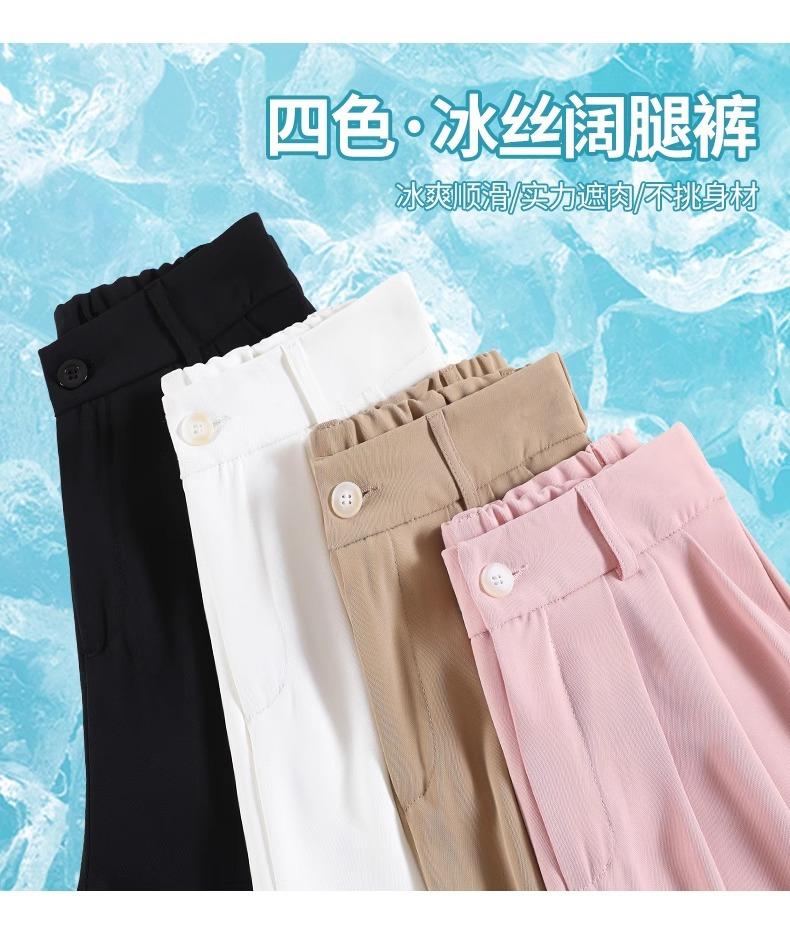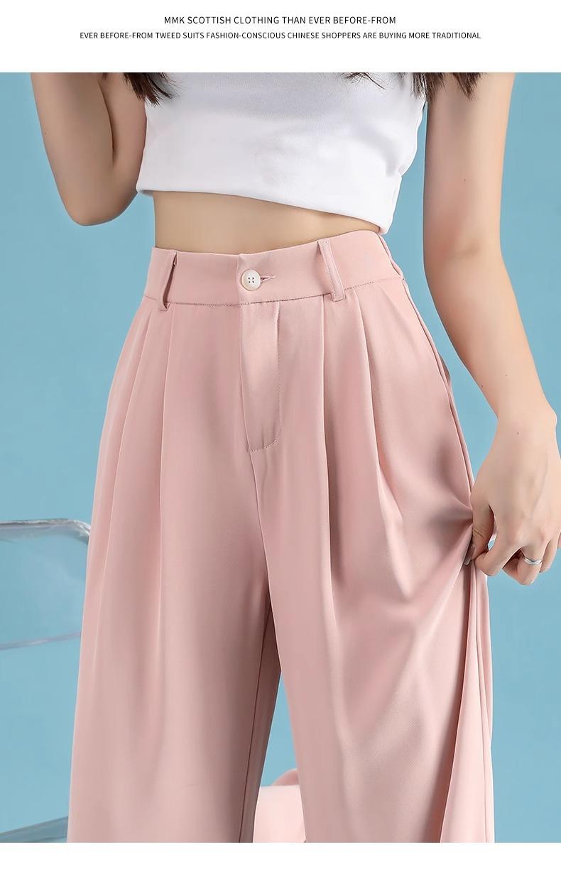 Pantalones de Cintura Alta Pierna Estrecha Ancha para Mujer 2024 Nuevo Verano Protección Solar Dosis Pantalones de Seda Helada Pantalones Rectos Pequeños