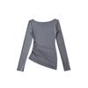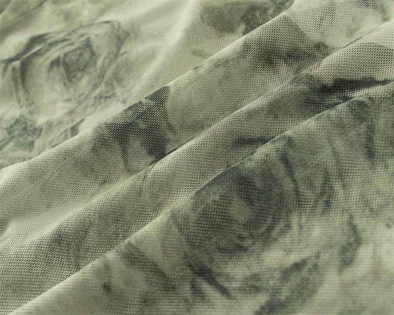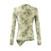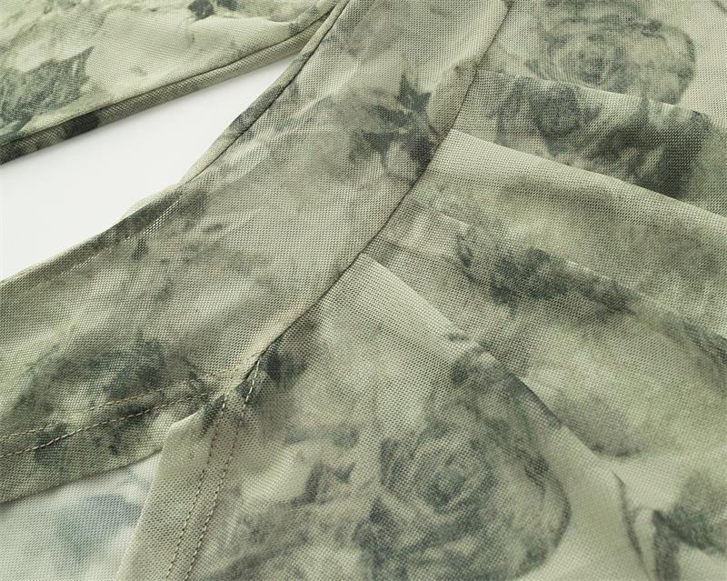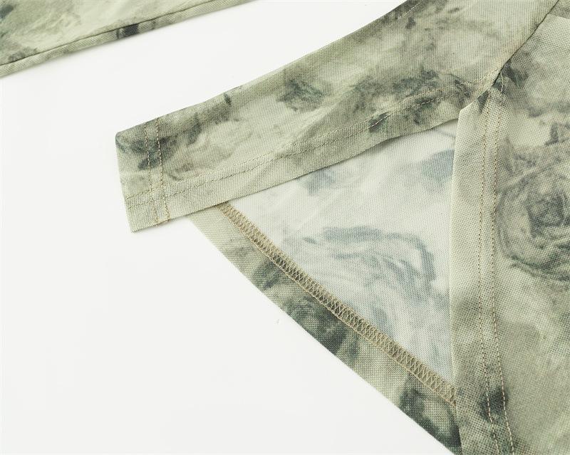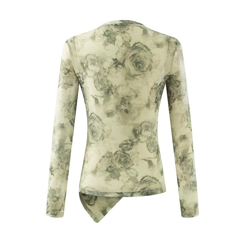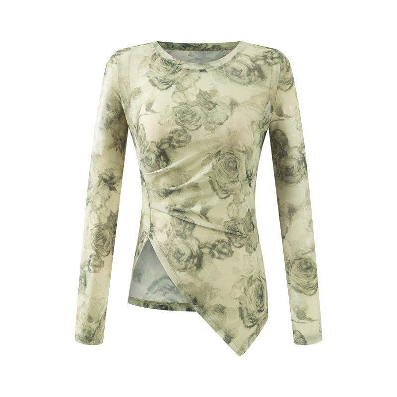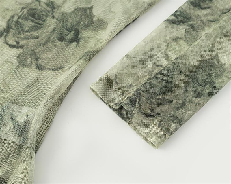 Playera de manga larga de malla estampada con sentido del diseño puro y sexy, plisada, con abertura irregular, otoño, delgada, top de chica hot para mujer