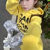 Sudadera con Capucha Holgada Gris para Mujer 2025 Nueva Chaqueta Hoodie de Manga Larga Sudadera Otoñal Americana Lazy Chic