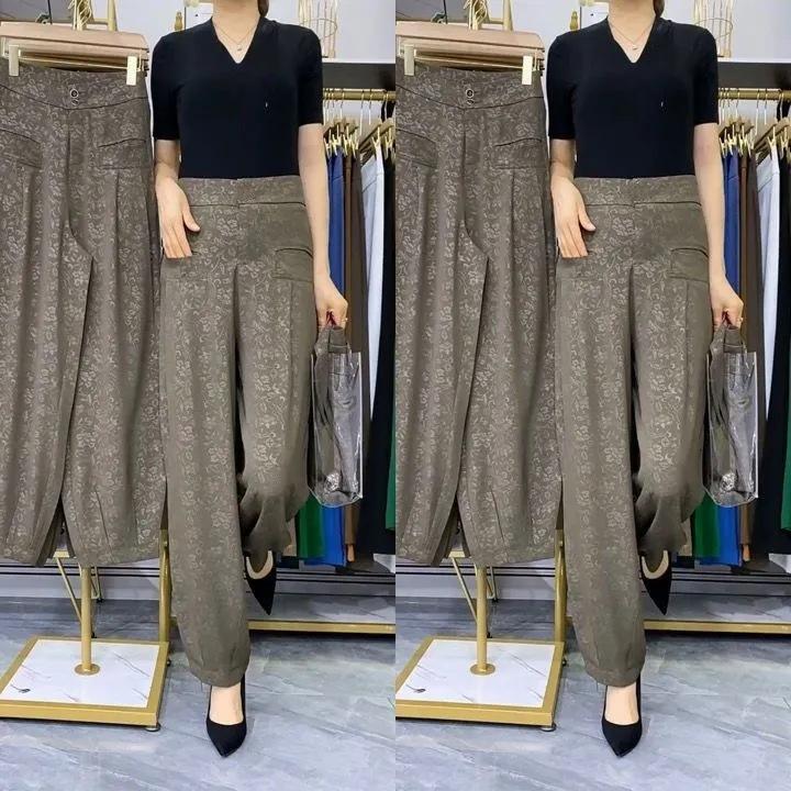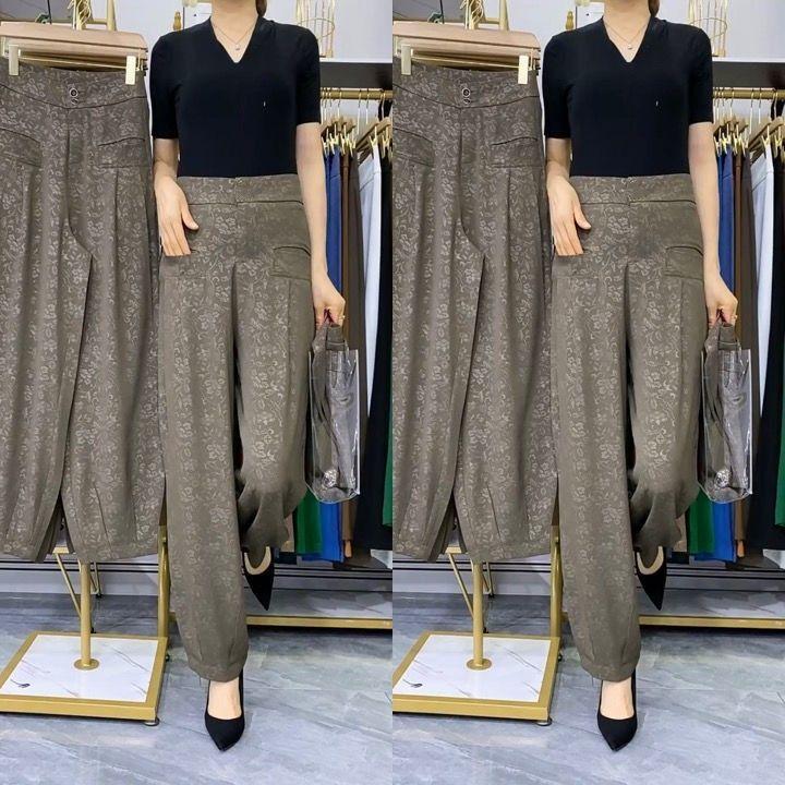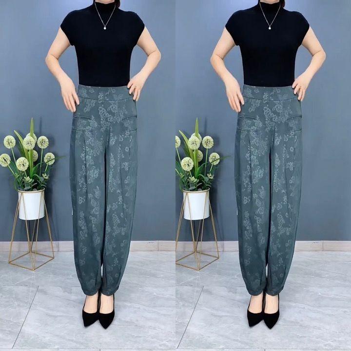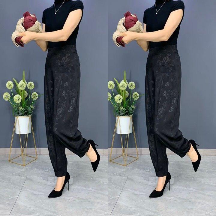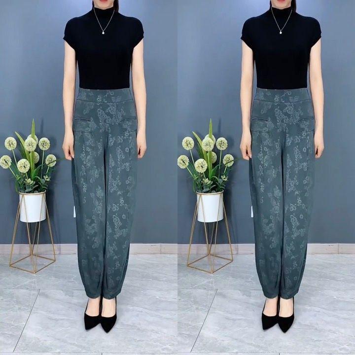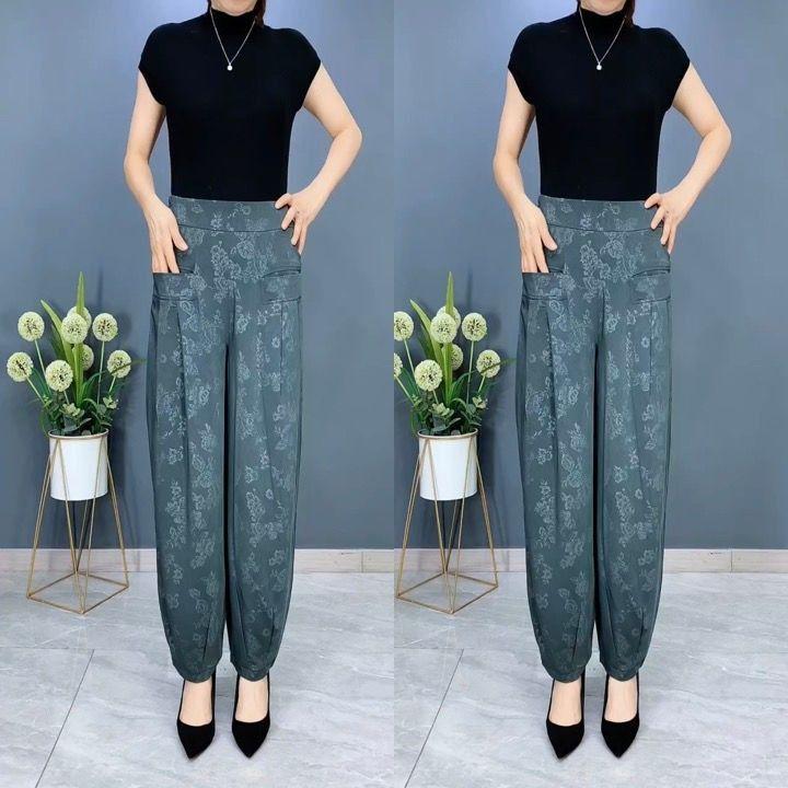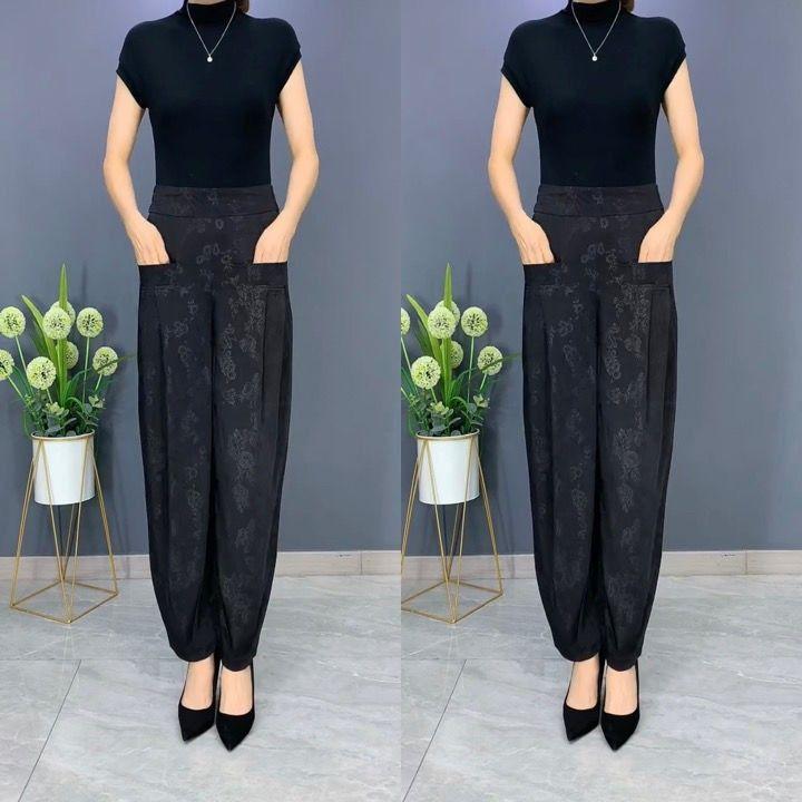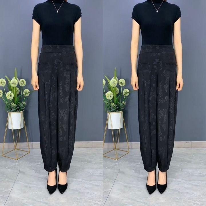 Pantalones Linterna de Seda de Hielo Fino de Verano 2025 para Mujer Jacquard Harem Pantalones Nuevos de Pierna Ancha Sueltos Adelgazantes Drapeados Transpirables