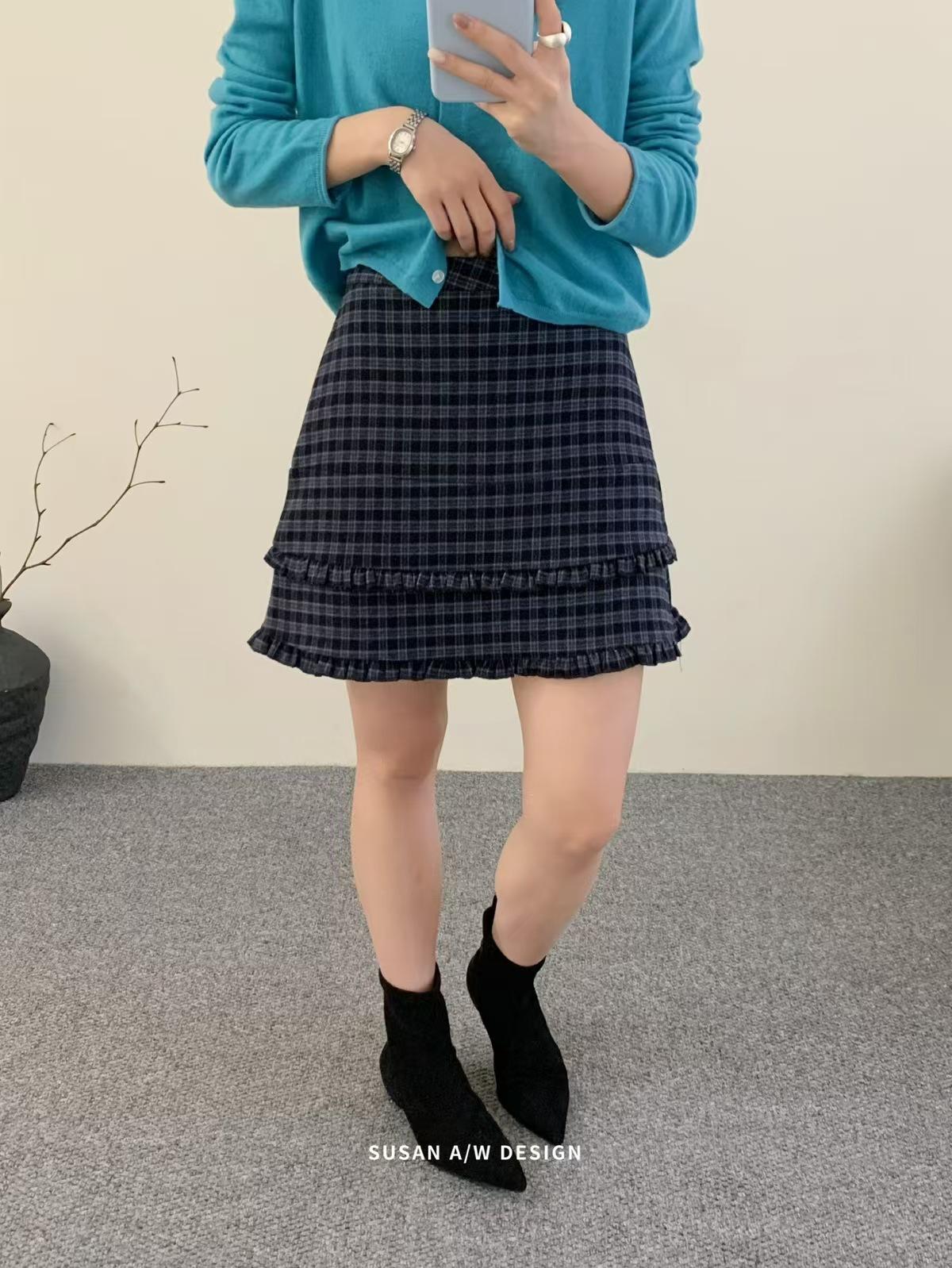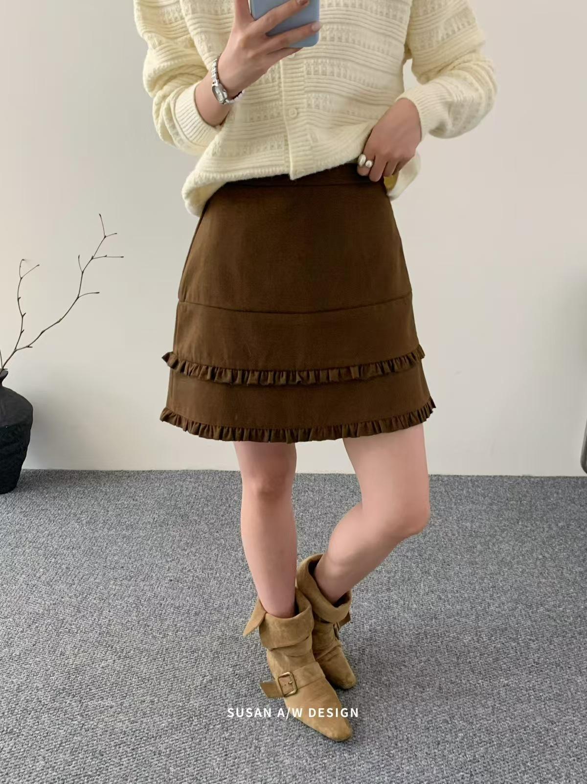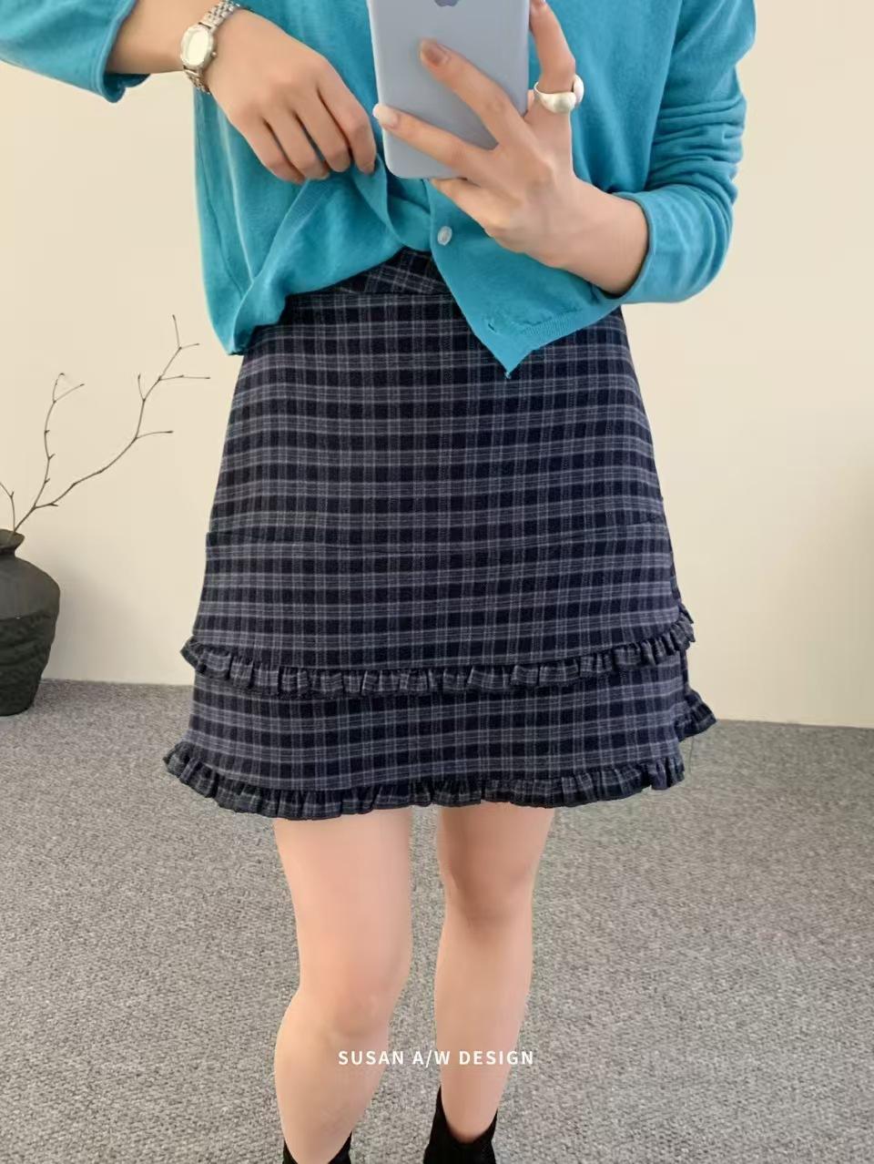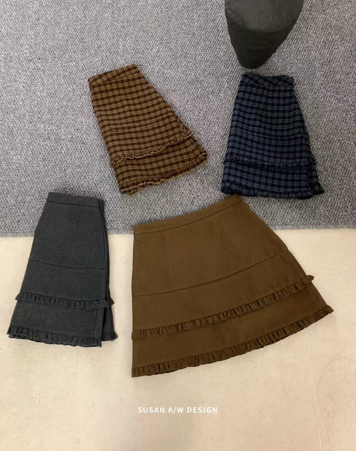 Susan 2025 Otoño Nuevo Dulce Volante Ribete Patchwork Cintura Alta Adelgazante Falda Mini A-Line Mujer 27730