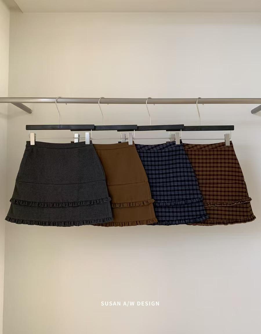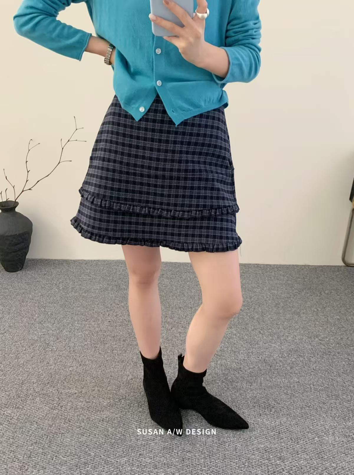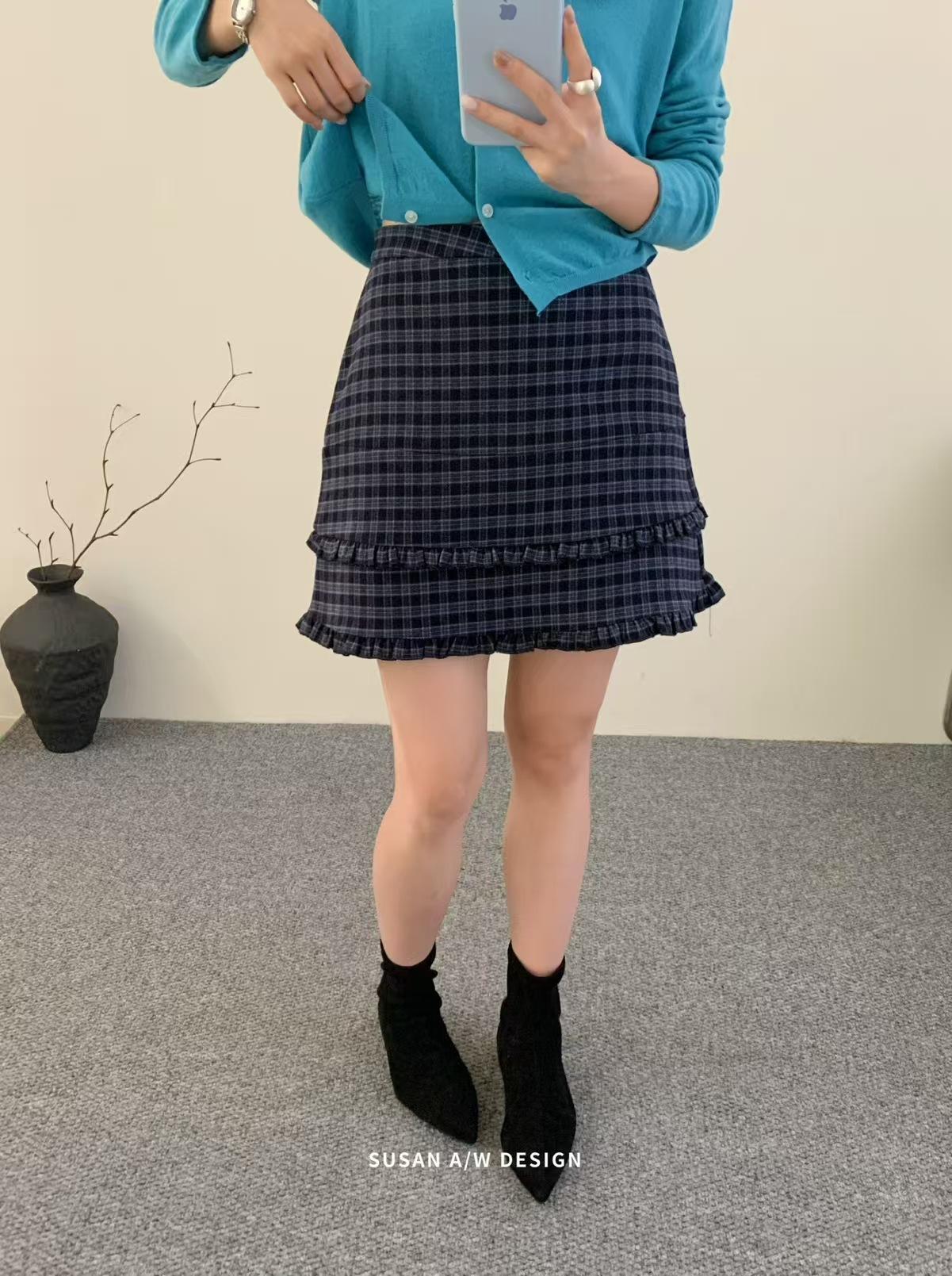 Susan 2025 Otoño Nuevo Dulce Volante Ribete Patchwork Cintura Alta Adelgazante Falda Mini A-Line Mujer 27730