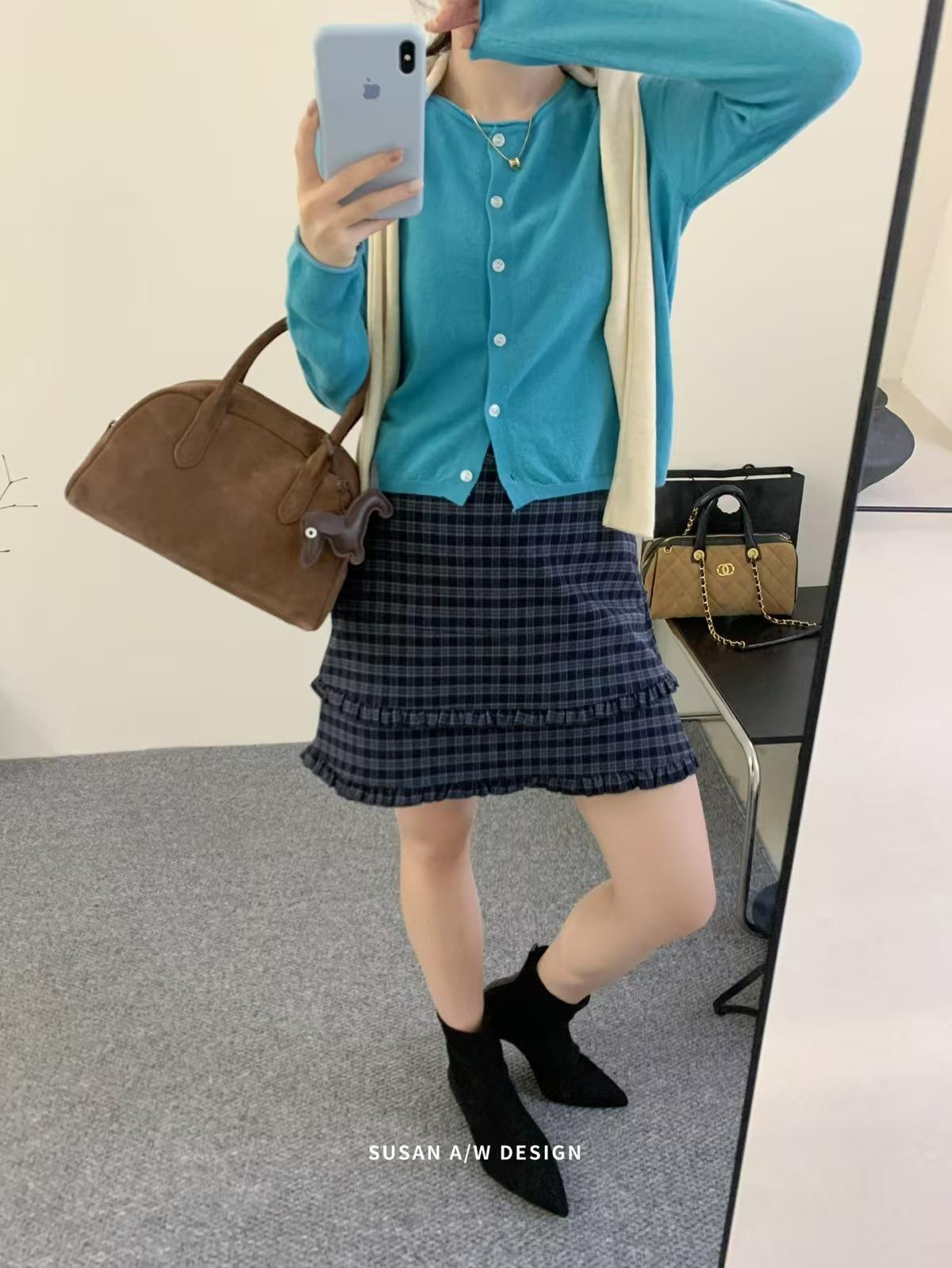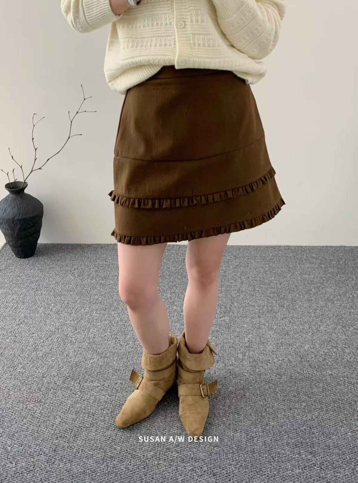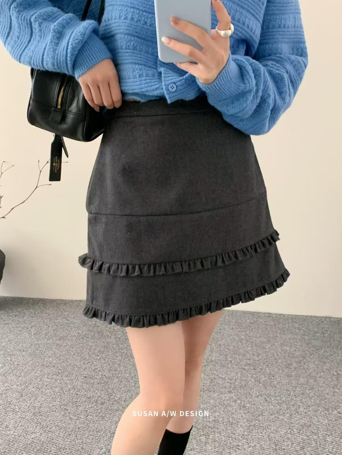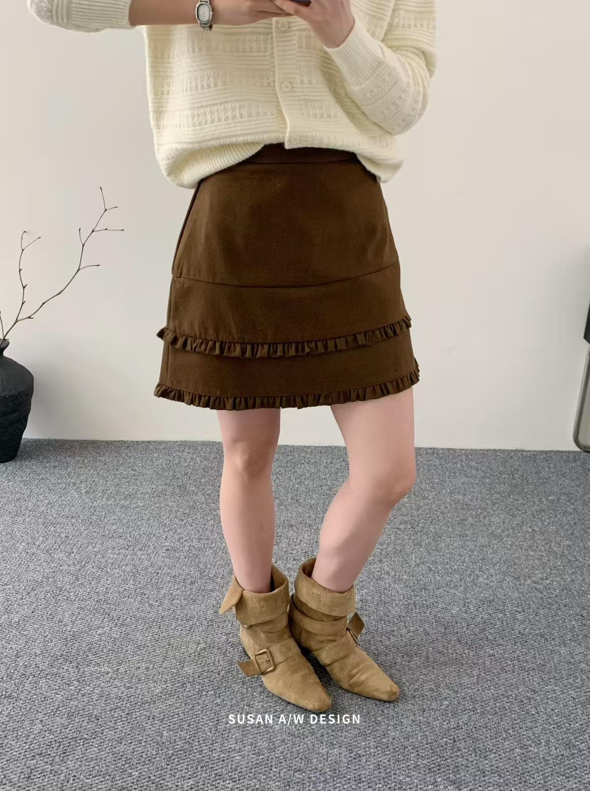 Susan 2025 Otoño Nuevo Dulce Volante Ribete Patchwork Cintura Alta Adelgazante Falda Mini A-Line Mujer 27730