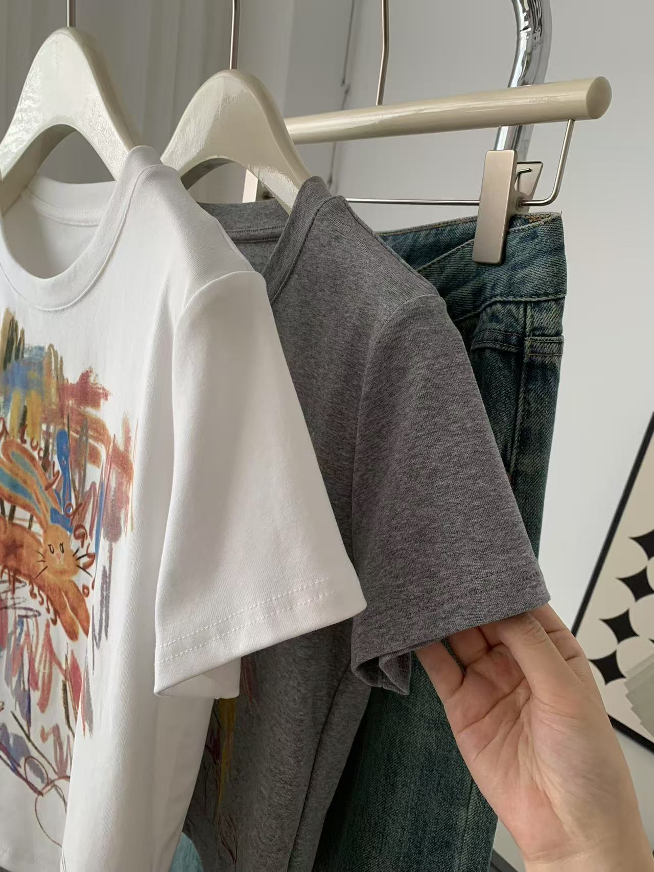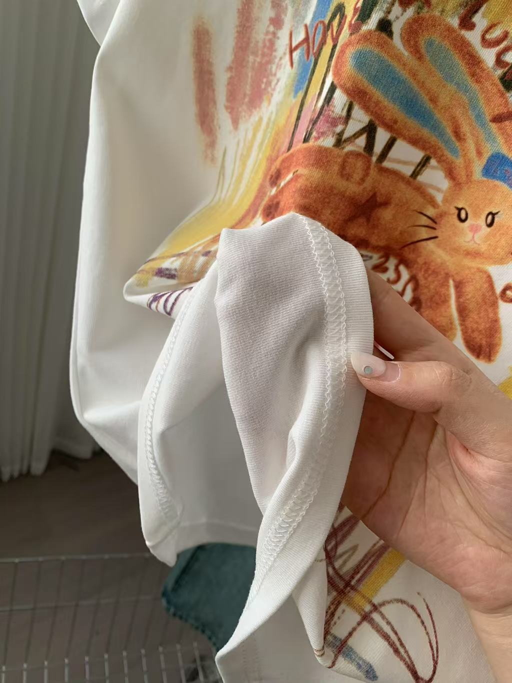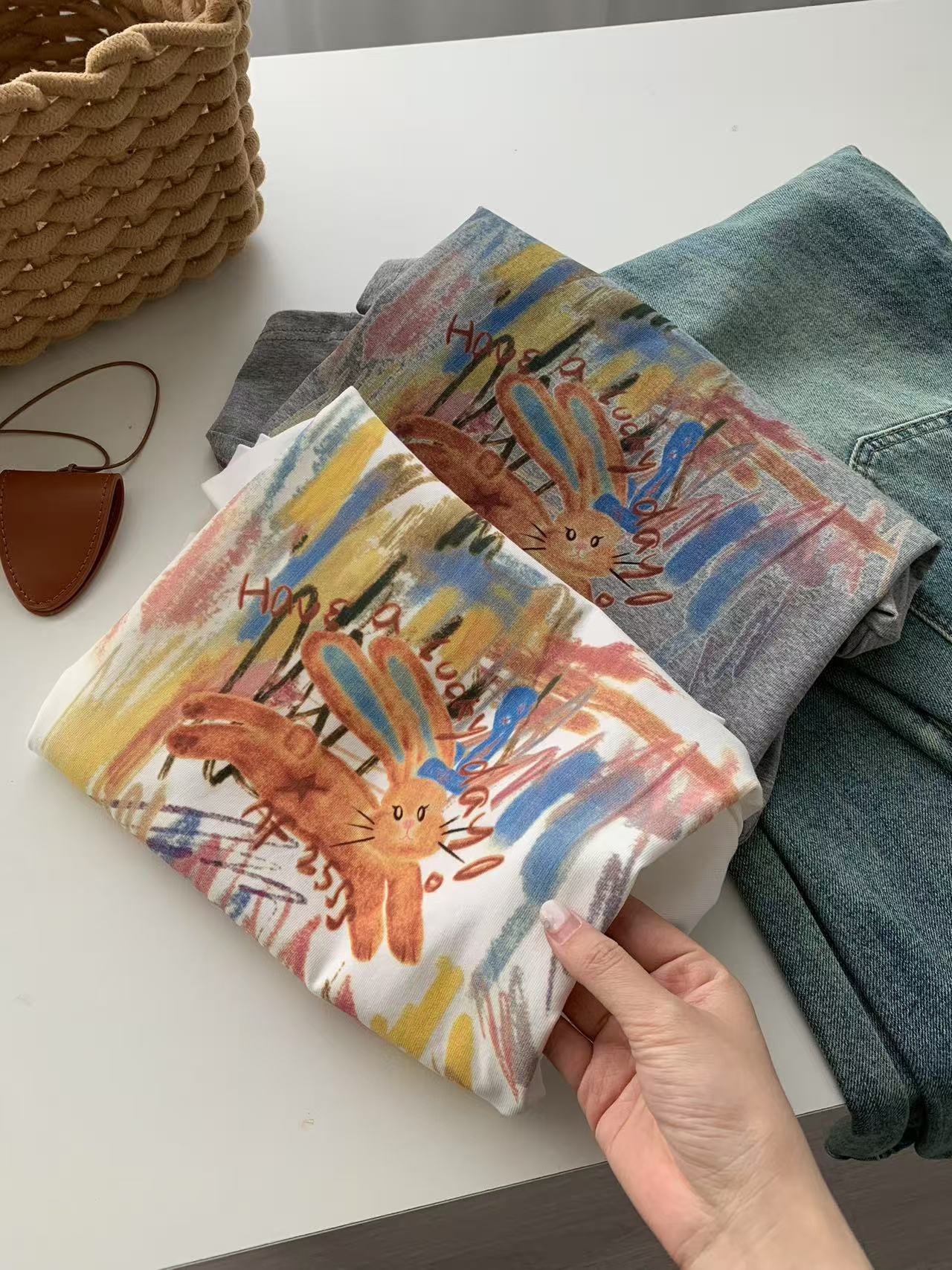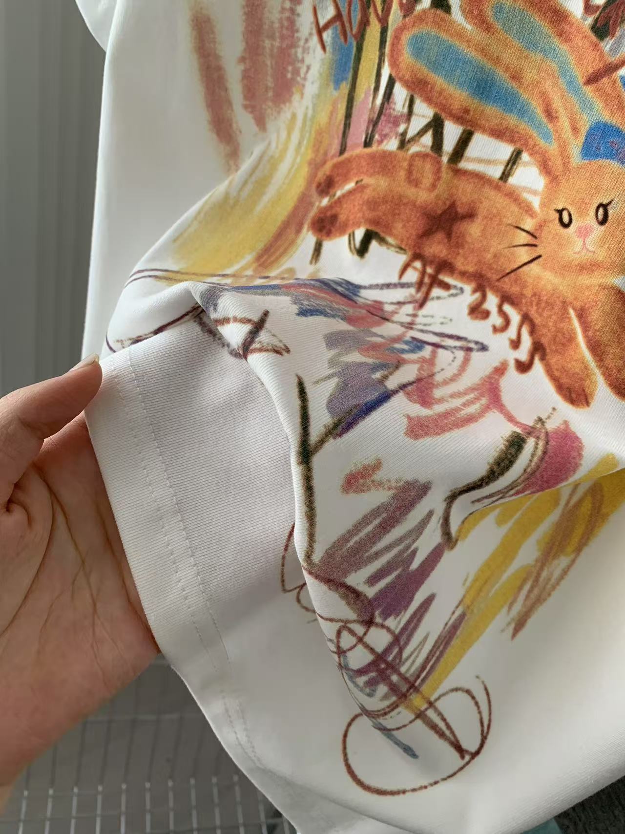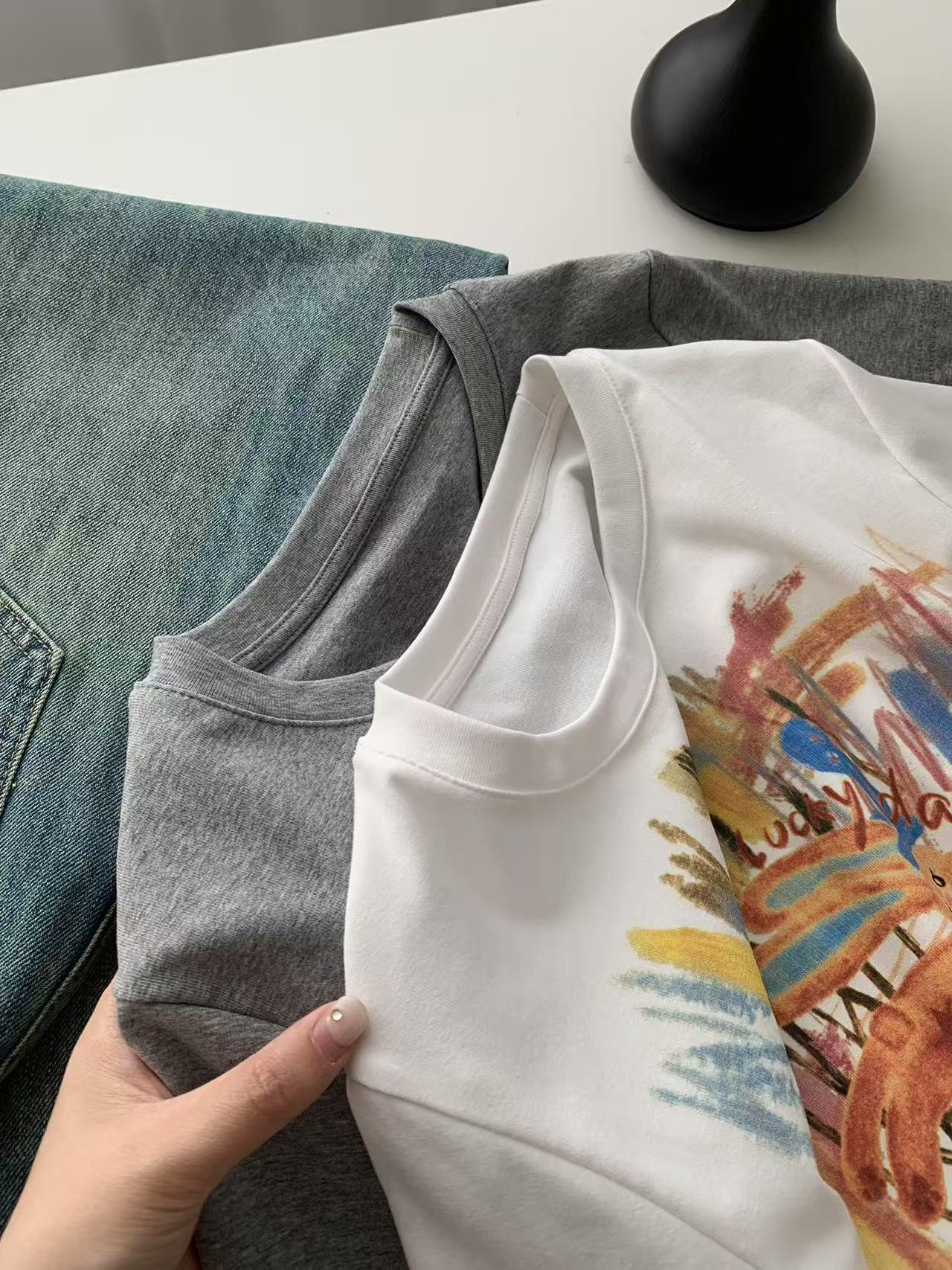 Camiseta de Manga Corta con Estampado de Tinta Blanca de Dibujos Animados Graffiti de Color para Mujer, Verano, Sentido del Diseño, Moda, Estilo Occidental, Top de Hombro Delgado