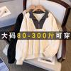 Talla Grande 2-300 Jin Gordo MM Sentido del Diseño Nicho Retro Bloque de Color Patchwork Sudadera de Mujer Primavera y Otoño Suelta Versátil