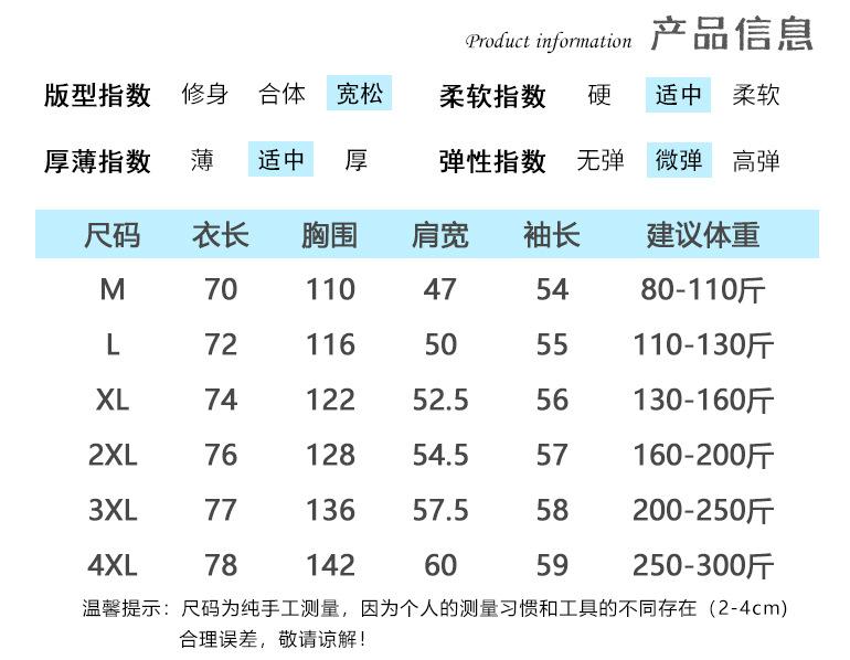 M, L, XL, 2XL, 3XL, 4XL