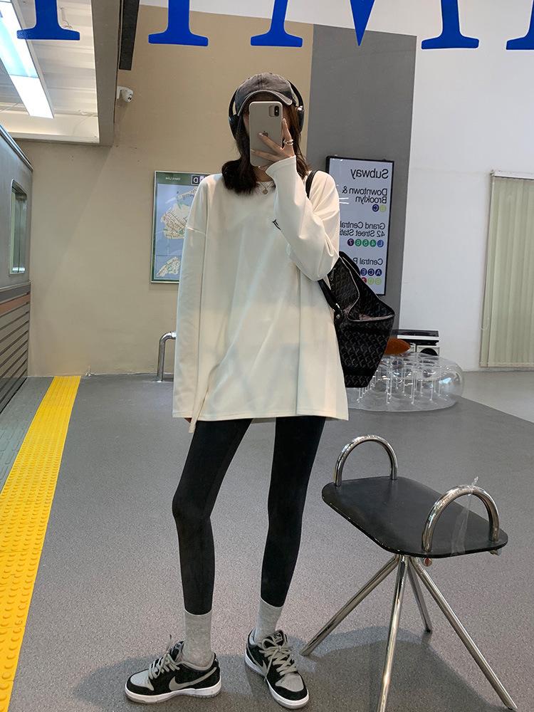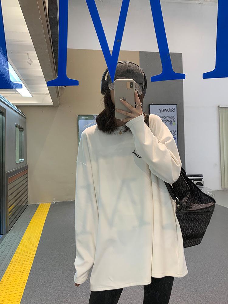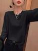 De Velvet Capa Base para Mujer Otoño Invierno 2025 Nuevo Suelto Largo Medio Cubre Cadera Camiseta de Manga Larga Top Casual Simple