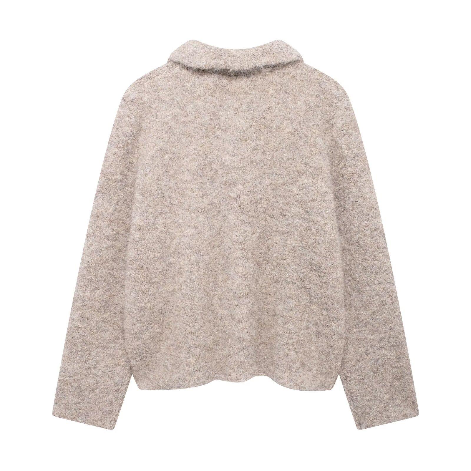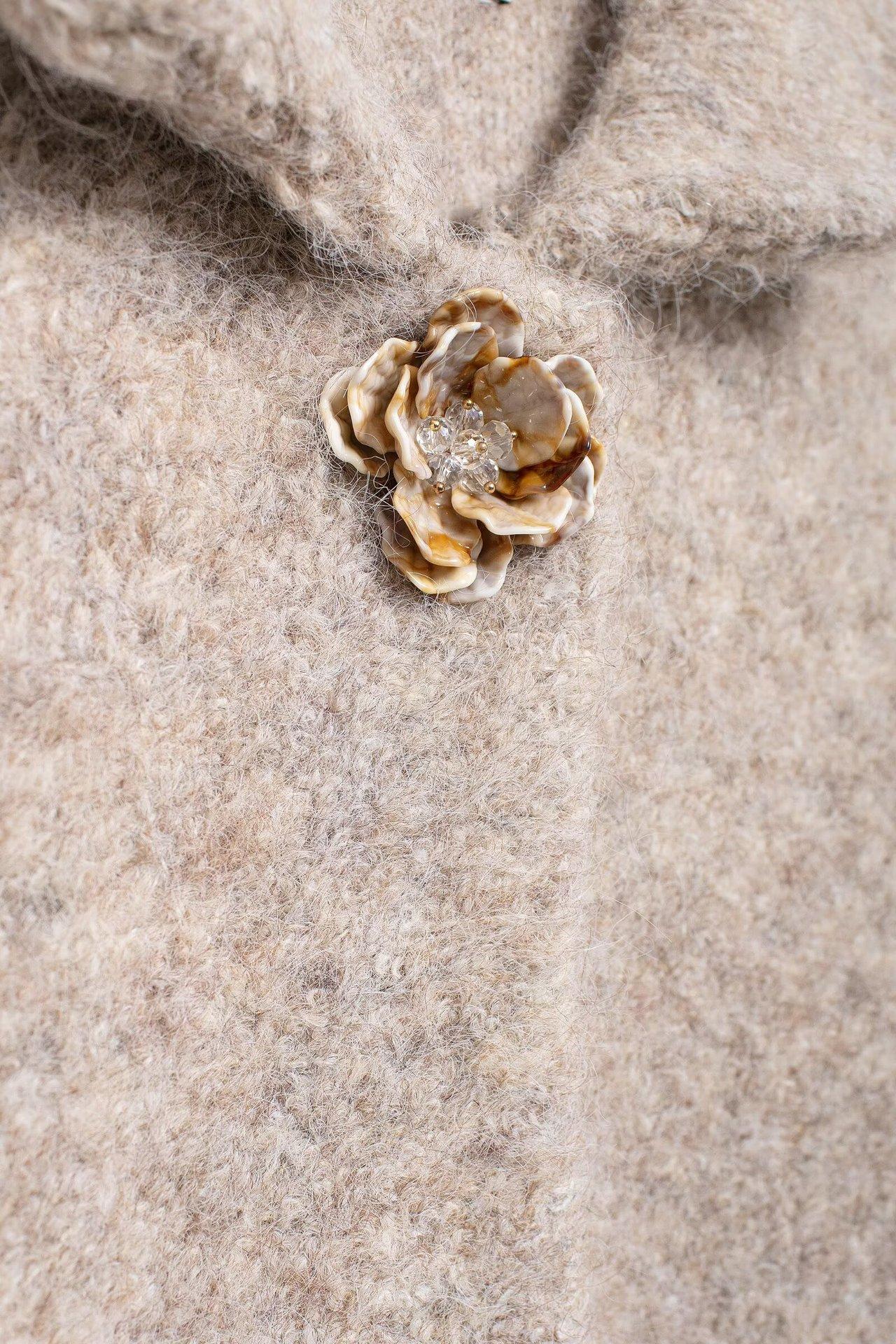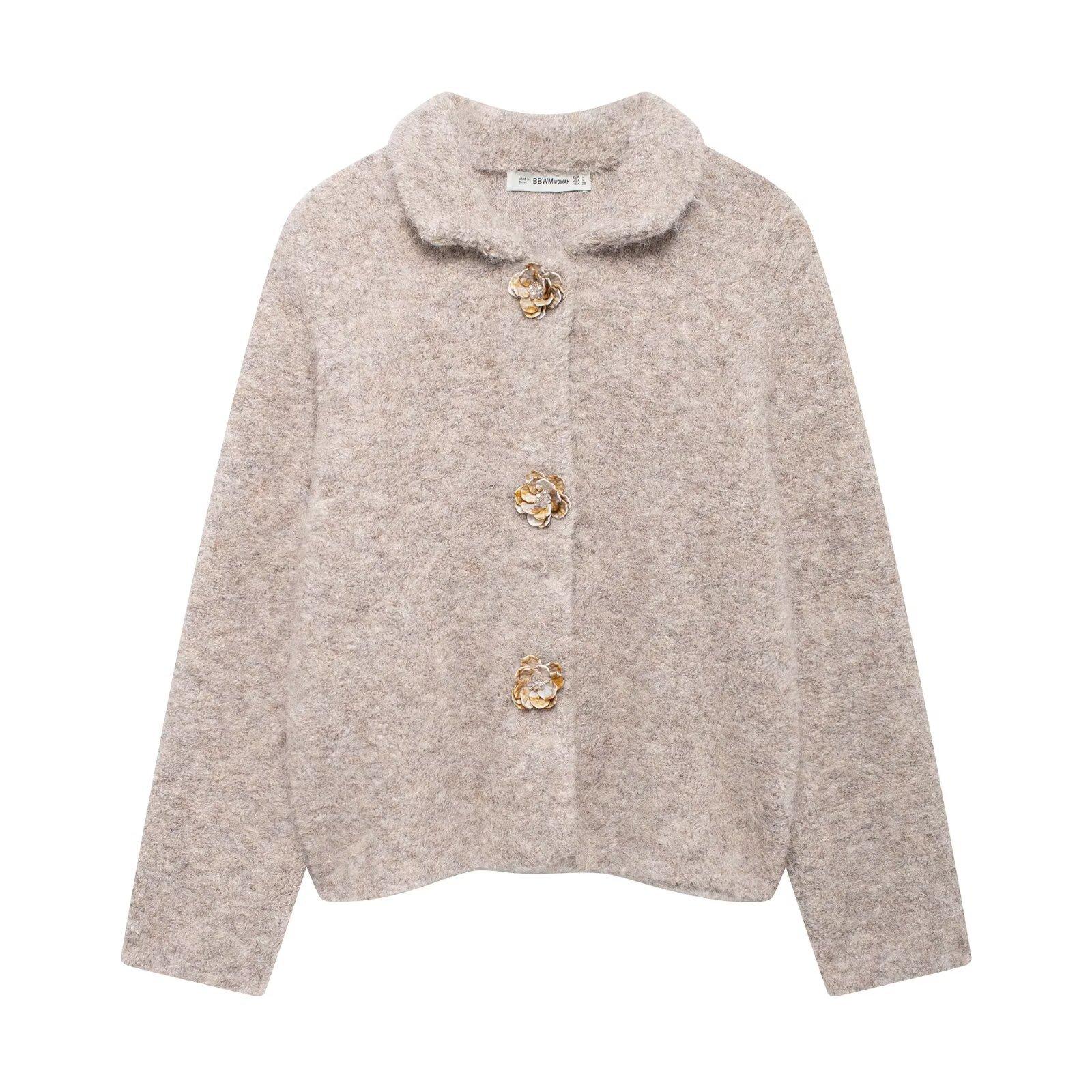 Ropa de mujer de comercio exterior transfronterizo 2025 otoño europeo y americano solapa manga larga botón de flor decorativo chaqueta de punto abrigo mujer A36692