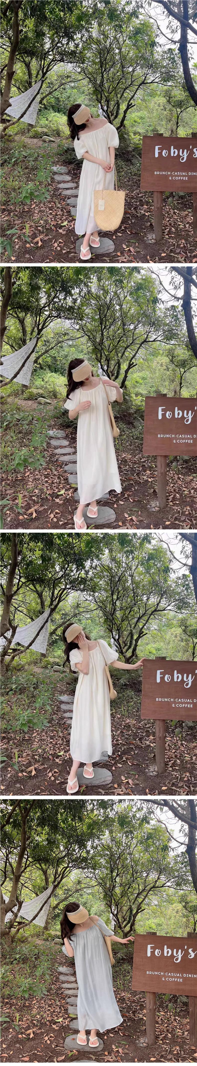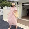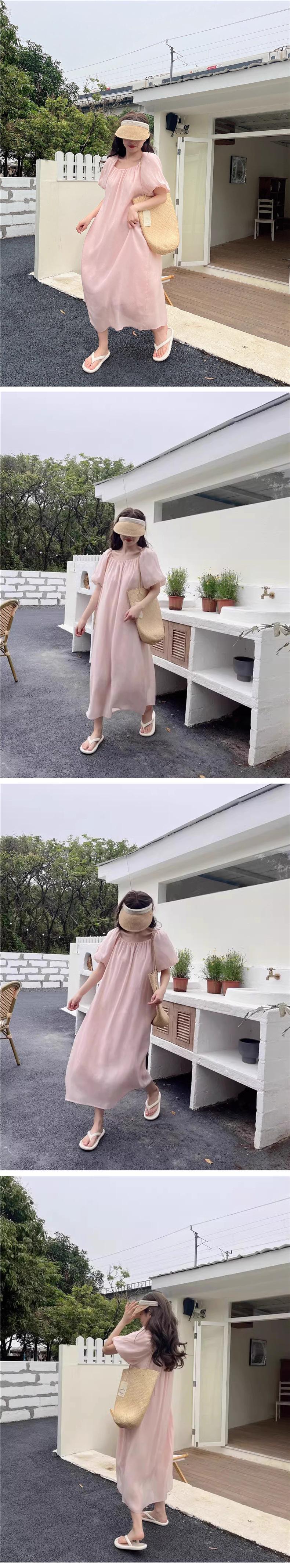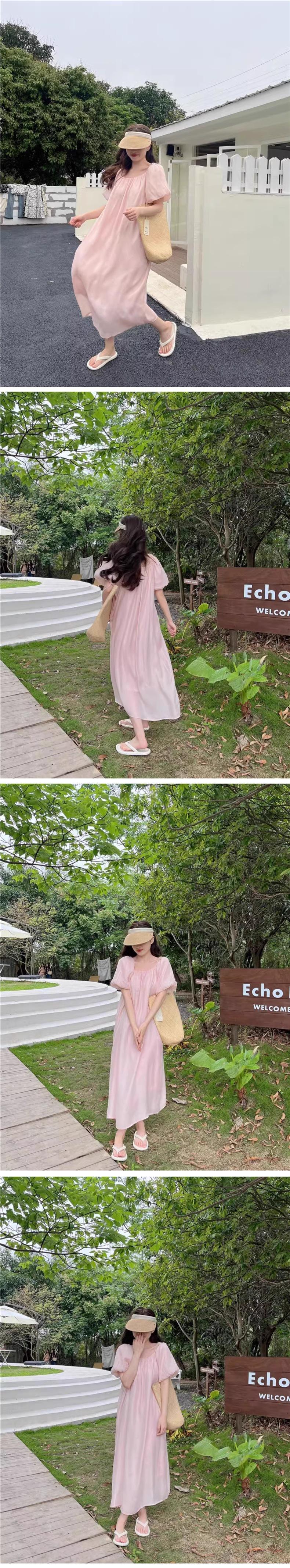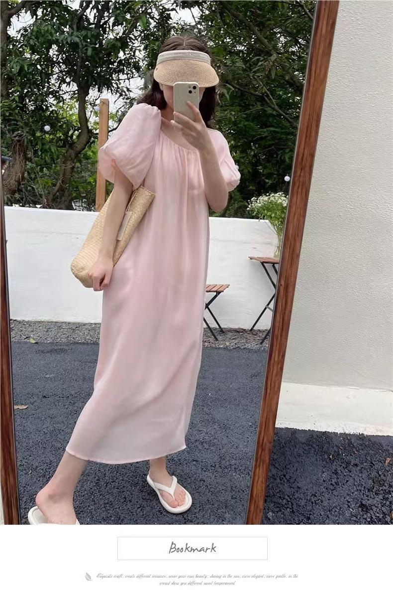 Ropa de primavera y verano dulce de alta gama, vestido francés tencel de color sólido, nuevo de verano, vestido de chifón suelto de manga abullonada para mujer