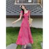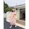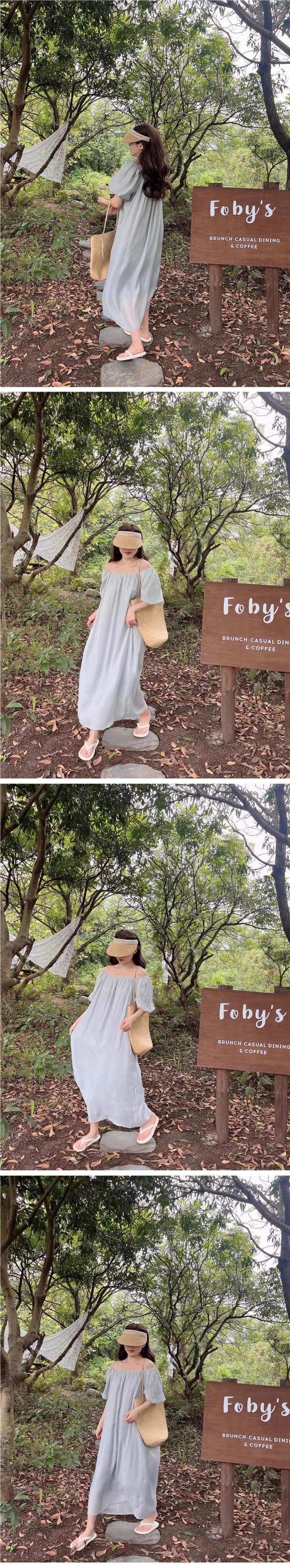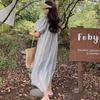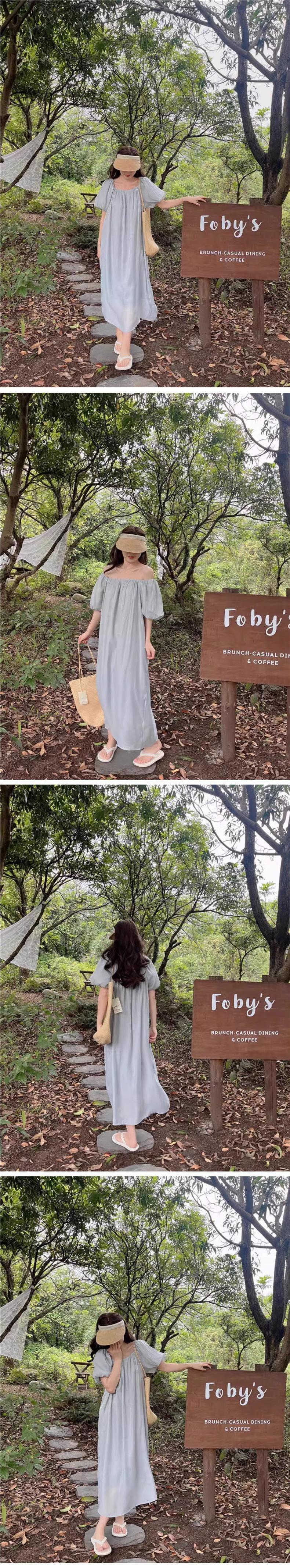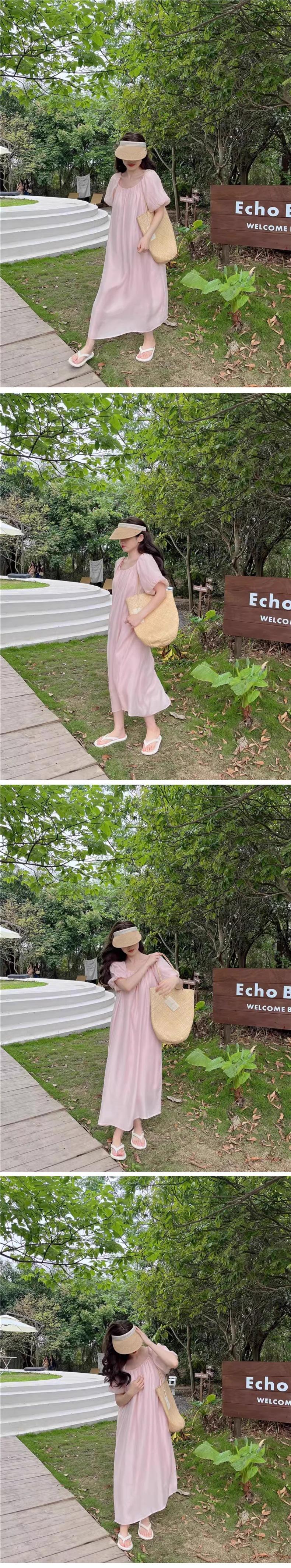 Ropa de primavera y verano dulce de alta gama, vestido francés tencel de color sólido, nuevo de verano, vestido de chifón suelto de manga abullonada para mujer