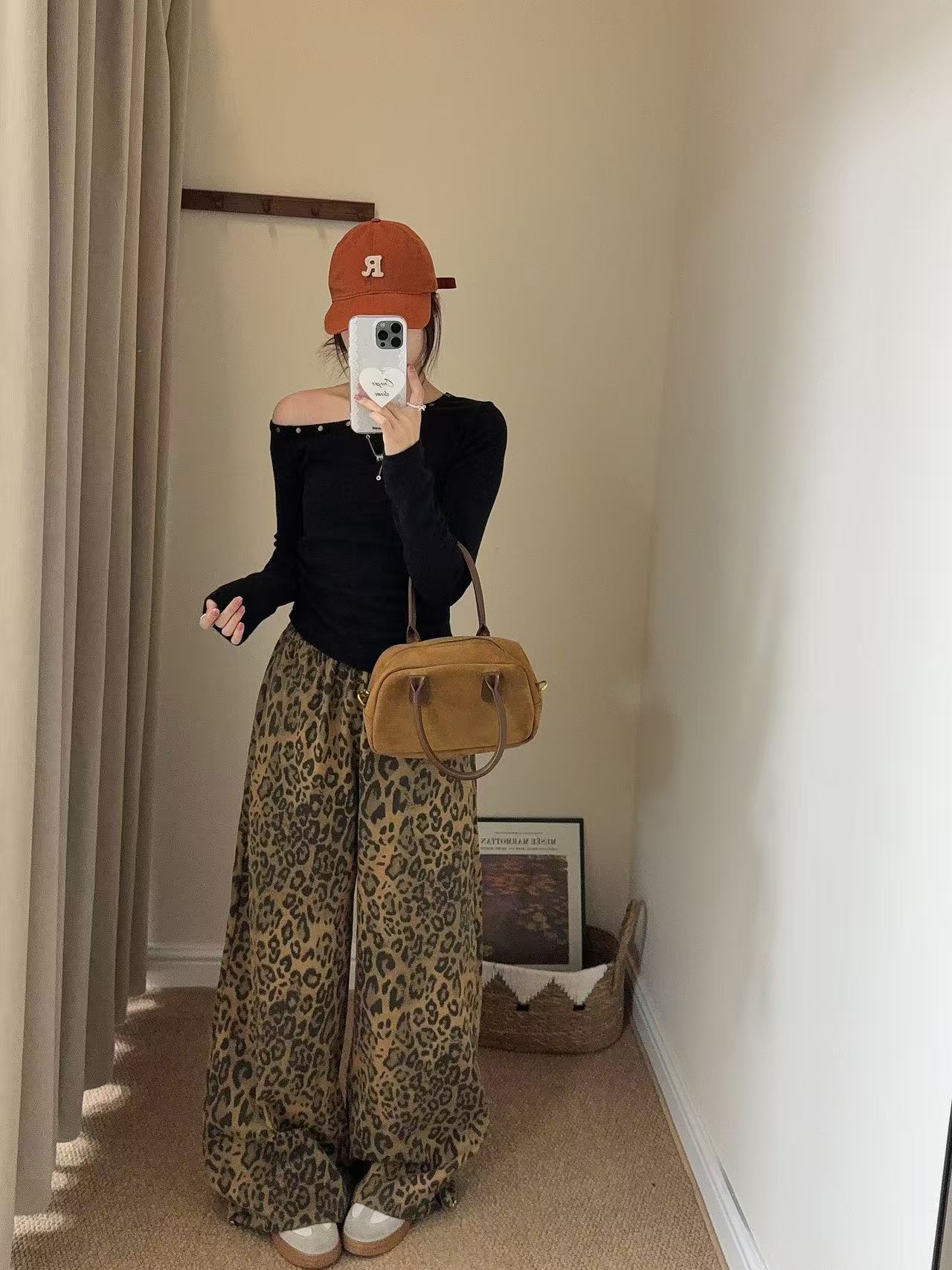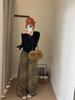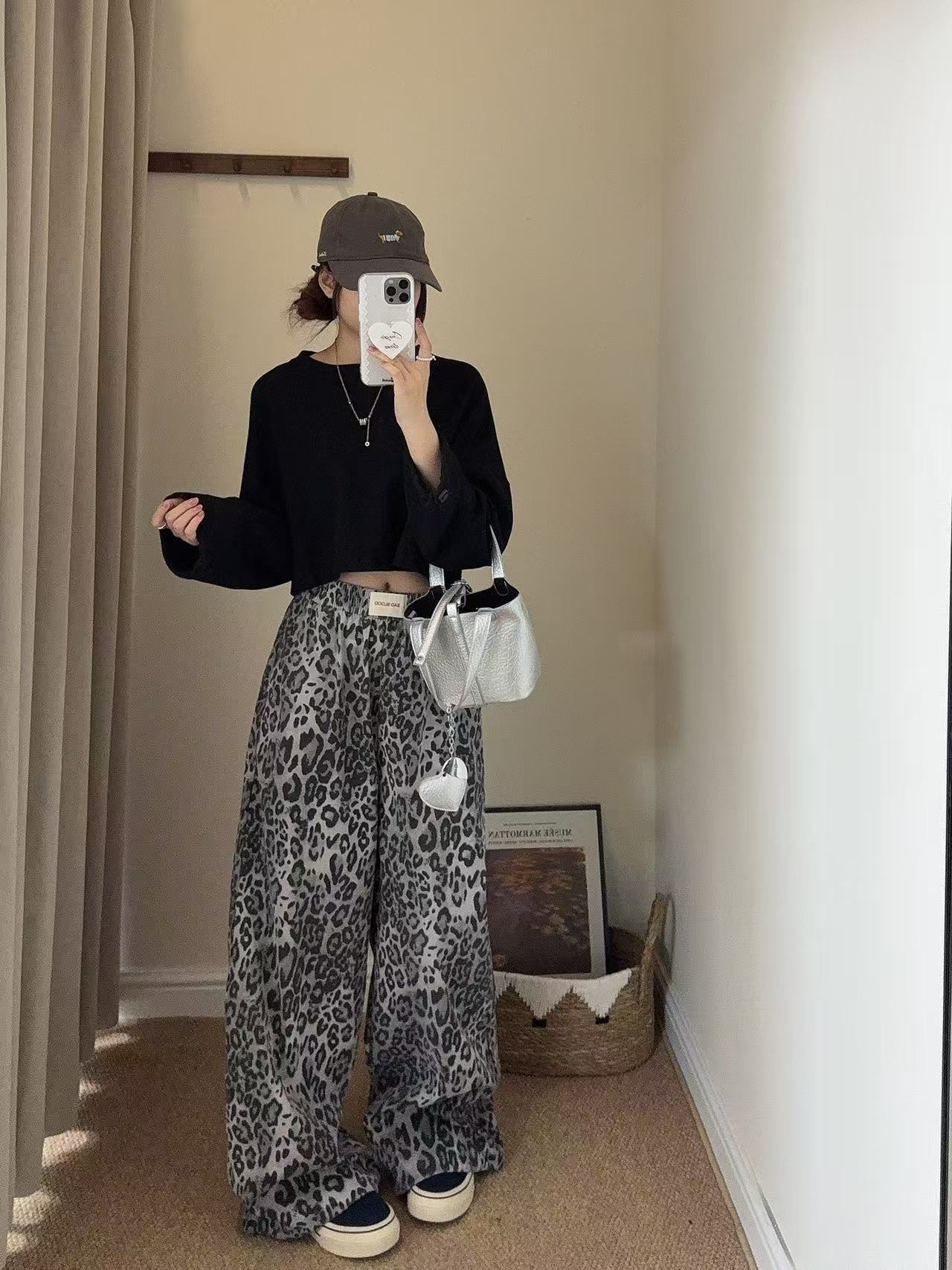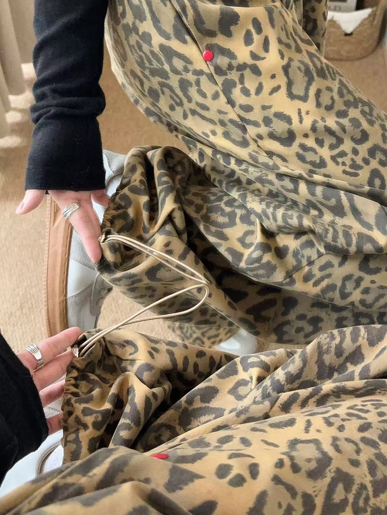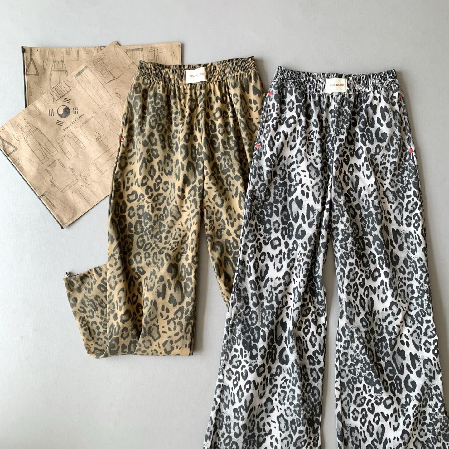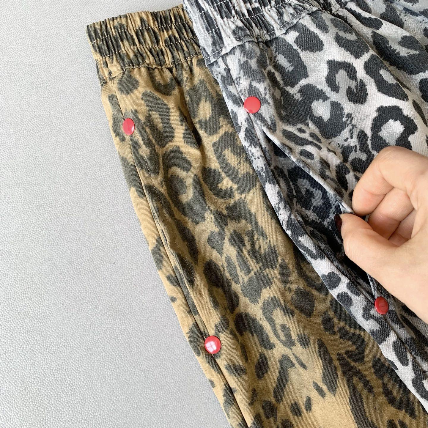 Pantalones de Pierna Ancha con Remaches Estampado Leopardo Americano Estilo Coreano Mujer Otoño Nuevo Cintura Alta Sueltos Adelgazantes Pierna Recta Versátiles Casuales Pantalones Largos