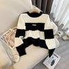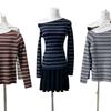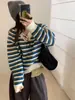 Nuevo Otoño Estilo Coreano Perezoso Diseño Simple de un Hombro Suéter de Punto Rayado Adelgazante Conjunto de Principios de Otoño Ropa de Mujer