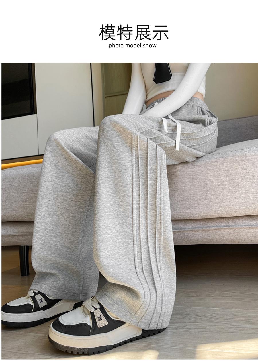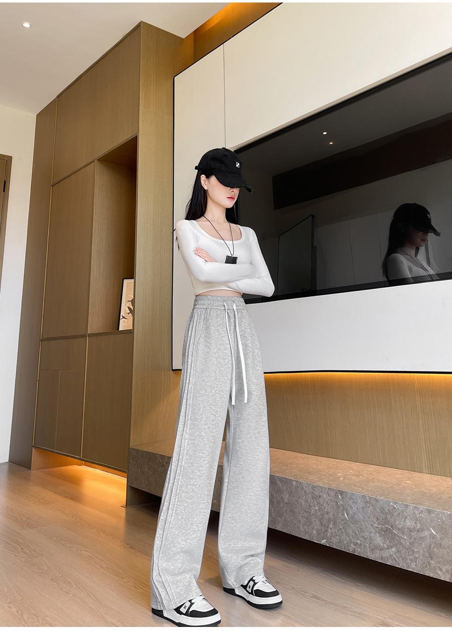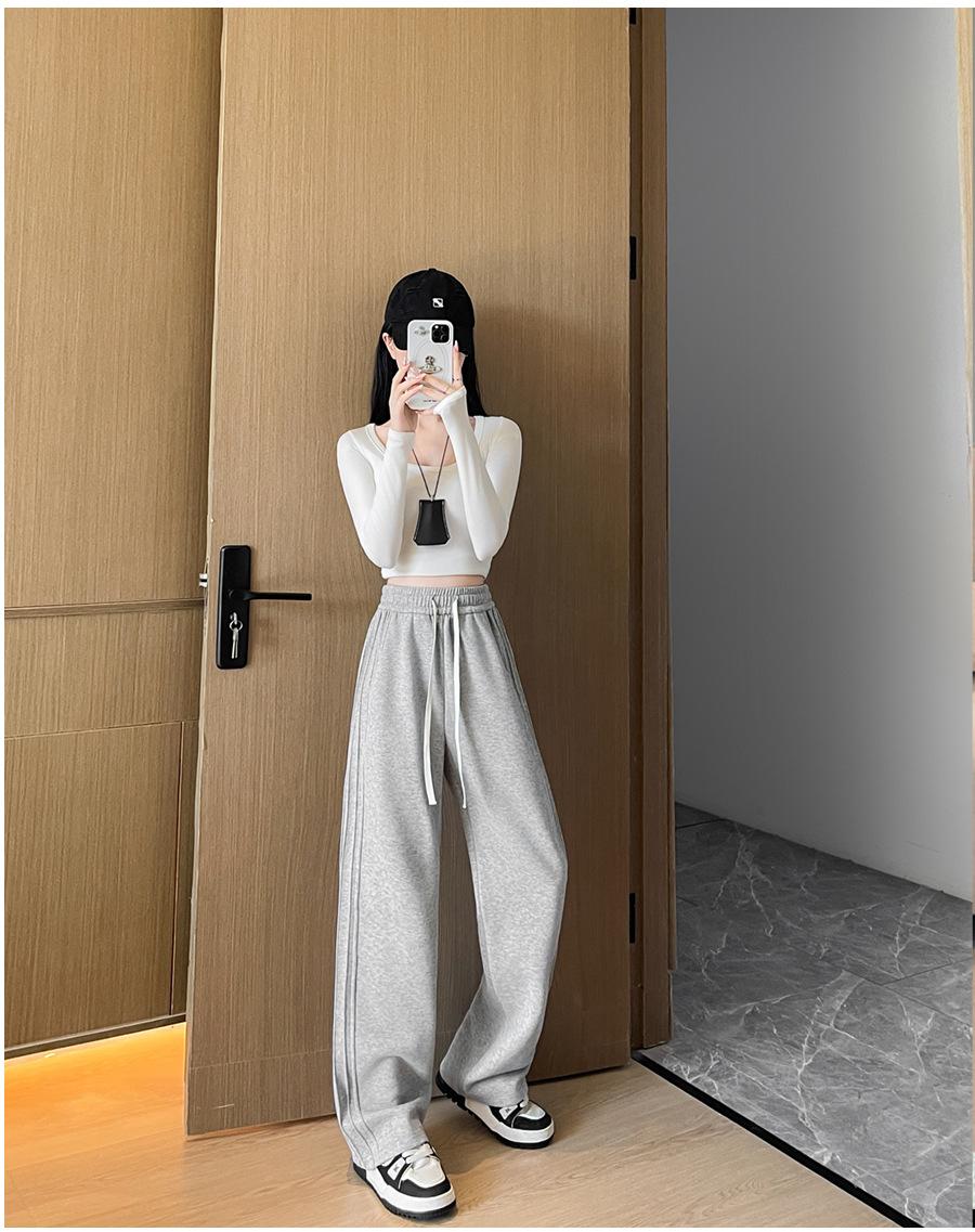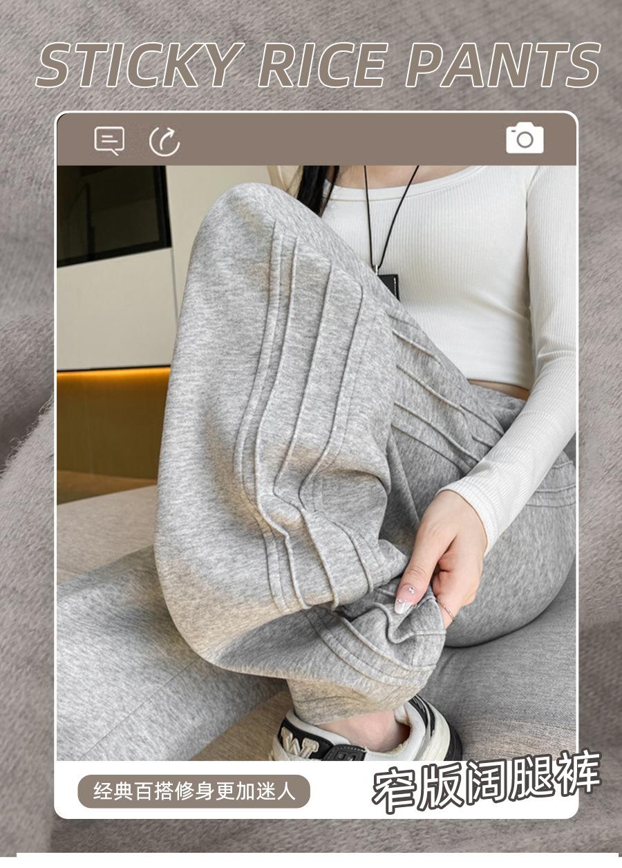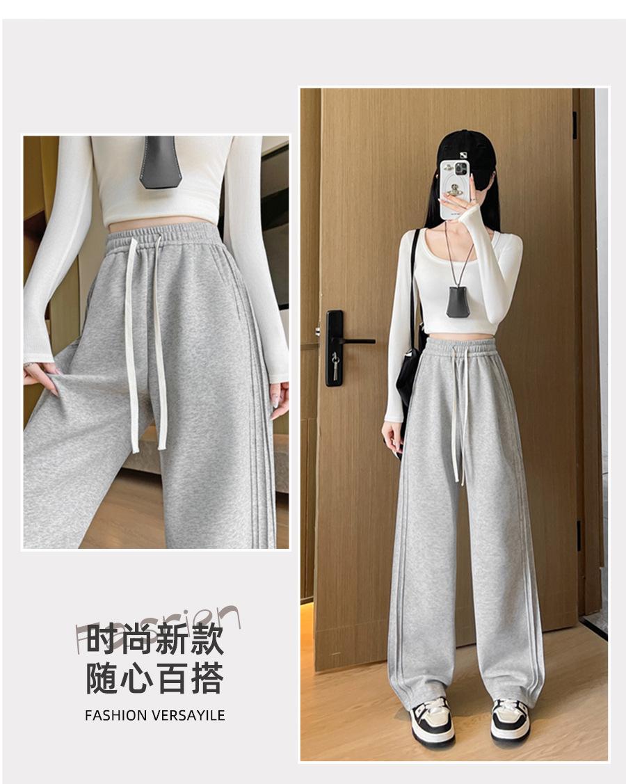 Pantalones deportivos grises de corte slim para mujer Primavera Otoño Nuevos Cintura alta Sueltos Versátiles Pierna ancha Pantalones de pierna recta Casuales