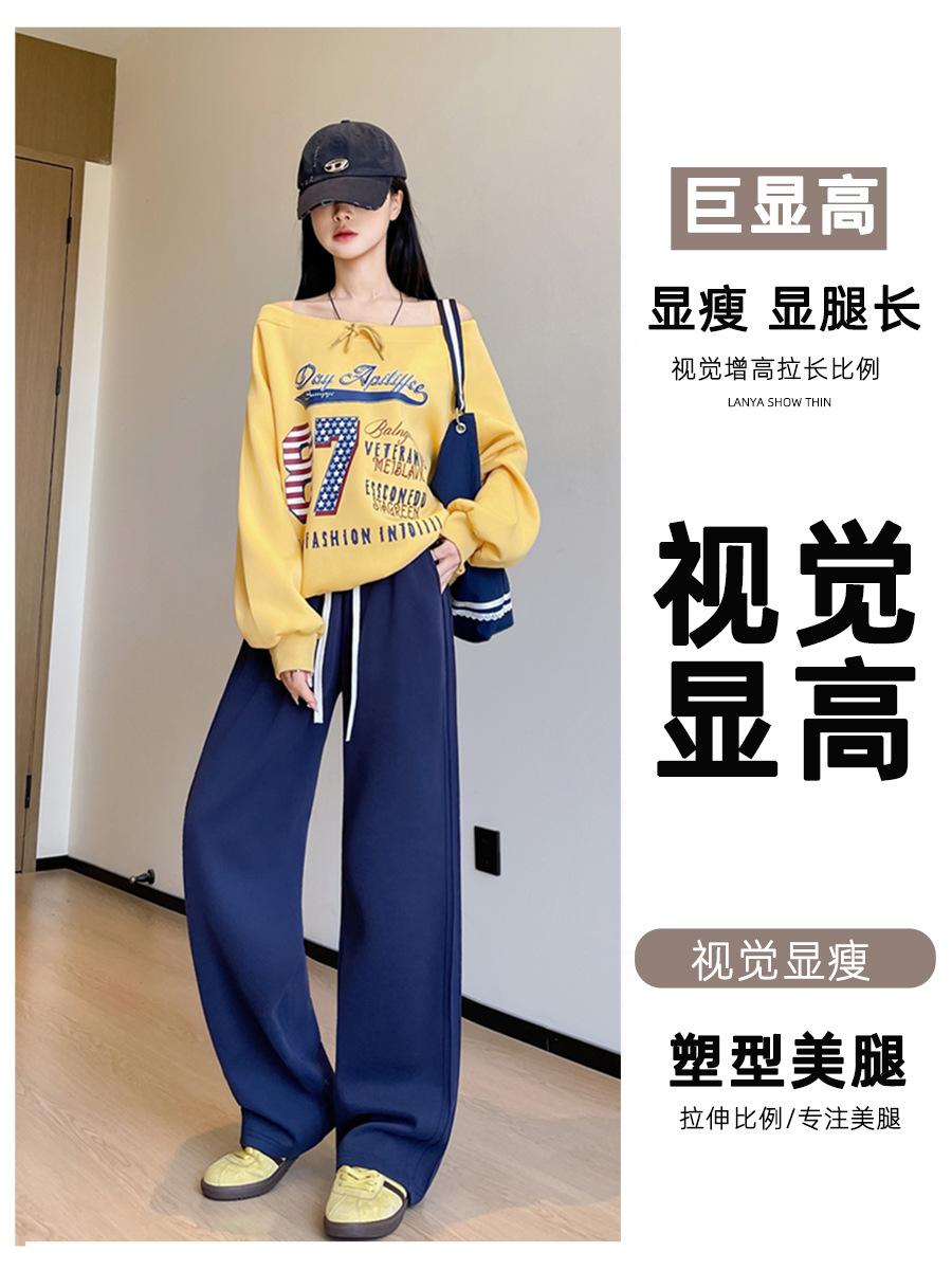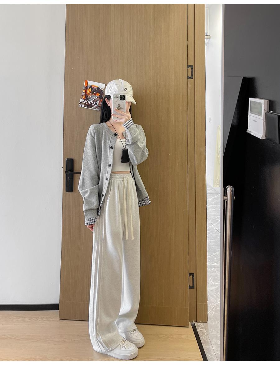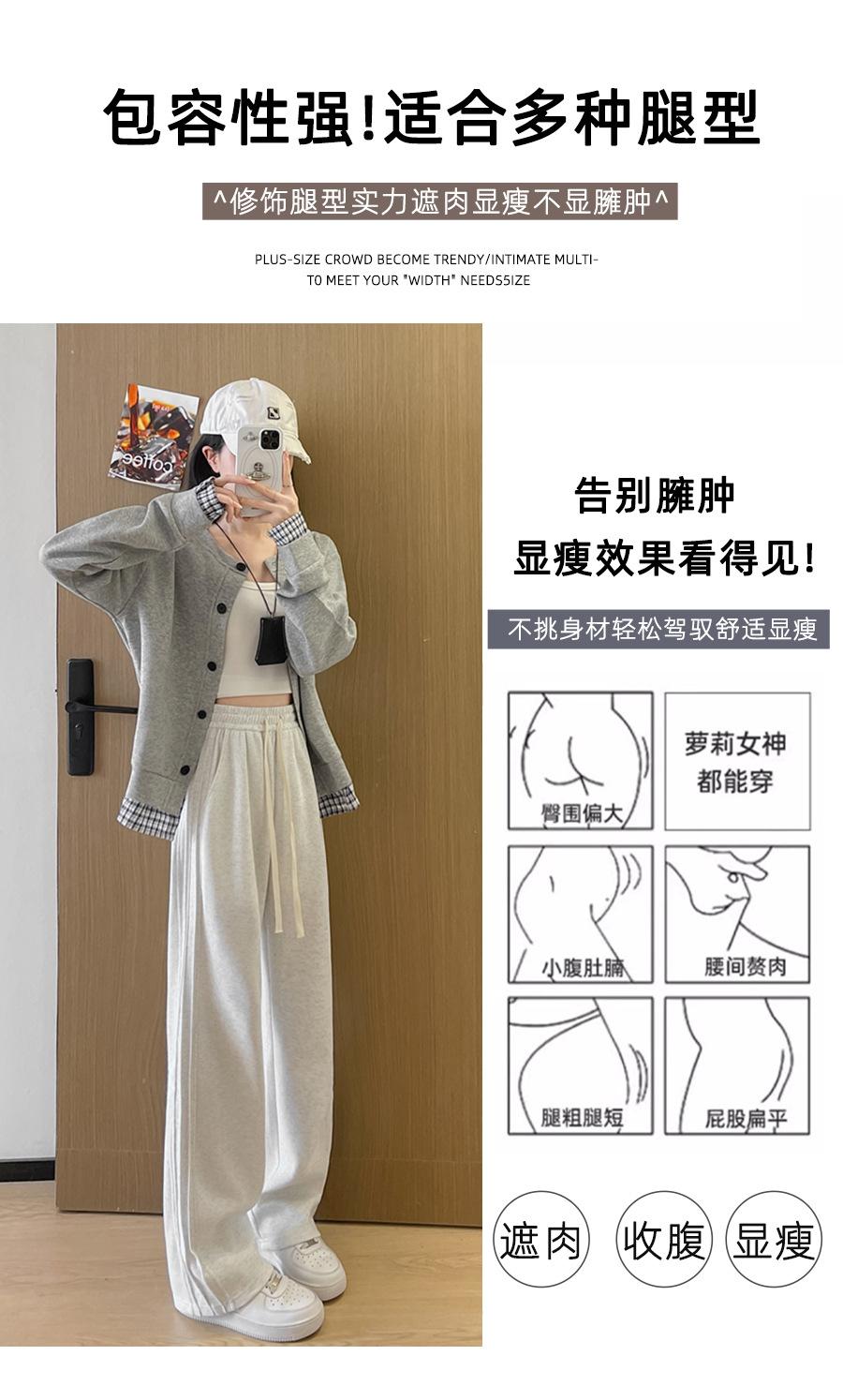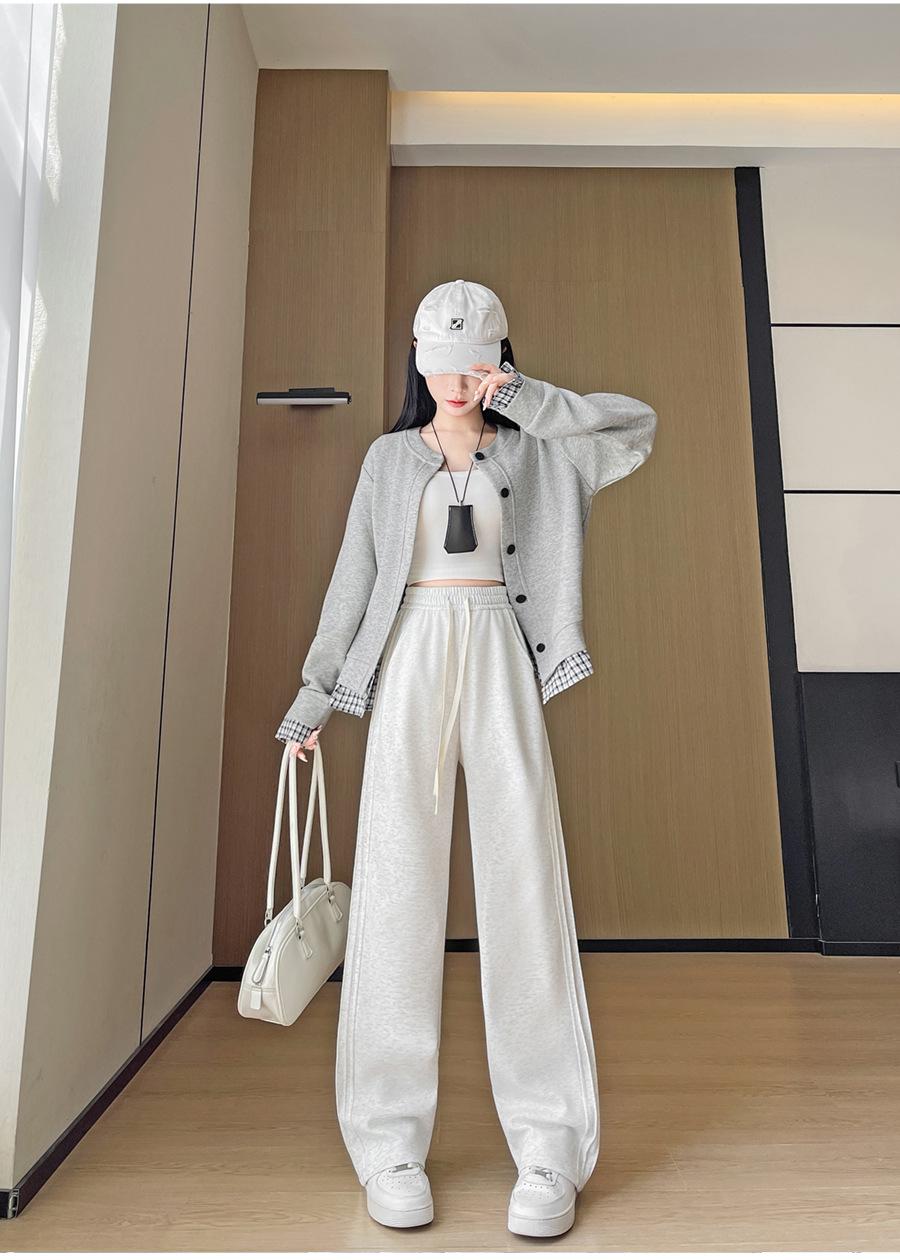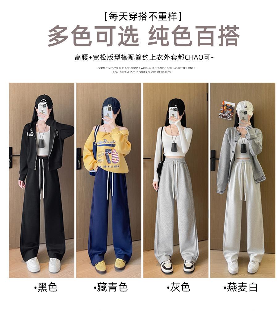 Pantalones deportivos grises de corte slim para mujer Primavera Otoño Nuevos Cintura alta Sueltos Versátiles Pierna ancha Pantalones de pierna recta Casuales