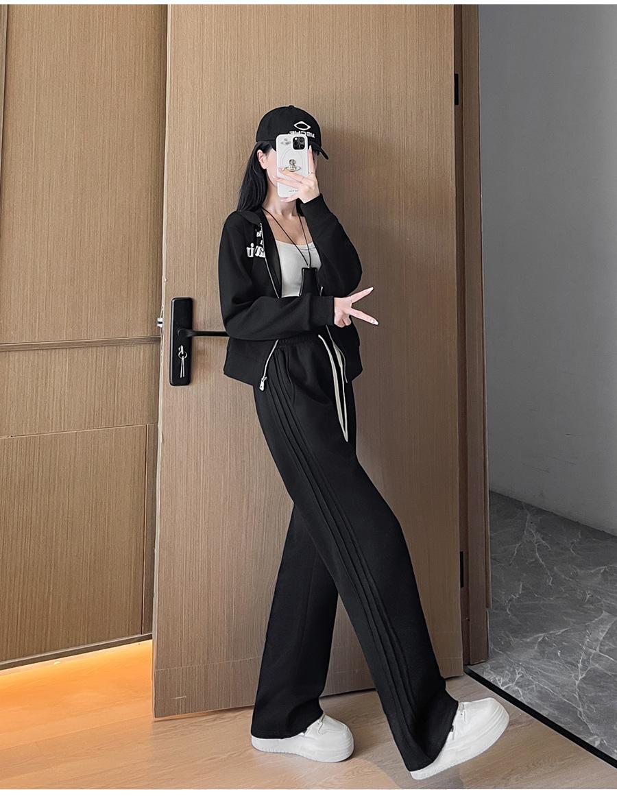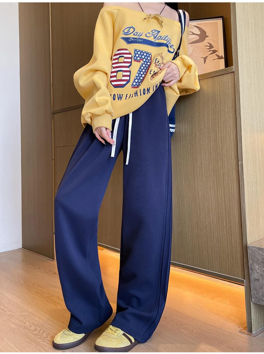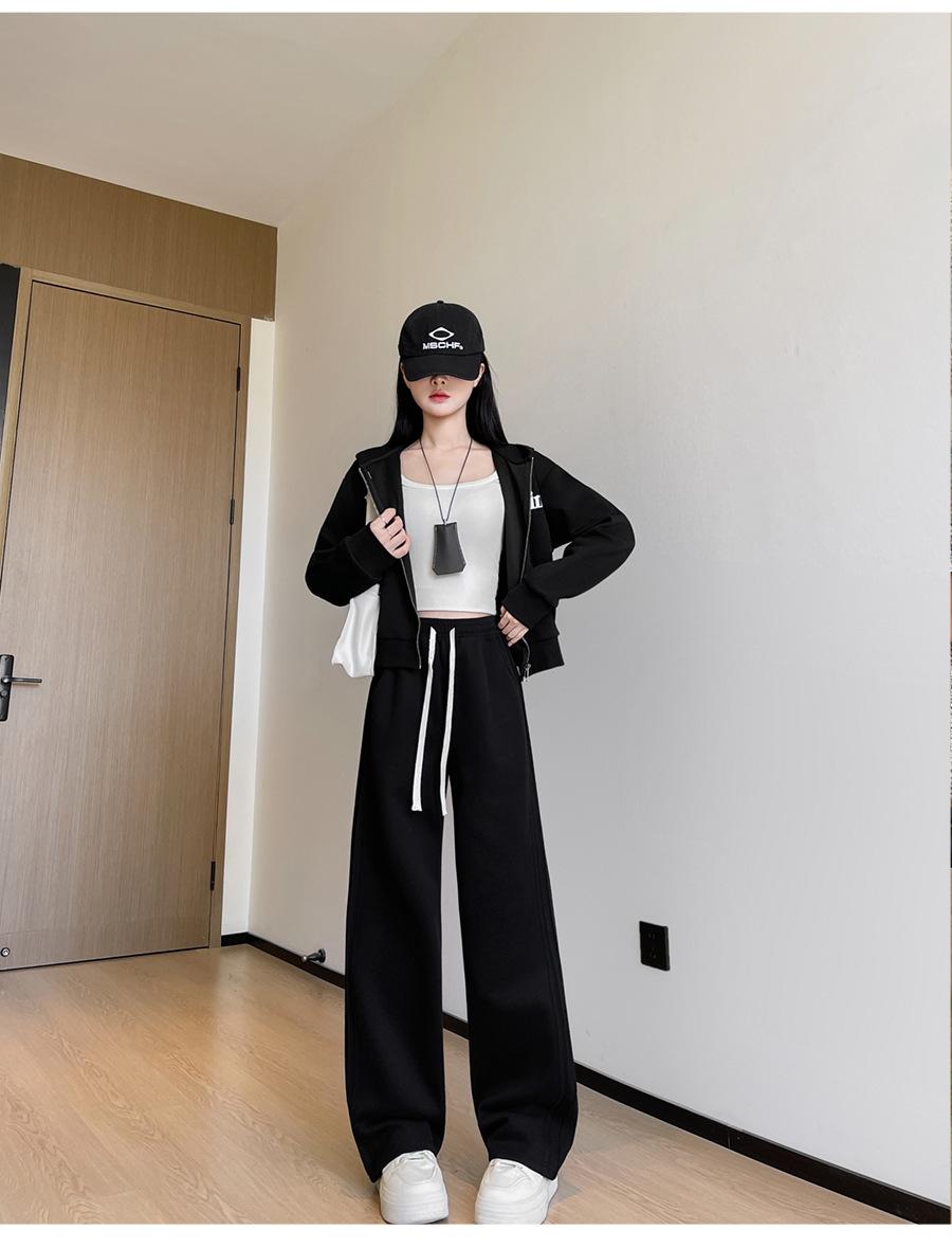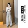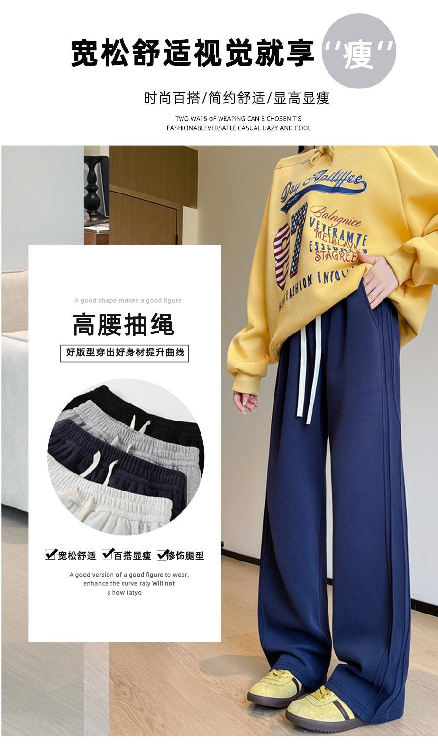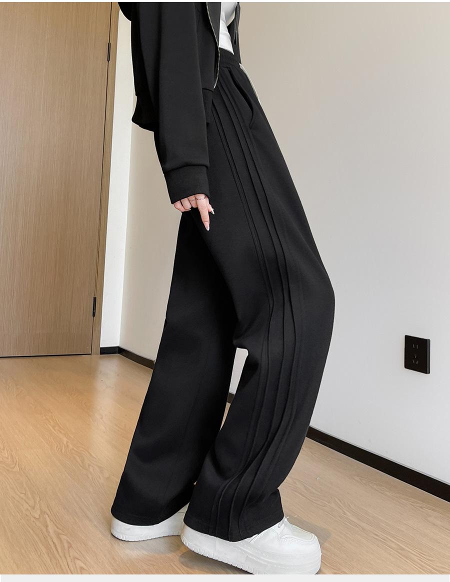 Pantalones deportivos grises de corte slim para mujer Primavera Otoño Nuevos Cintura alta Sueltos Versátiles Pierna ancha Pantalones de pierna recta Casuales